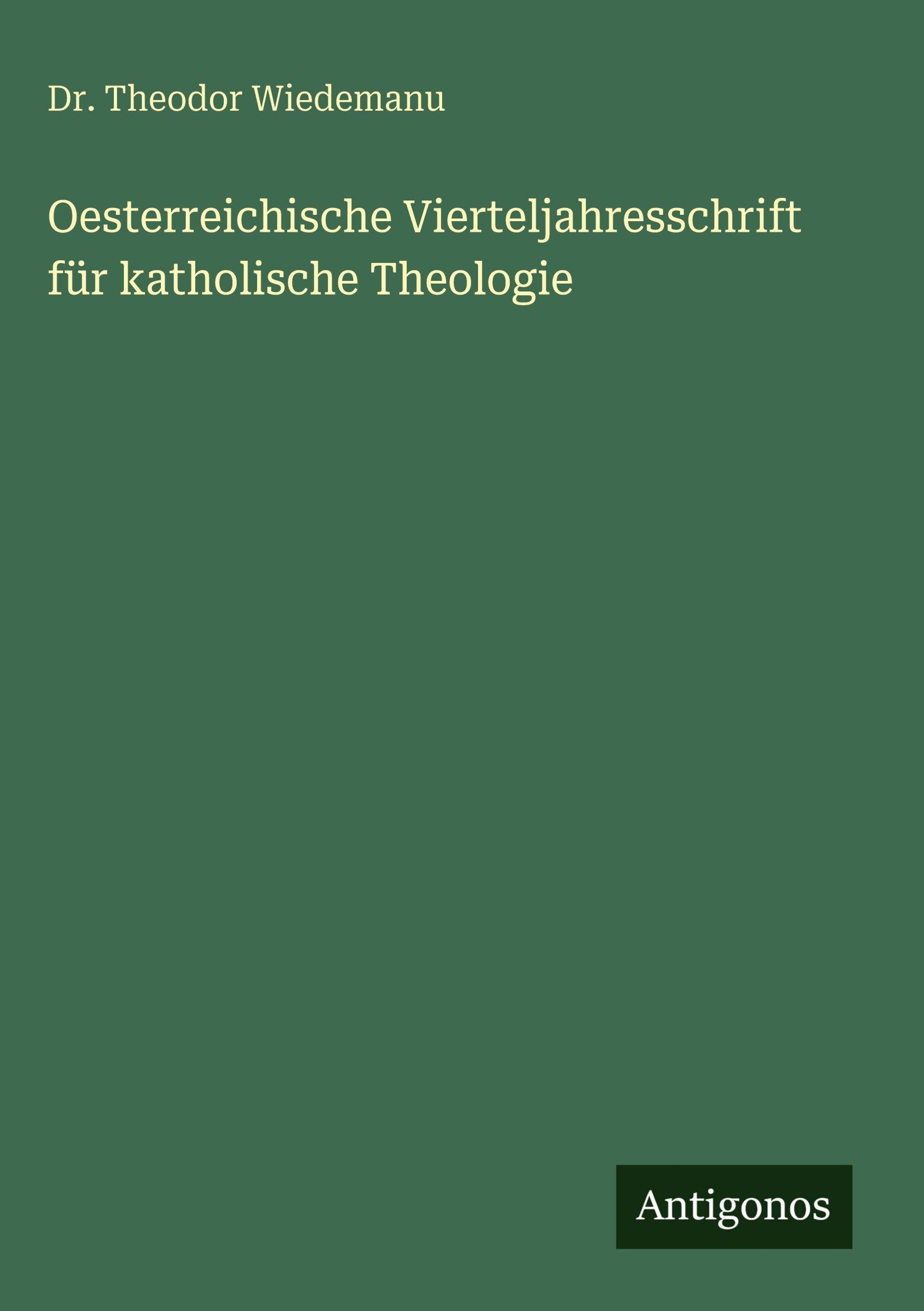 Theodor Wiedemanu: Oesterreichische Vierteljahresschrift für katholische Theologie, Gebunden