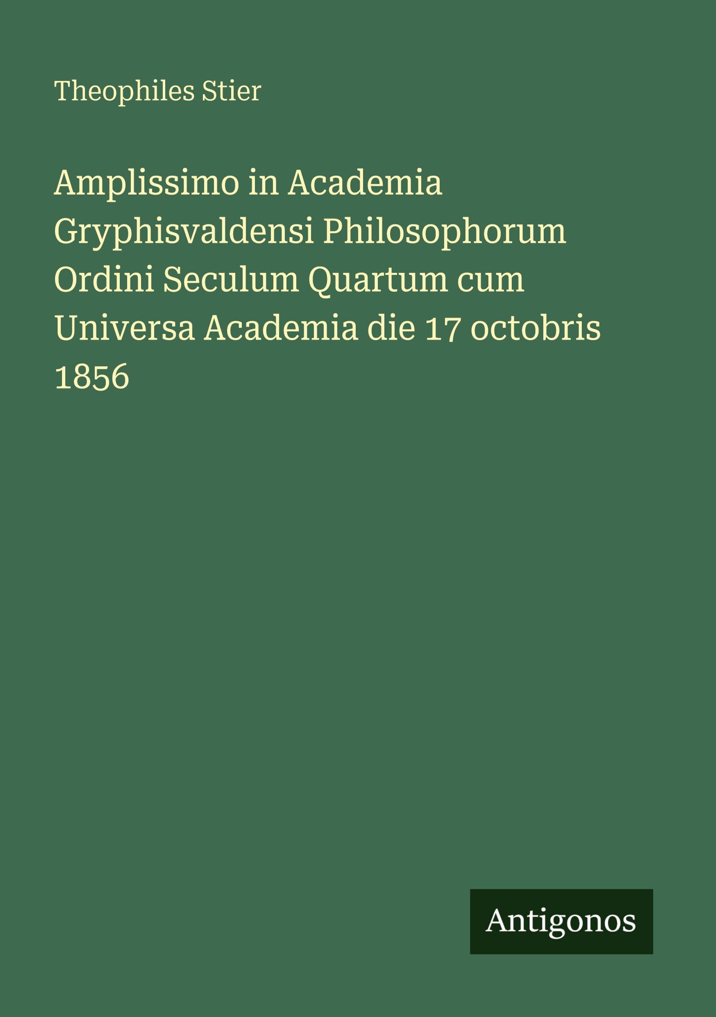 Theophiles Stier: Amplissimo in Academia Gryphisvaldensi Philosophorum Ordini Seculum Quartum cum Universa..., Kartoniert / Broschiert