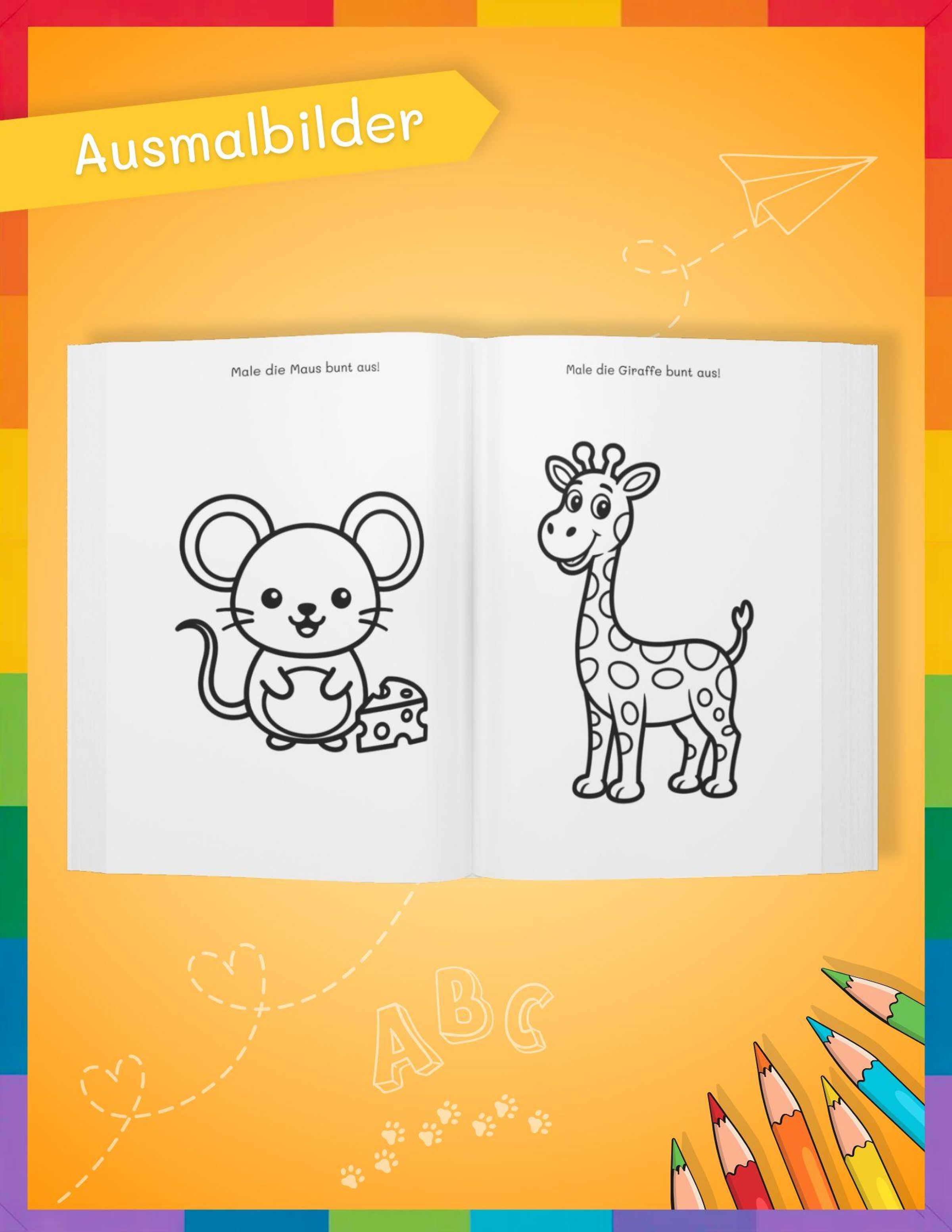 Dieses liebevoll gestaltete Malbuch ab 3 verbindet große Ausmalbilder, einfache Rätsel und erste Lernübungen zu einem abwechslungsreichen Erlebnis für kleine Entdecker.