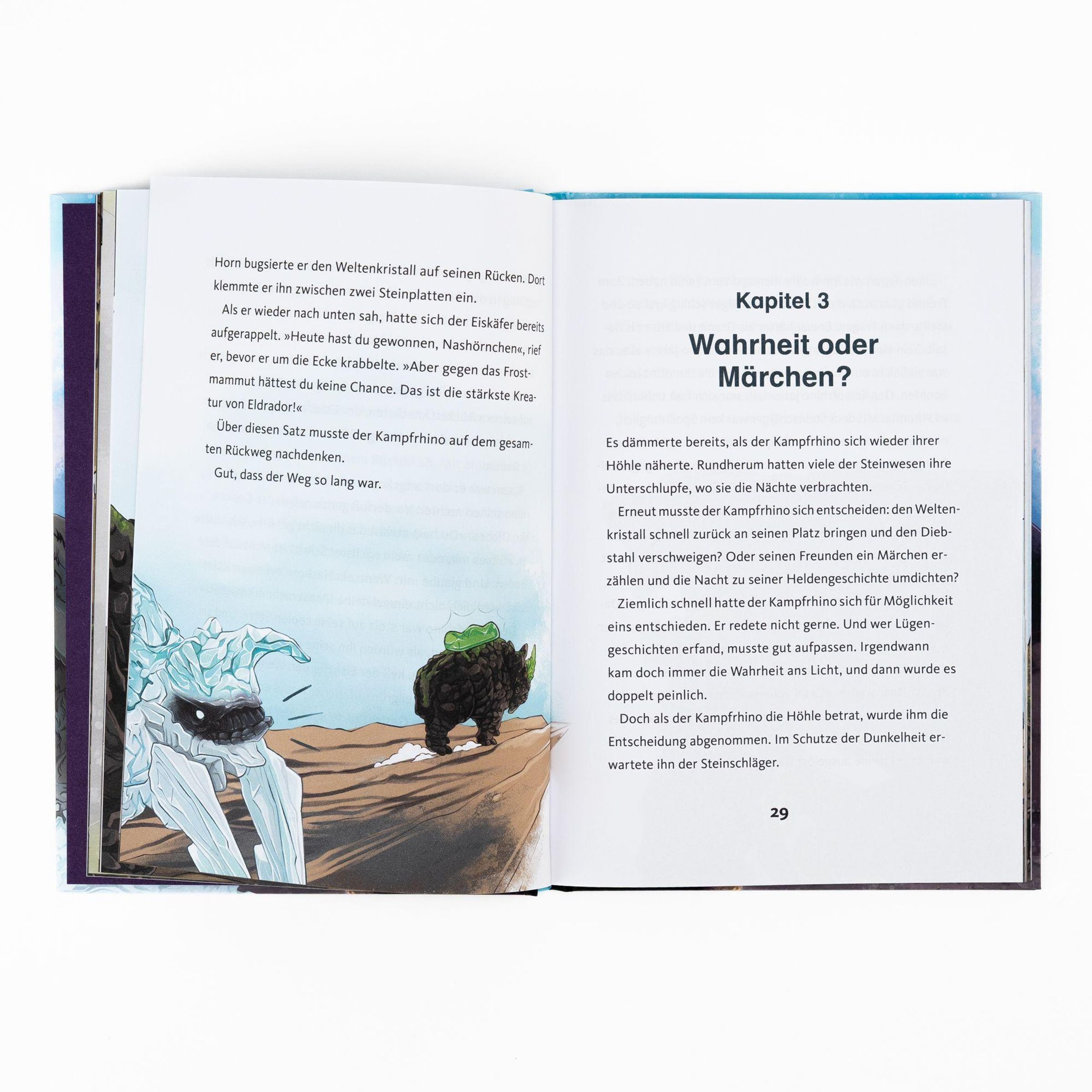 Der Weltenkristall, den der Kampfrhino bewachen sollte, ist verschwunden! Sofort heftet er sich an die Fersen der Diebe. Nach einem kräftezehrenden Kampf gelingt es ihm, den Kristall zurückzuerobern. Doch die Worte des flüchtenden Diebs lassen ihn nicht los: Das Frostmammut sei die stärkste Kreatur! Also schmieden die Steinkreaturen einen Plan. Sie errichten eine BattleCave und fordern das Frostmammut zum Kampf heraus. Schnell wird daraus ein epischer Wettstreit zwischen allen Welten von Eldrador ...