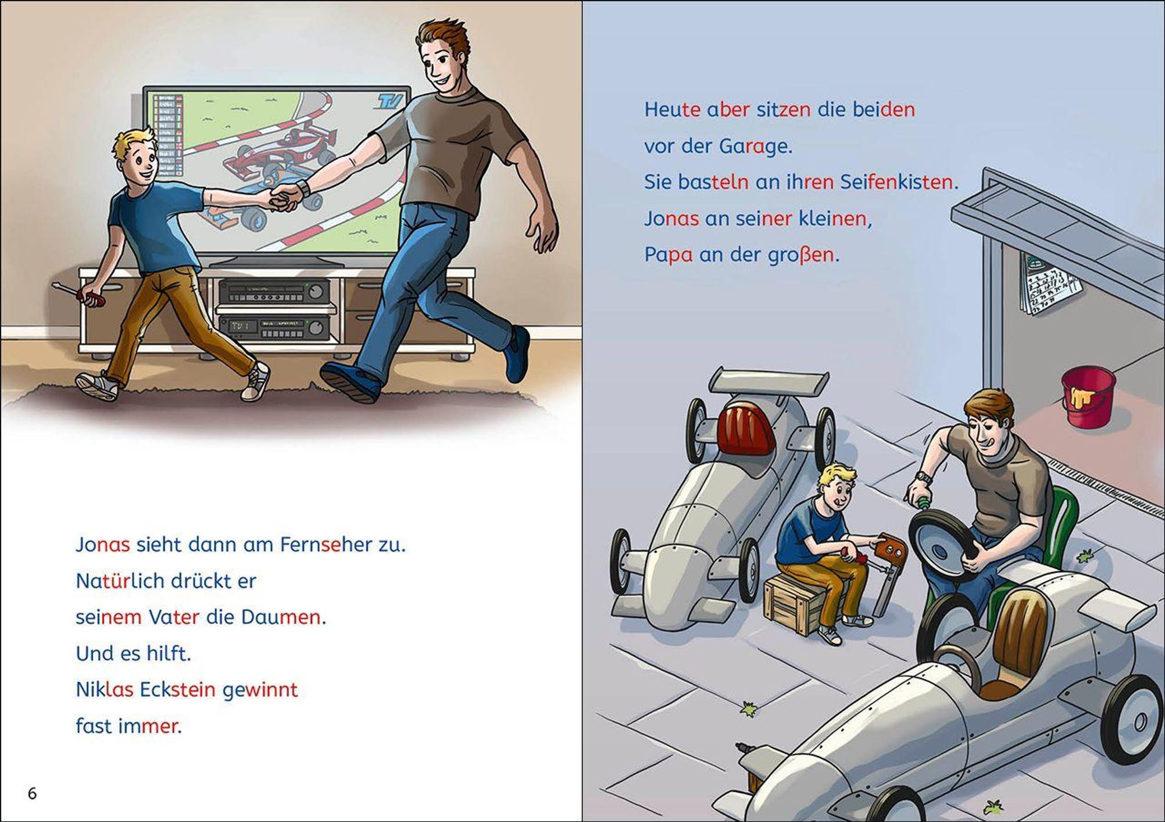 Jonas' Vater ist ein echter Rennfahrer und kennt alle Tricks. Doch beim Seifenkistenrennen will Jonas ihn auf jeden Fall schlagen. Für die Weltmeisterschaft drückt er seinem Papa aber ganz fest die Daumen!