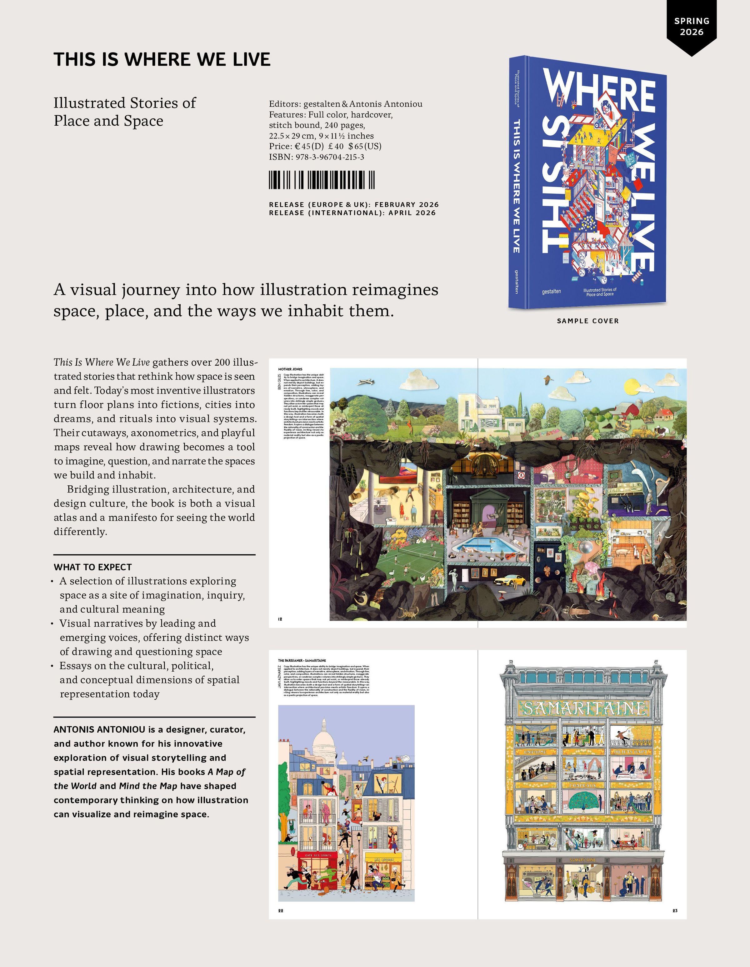This Is Where We Live zeigt in über 200 Illustrationen, wie Zeichnung unser Verständnis von Raum erweitern kann. Künstler: innen entwerfen Fantasiestädte, verwandeln Grundrisse in Geschichten oder fangen den Alltag in Bildern ein. Detailverliebt oder verspielt, poetisch oder analytisch - die Arbeiten machen sichtbar, wie wir Orte erleben und uns vorstellen. So entsteht ein Buch an der Schnittstelle von Illustration, Architektur und Designkultur, das gleichermaßen inspiriert und überrascht.