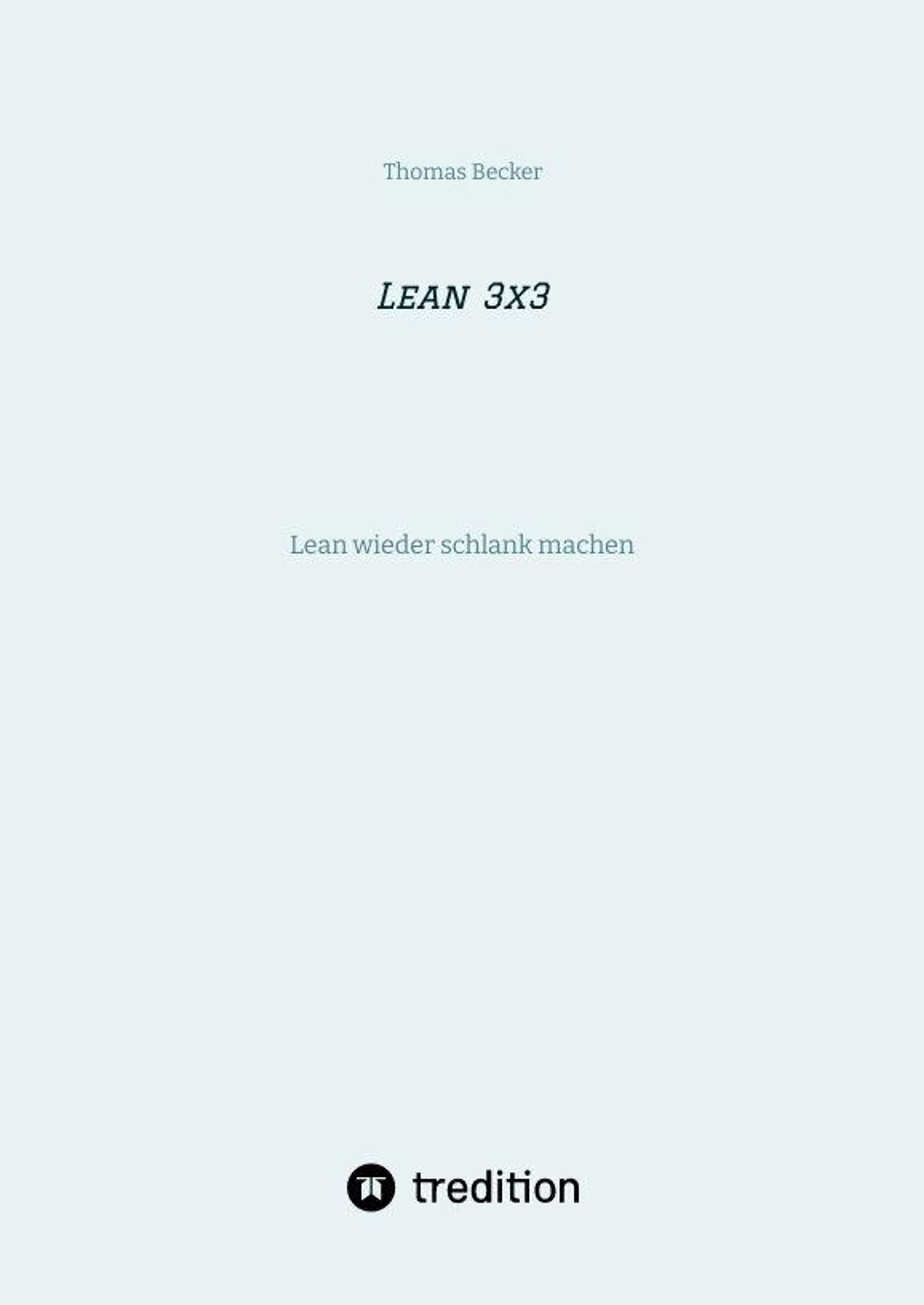 Thomas Becker, LEAN 3X3, Untertitel: Lean wieder schlank machen. Unten Logo und "tredition". Hellblauer Hintergrund., Buch