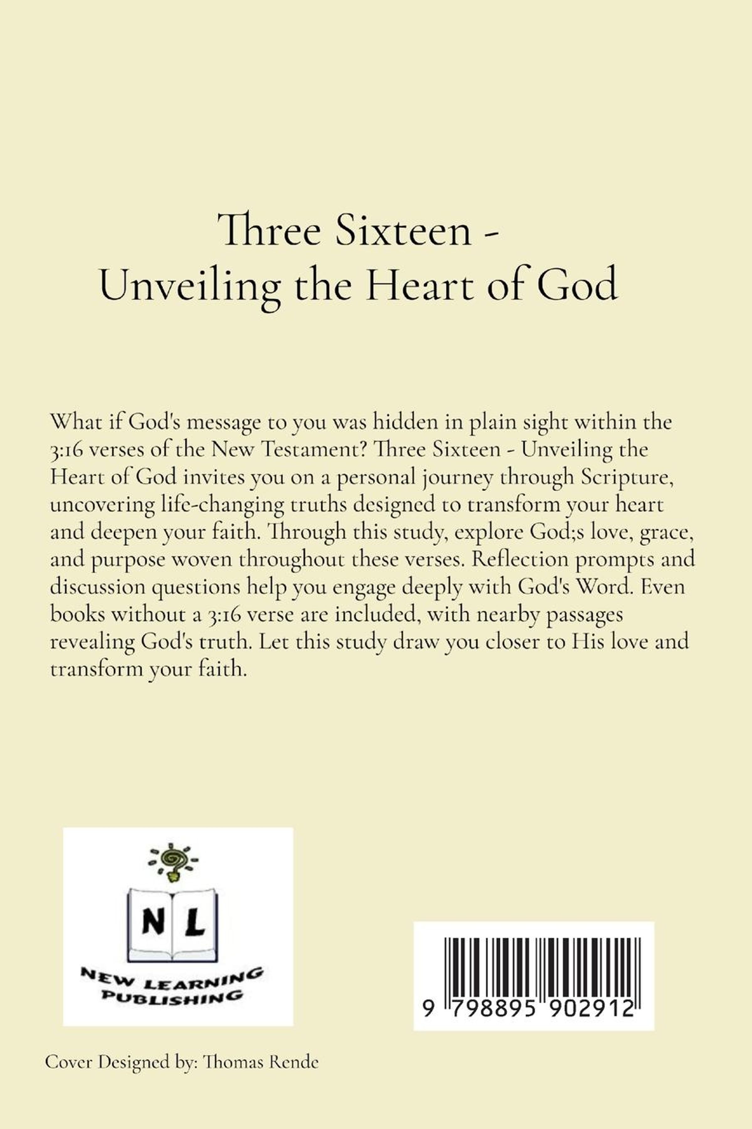 The main theme of this Bible study book, "Three Sixteen - Unveiling the Heart of God," draws readers into a deep exploration of the powerful truths woven throughout each 3: 16 verse in the New Testament. Through these core verses, the study reveals profound insights about God's character, Jesus' redemptive mission, and the call to discipleship that shaped the lives of early believers. Each chapter focuses on a unique aspect of the gospel-from the compassion and humility of Jesus in Matthew 3: 16 to the transforming power of God's love in John 3: 16, the responsibility to persevere in faith seen in Hebrews 3: 16, and the urgency to confront false teachings in Jude 3: 16.
