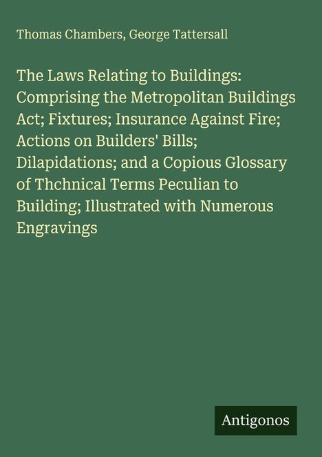 Thomas Chambers: The Laws Relating to Buildings: Comprising the Metropolitan Buildings Act; Fixtures; Insurance..., Gebunden