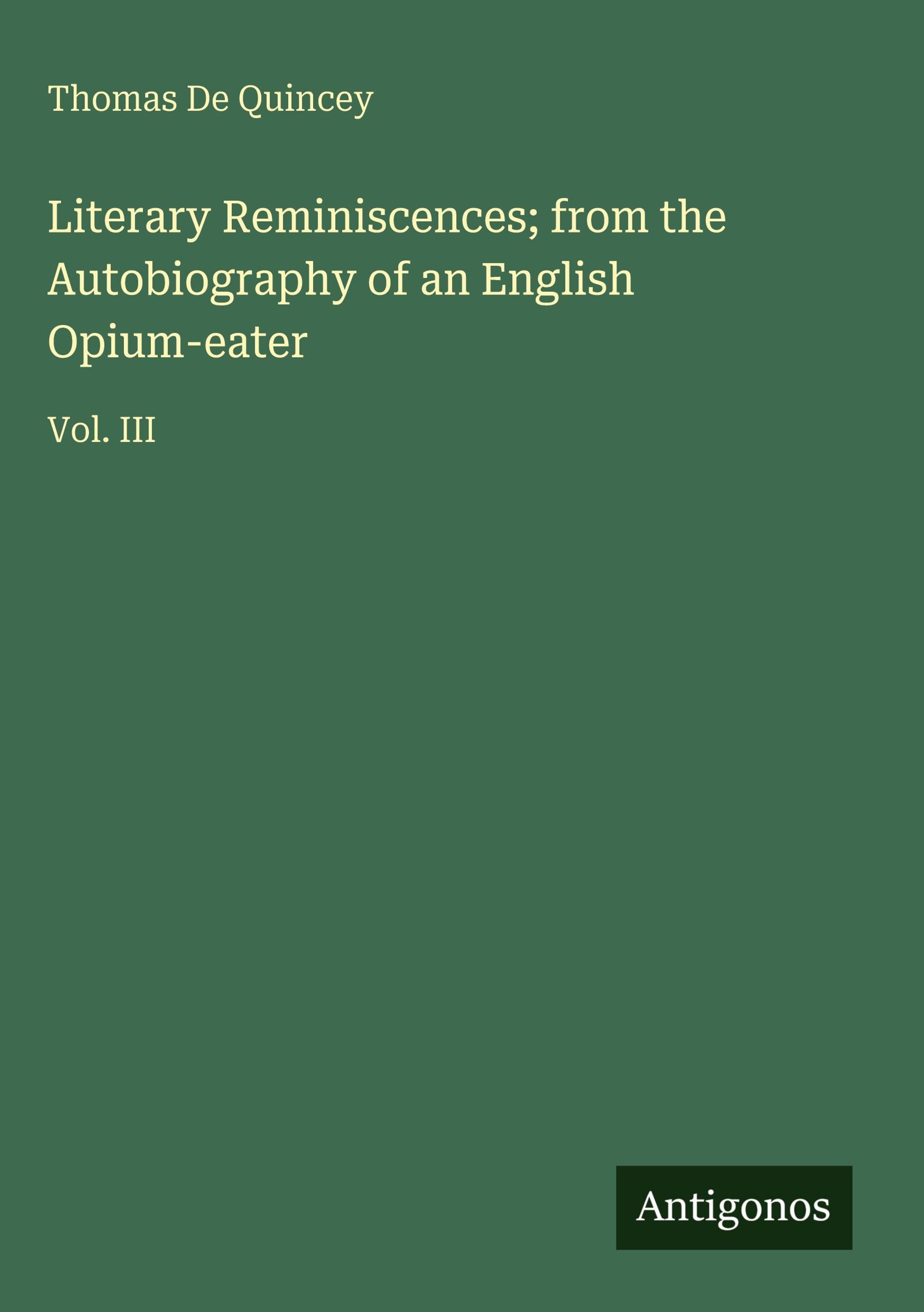 Der Artikel Thomas De Quincey: Literary Reminiscences; from the Autobiography of an English Opium-eater wurde in den Warenkorb gelegt.