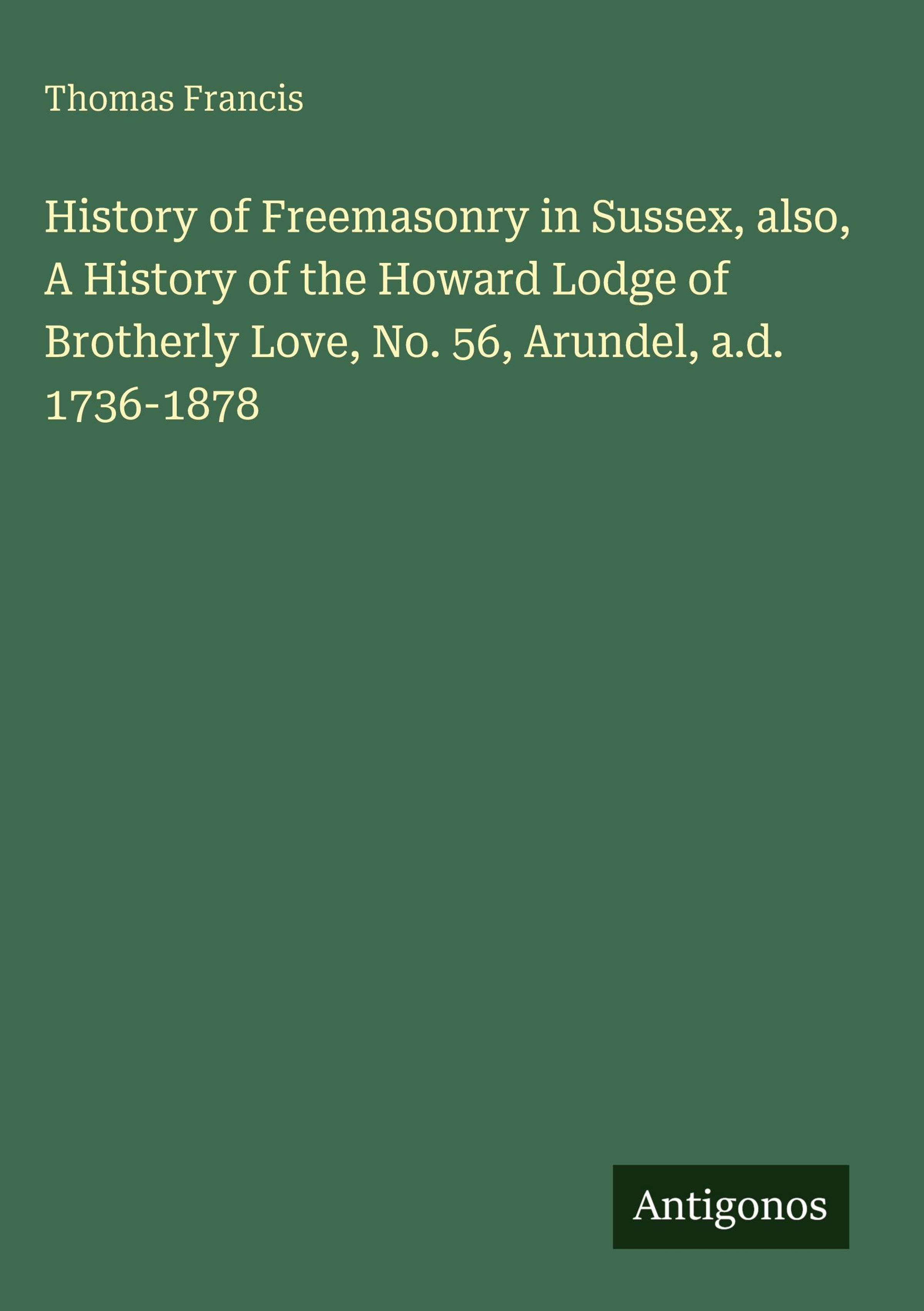 History of Freemasonry in Sussex, also, A History of the Howard Lodge of Brotherly Love, No. 56, Arundel, a.d. 1736-1878