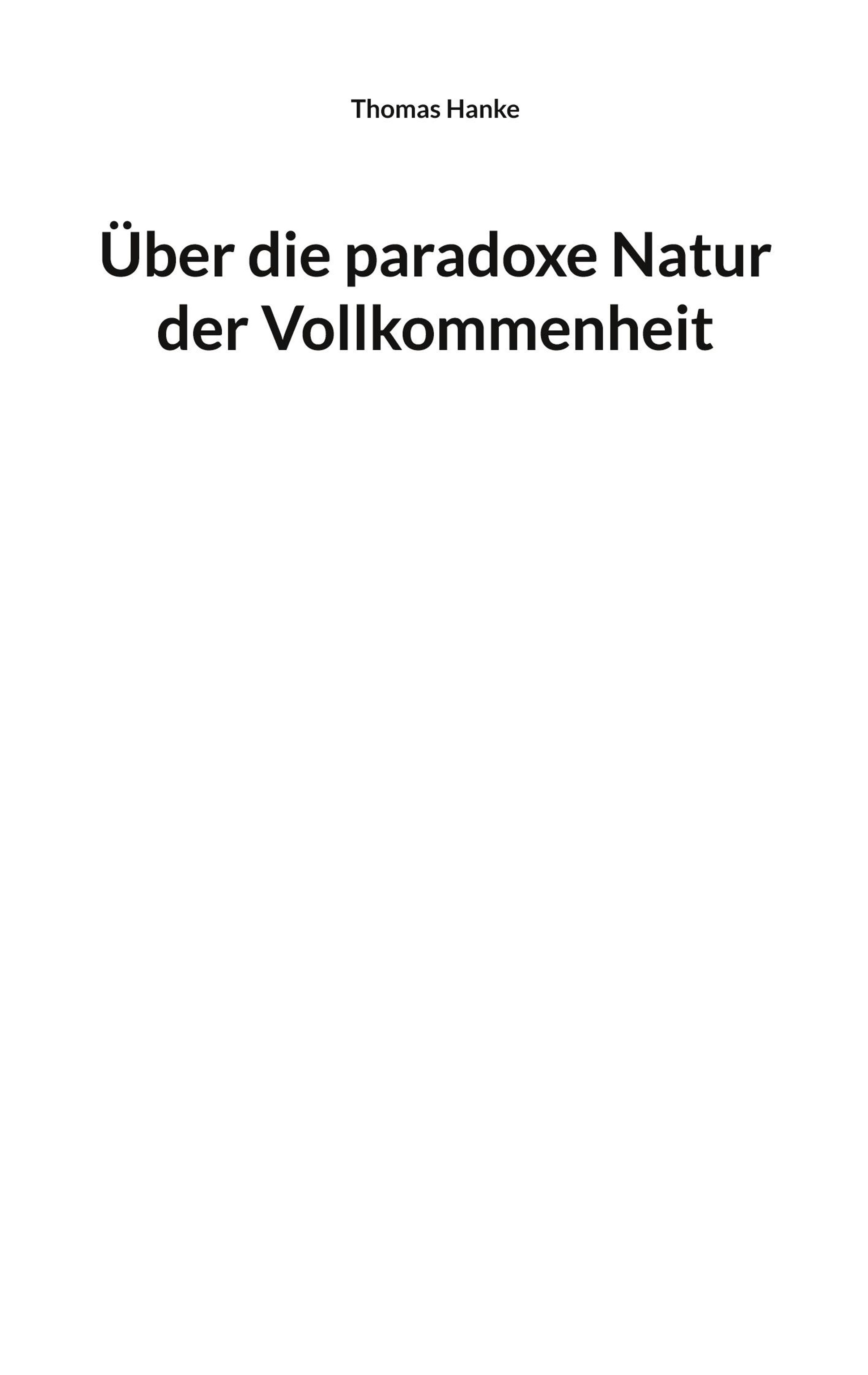 Thomas Hanke: Über die paradoxe Natur der Vollkommenheit, Kartoniert / Broschiert
