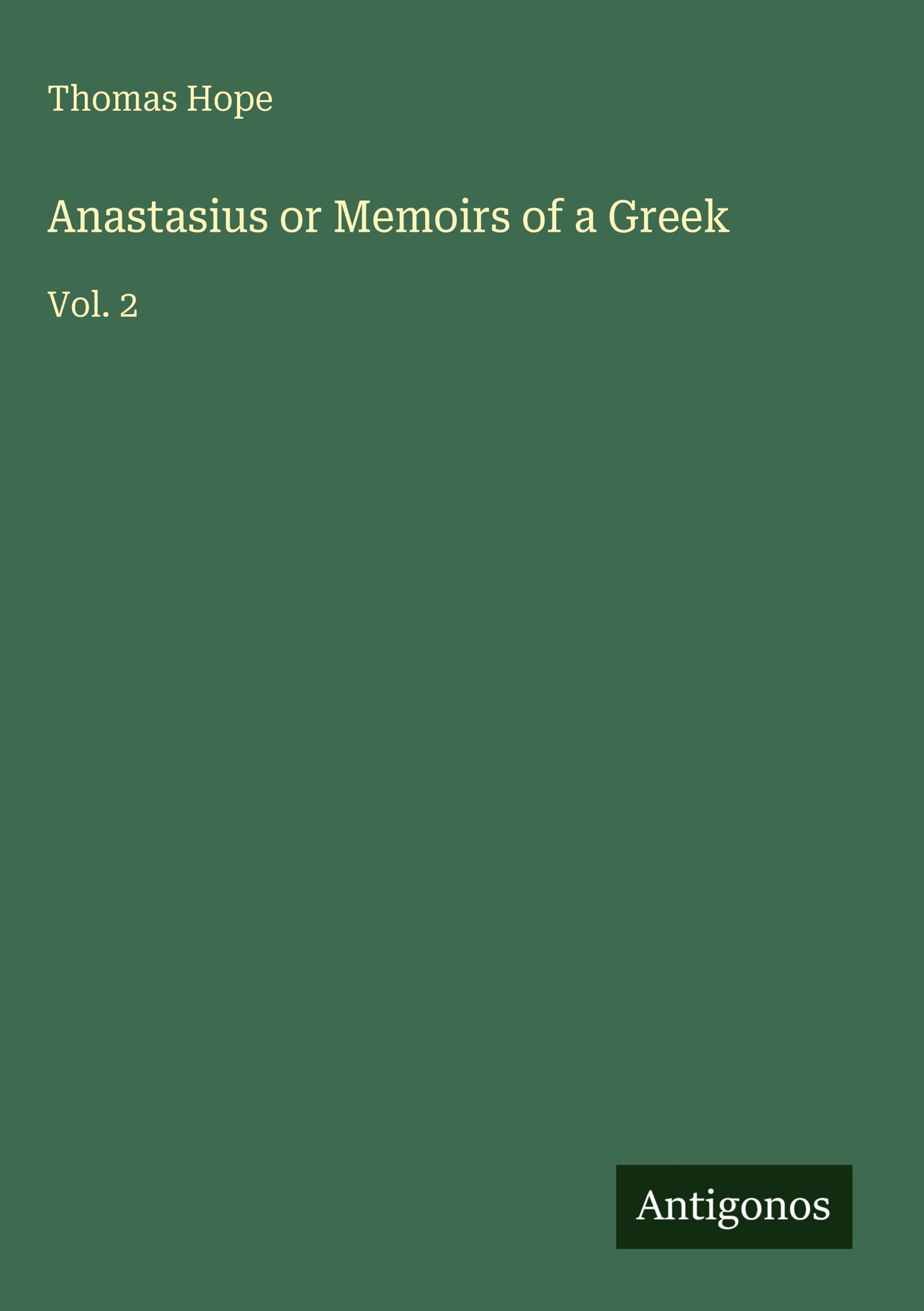 Anastasius or Memoirs of a Greek