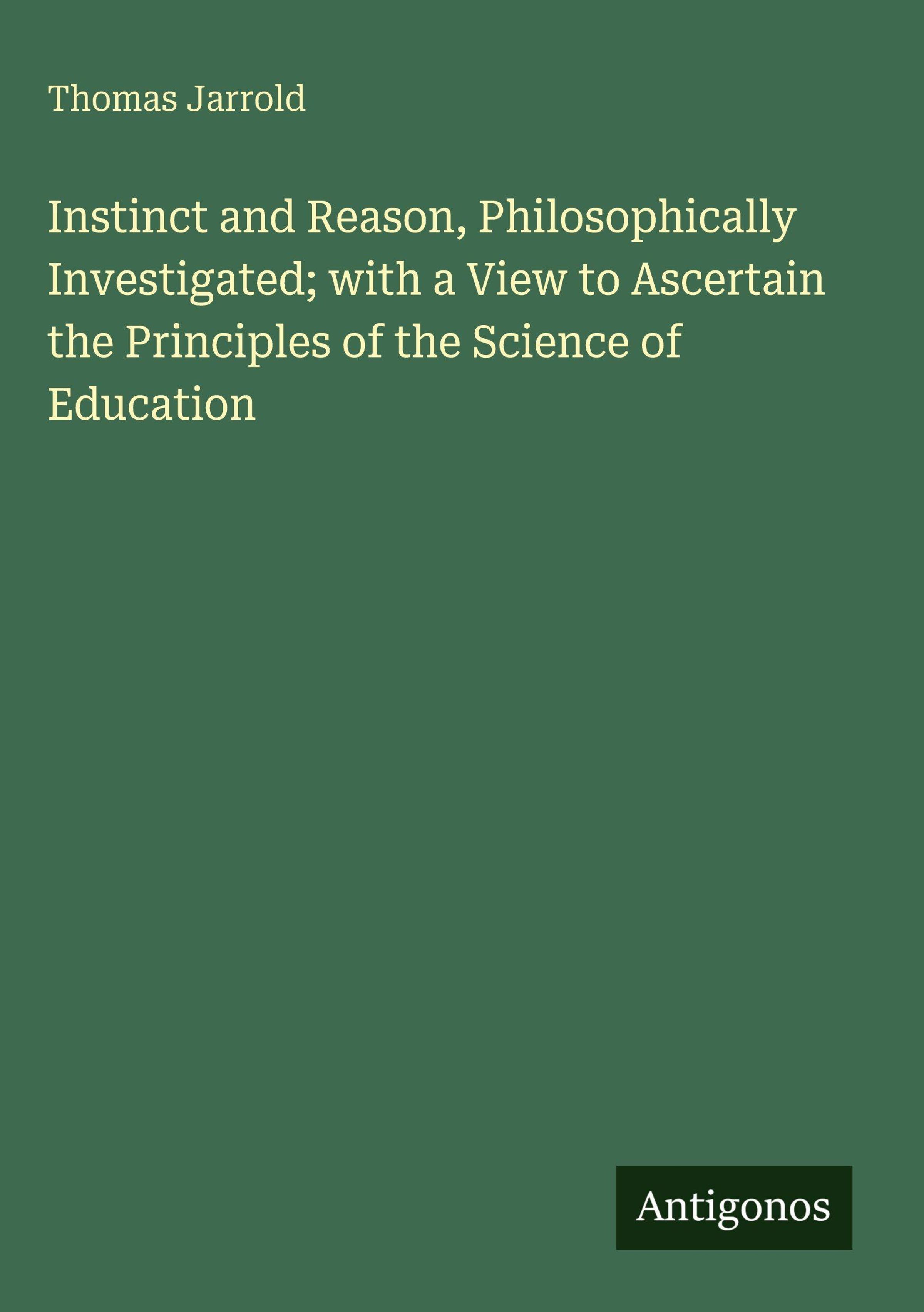 Instinct and Reason, Philosophically Investigated; with a View to Ascertain the Principles of the Science of Education