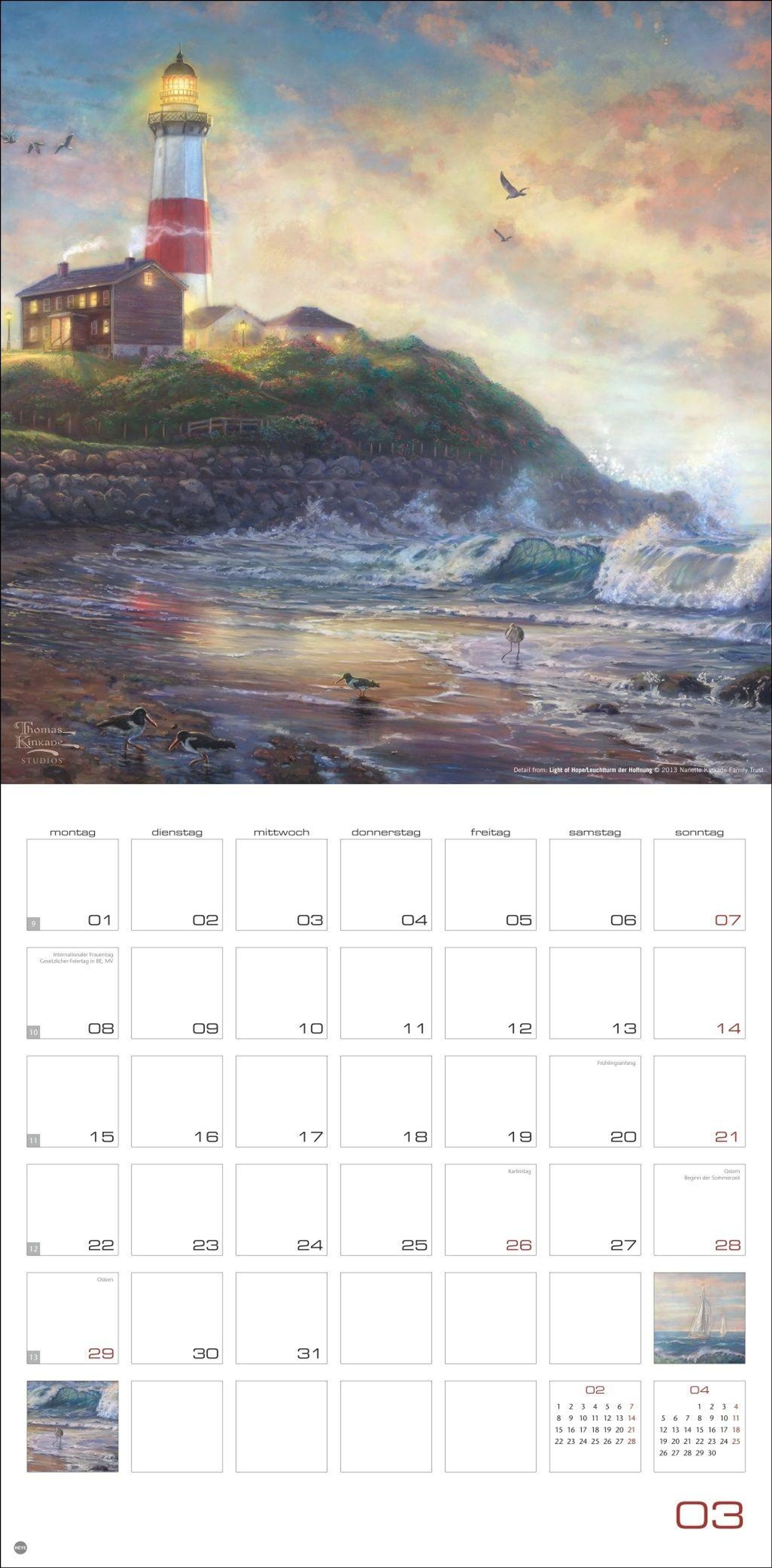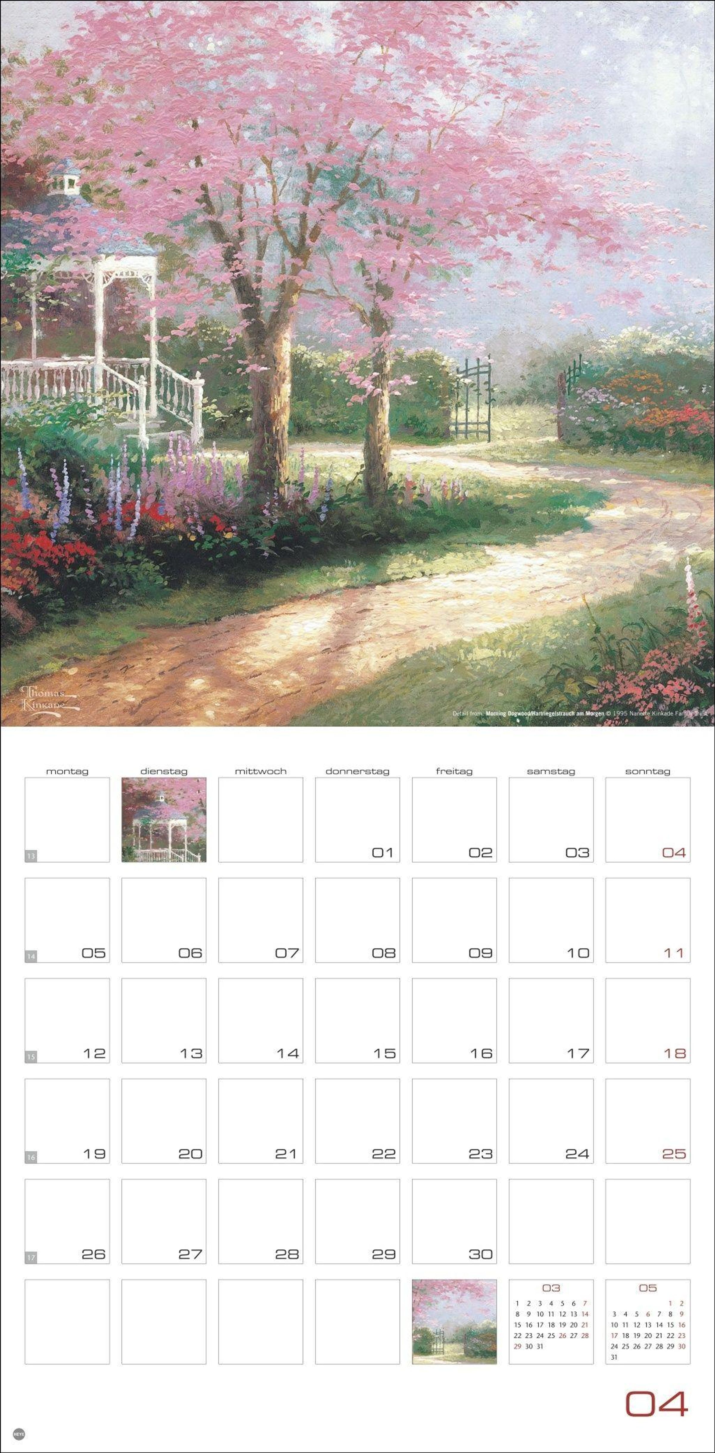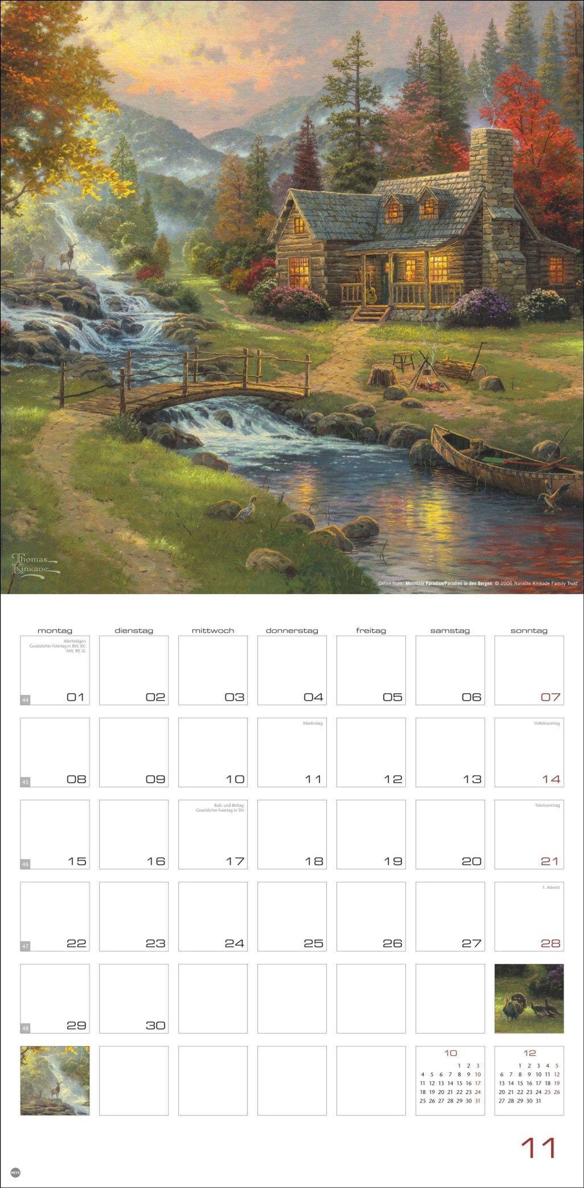 - Kunstvoller Wandkalender mit idyllischen Gemälden. Einzigartiger Kunstkalender mit Bildern von Thomas Kinkade . 29,5 x 30 cm, ausgeklappt 29,5 x 60 cm