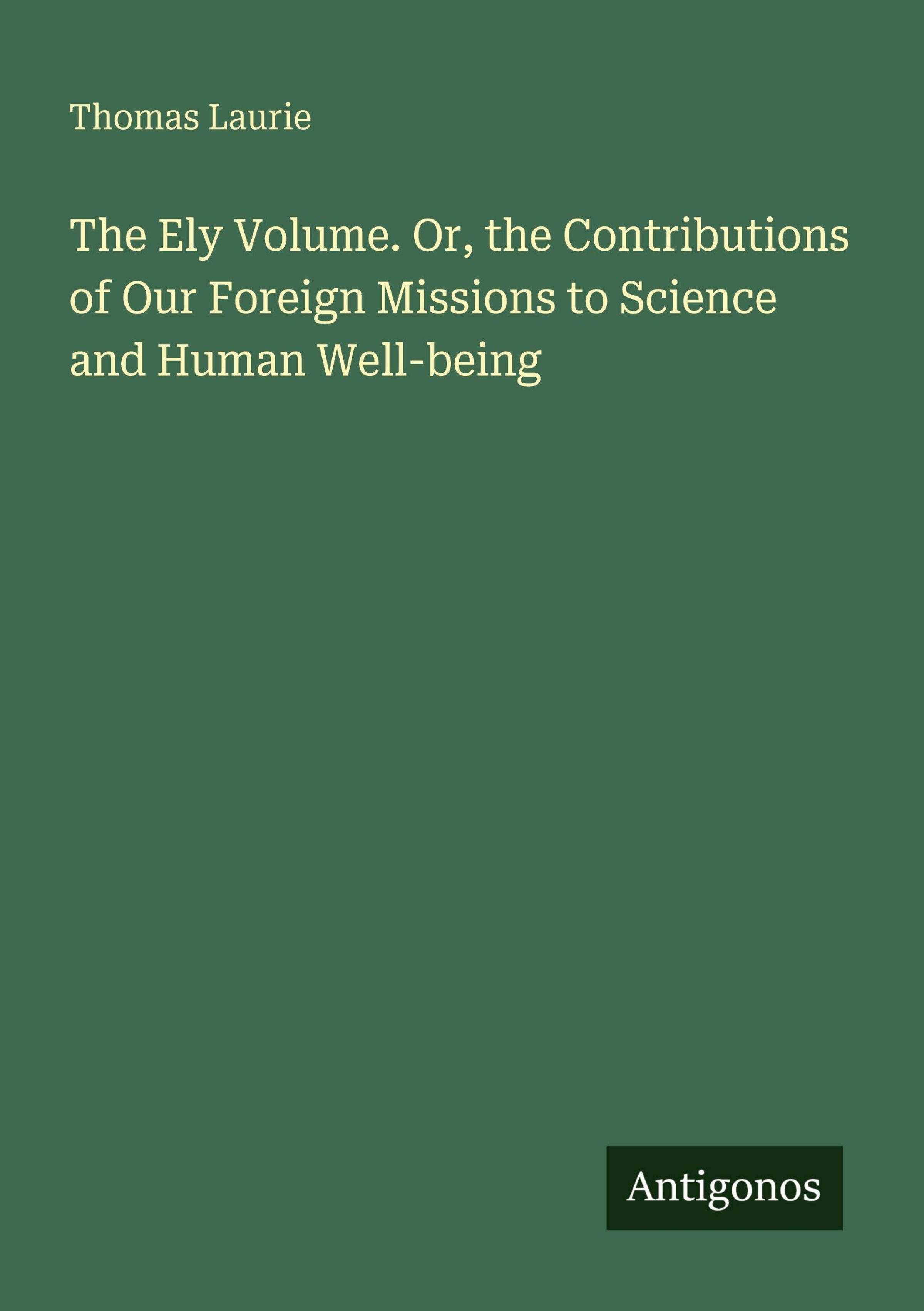 The Ely Volume. Or, the Contributions of Our Foreign Missions to Science and Human Well-being
