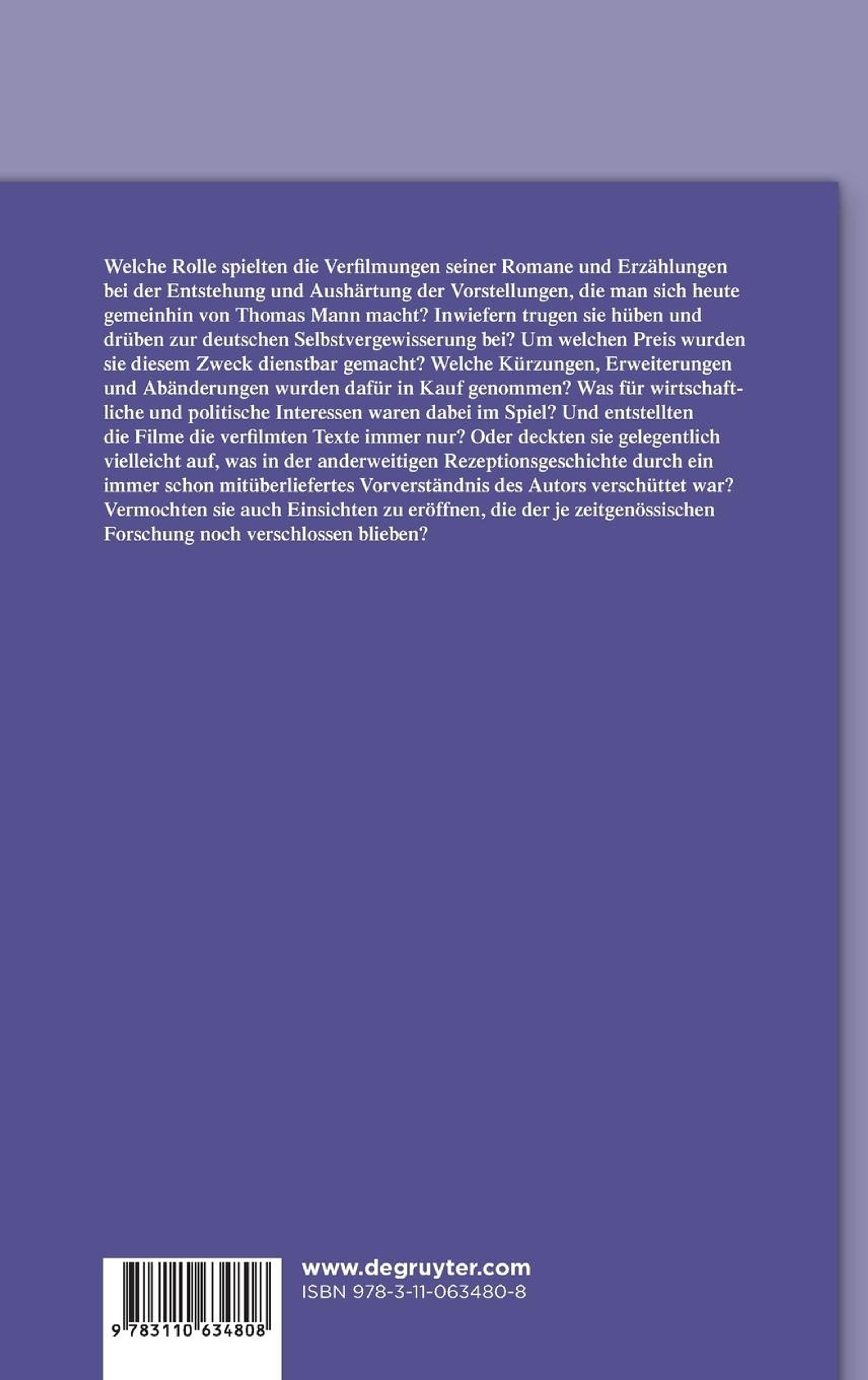 Welche Rolle spielten die Verfilmungen seiner Romane und Erzählungen bei der Entstehung und Aushärtung der Vorstellungen, die man sich heute gemeinhin von Thomas Mann macht? Inwiefern trugen sie hüben und drüben zur deutschen Selbstvergewisserung bei? Um welchen Preis wurden sie diesem Zweck dienstbar gemacht? Welche Kürzungen, Erweiterungen und Abänderungen wurden dafür in Kauf genommen? Was für wirtschaftliche und politische Interessen waren dabei im Spiel? Und entstellten die Filme die verfilmten Texte immer nur? Oder deckten sie gelegentlich vielleicht auf, was in der anderweitigen Rezeptionsgeschichte durch ein immer schon mitüberliefertes Vorverständnis des Autors verschüttet war? Vermochten sie auch Einsichten zu eröffnen, die der je zeitgenössischen Forschung noch verschlossen blieben?