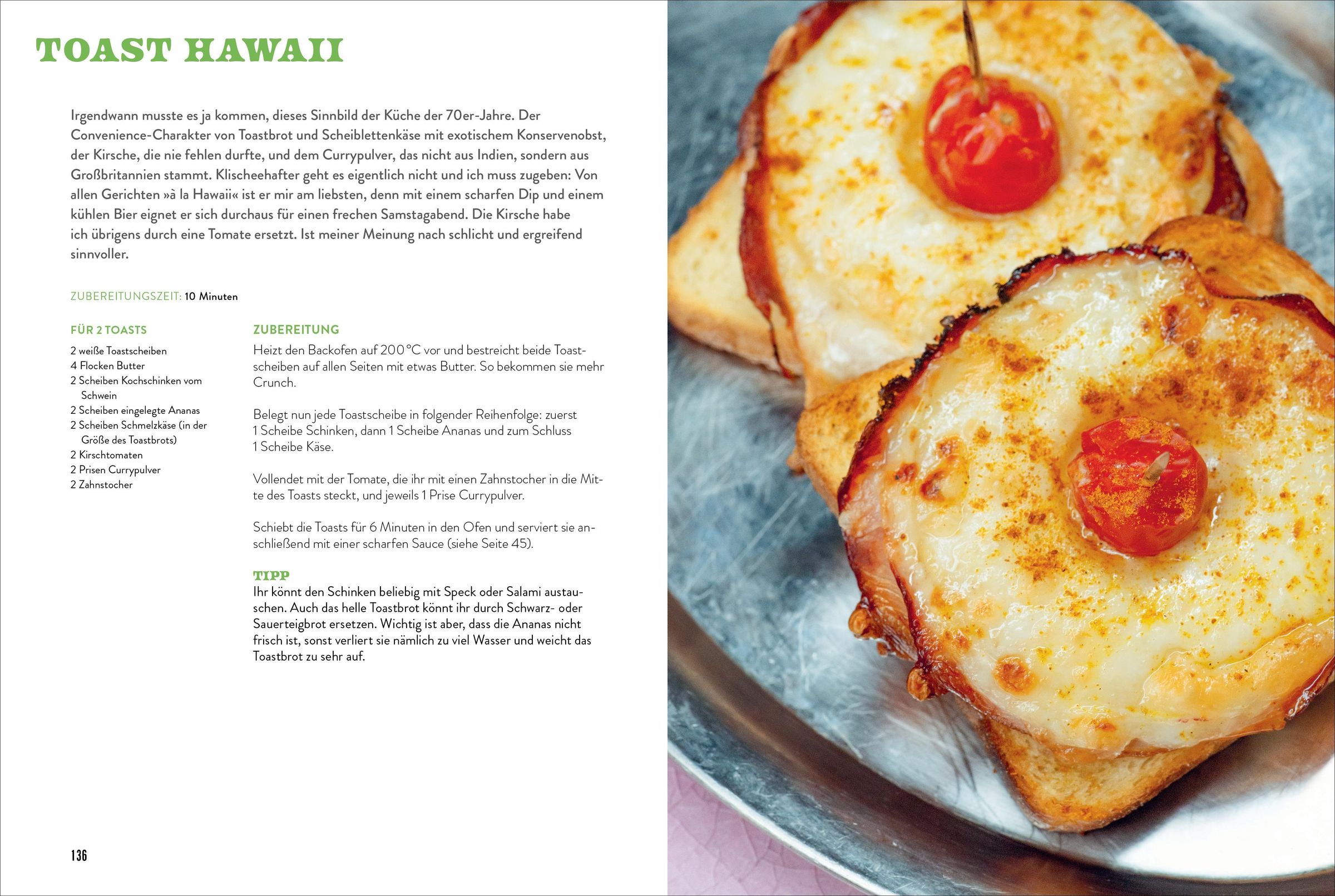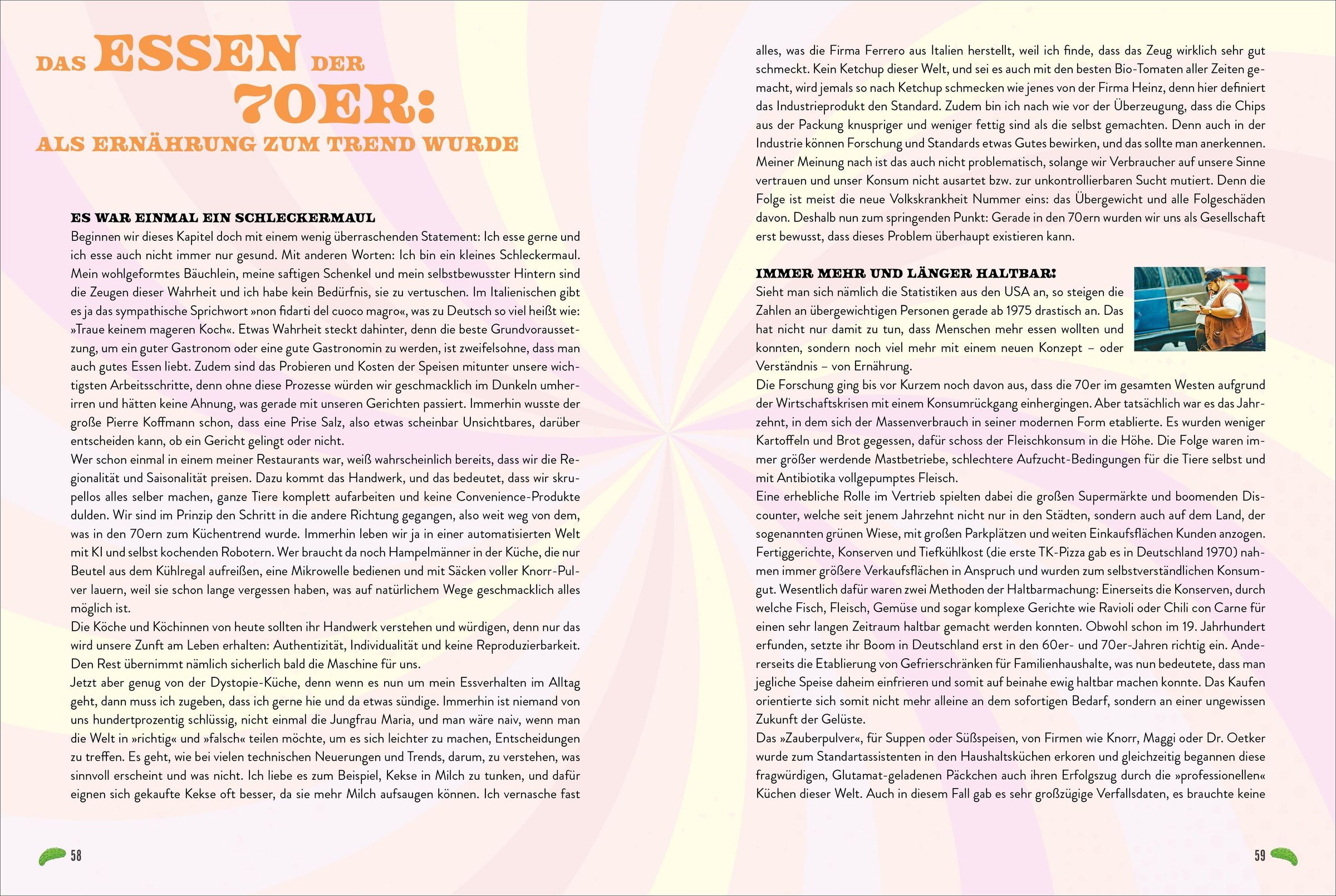 Dieses wunderbar gestaltete Buch nimmt uns mit auf eine humorvolle und nostalgische Reise durch die kulinarische Welt der 1970er-Jahre. Es kombiniert ikonische Rezepte wie 'Toast Hawai', 'Schichtsalat' oder 'Hühnchen in Aspik', die Thomas Ortler gekonnt und unglaublich lecker ins Heute holt, mit historischen Erzählungen und persönlichen Anekdoten, die die Essgewohnheiten dieser Jahrzehnte im historischen Kontext beleuchten.