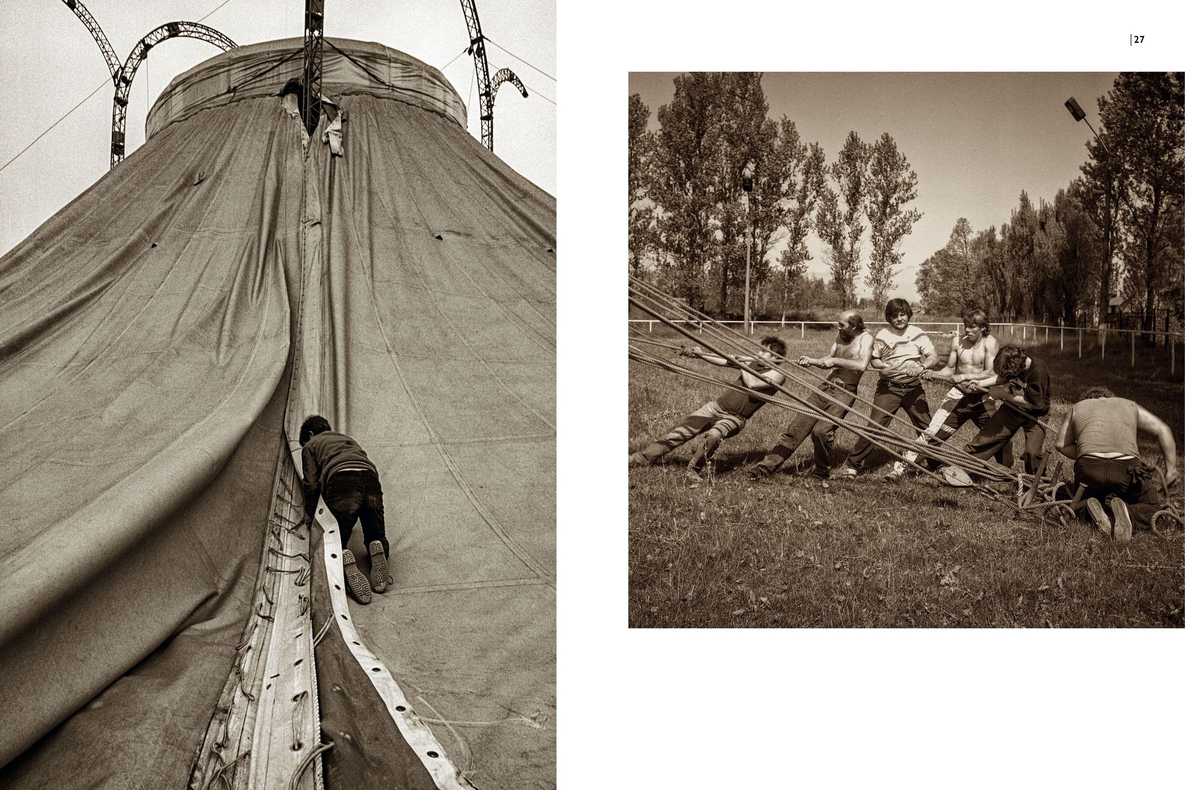 Der Fotograf Thomas Räse eröffnet in seinem neuen Bildband einen eindrucksvollen Blick in die Welt des Zirkuslebens jenseits der großen Shows. Über Jahre hinweg begleitete er mit seiner Kamera Artisten, Tiere und vor allem die Menschen hinter den Kulissen bei ihrer Arbeit. Mit großer Genauigkeit und Empathie dokumentierte er den Alltag im Wanderzirkus. Seine Schwarz-Weiß-Fotografien zeigen mehr als den Moment des Auftritts in der Manege; sie fangen das Lebensgefühl einer besonderen Gemeinschaft ein, geprägt von Konzentration, Vertrauen und Verbundenheit. Räse porträtiert die Rituale, Proben und Emotionen mit großer Nähe und Sensibilität und bringt dem Betrachter die faszinierende Welt des Zirkus auf eine stille und berührende Weise näher. Ein außergewöhnlicher Bildband über eine eigene Welt zwischen Magie und Realität.