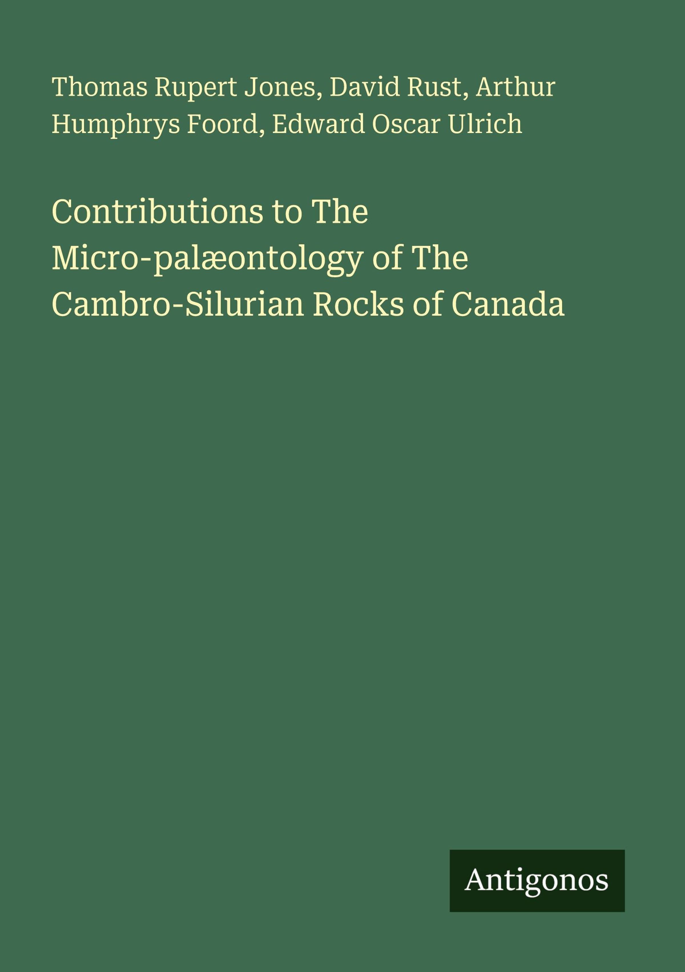 Thomas Rupert Jones: Contributions to The Micro-palæontology of The Cambro-Silurian Rocks of Canada, Kartoniert / Broschiert