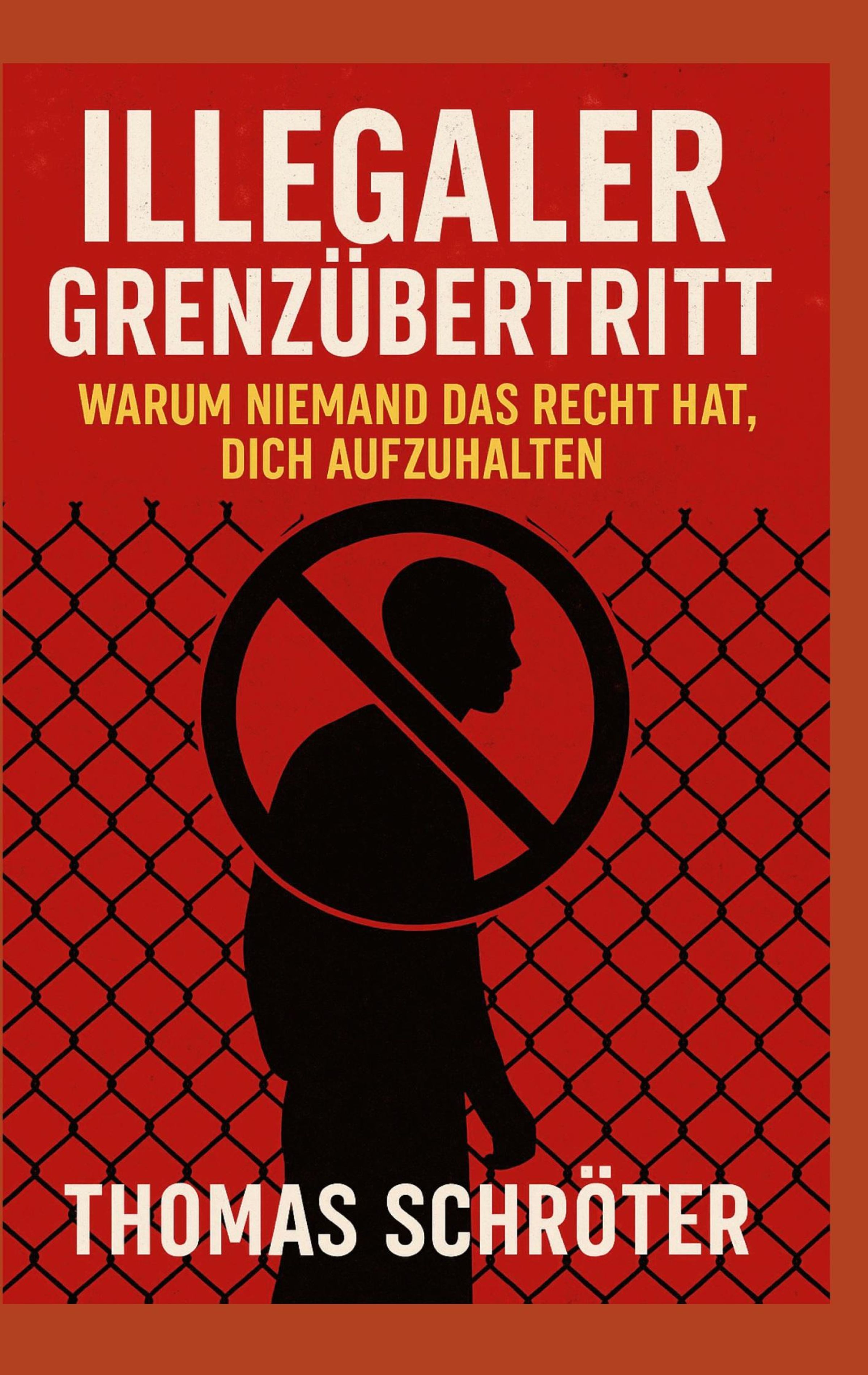 "ILLEGALER GRENZÜBERTRITT: WARUM NIEMAND DAS RECHT HAT, DICH AUFZUHALTEN. THOMAS SCHRÖTER." Silhouette vor Zaun., Buch