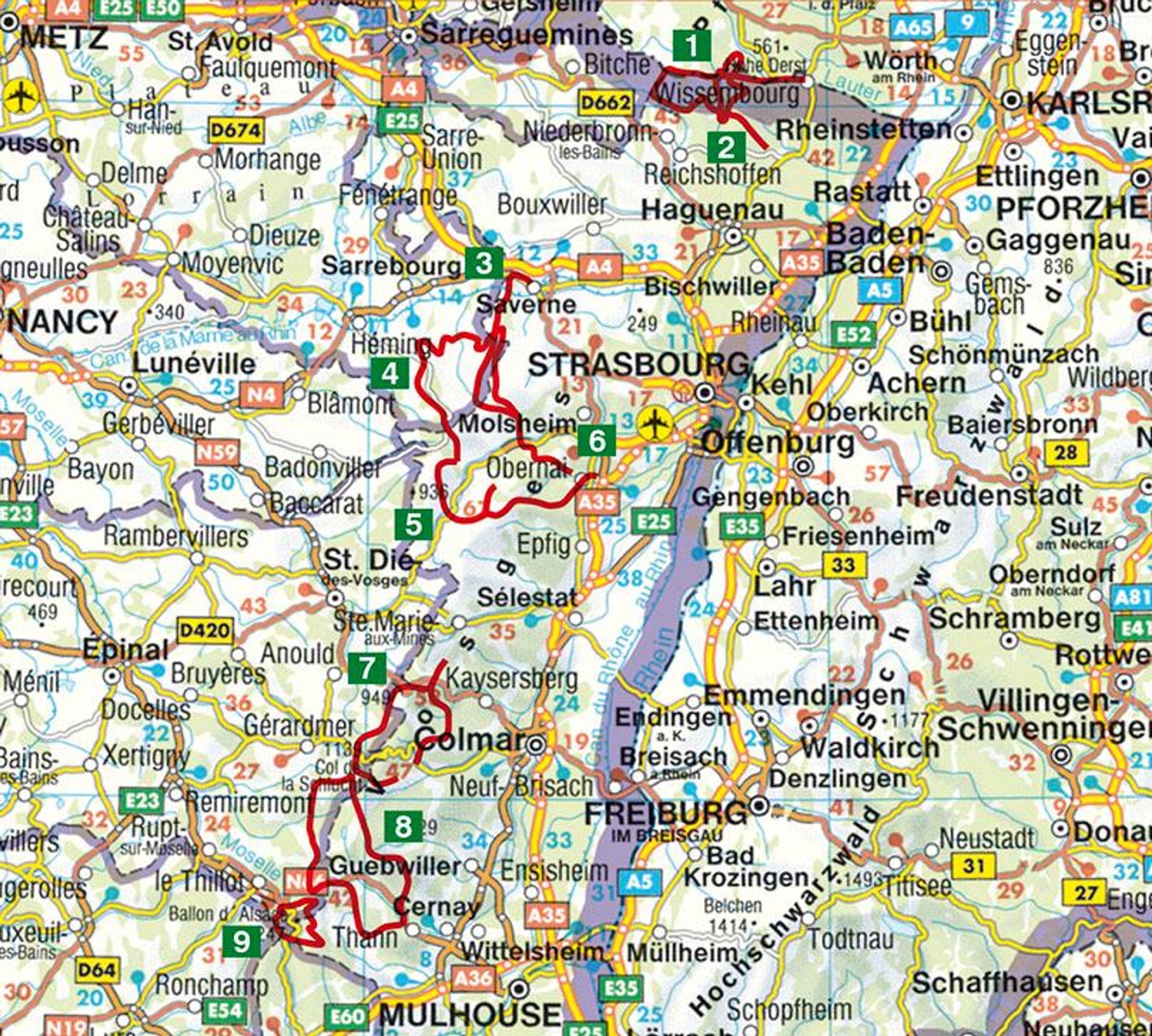 - 35 Höhenprofile, 54 Wanderkärtchen im Maßstab 1:50.000 sowie zwei Übersichtskarten im Maßstab 1:1.000.000 und 1:1.800.000