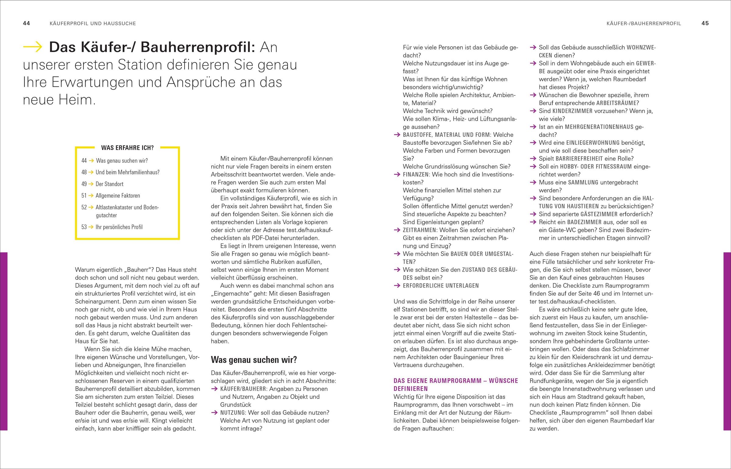 "Handbuch Hauskauf. Gebrauchte Immobilien analysieren, bewerten, finanzieren." Bild eines modernen Hauses., Buch