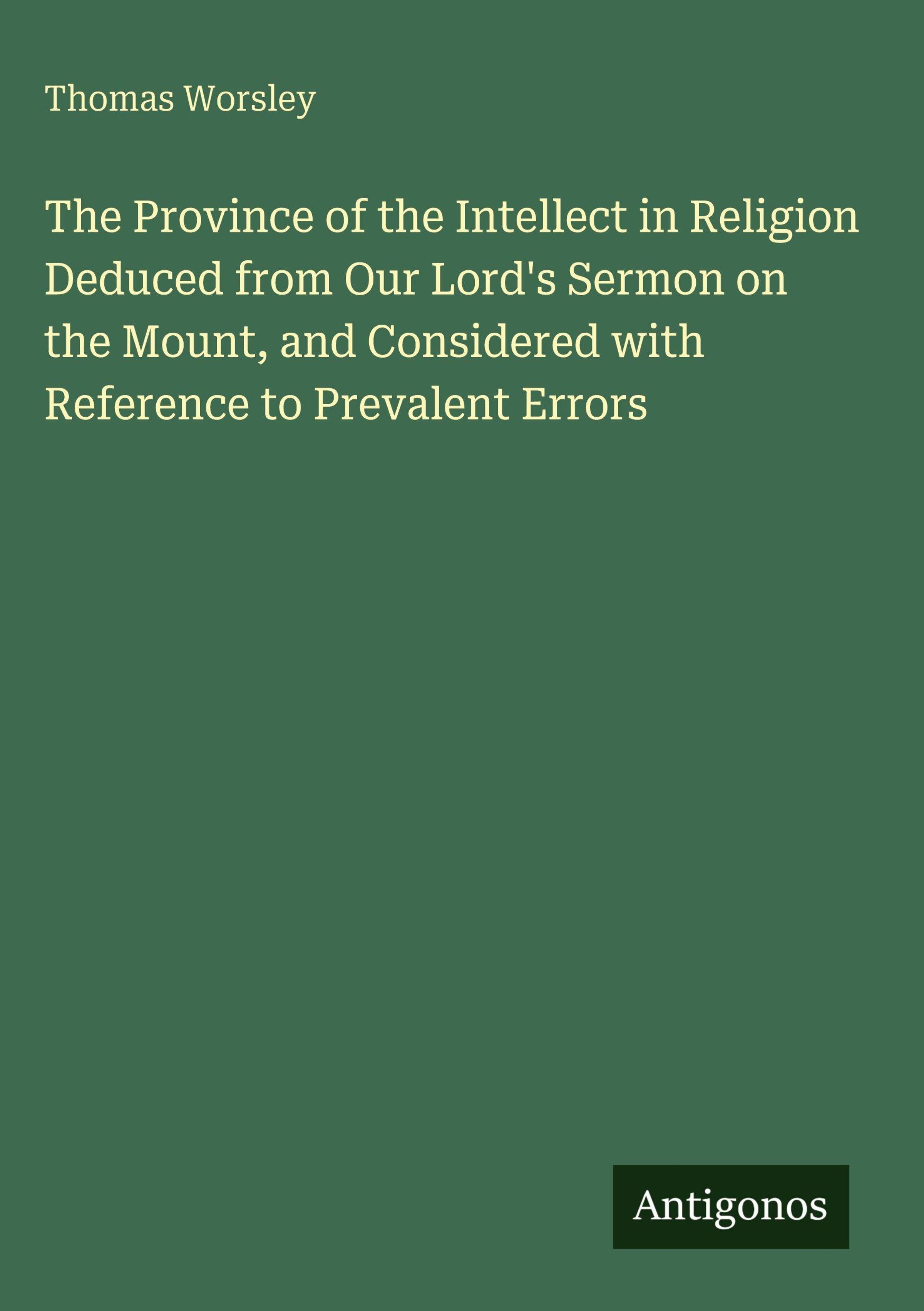 The Province of the Intellect in Religion Deduced from Our Lord's Sermon on the Mount, and Considered with Reference to Prevalent Errors