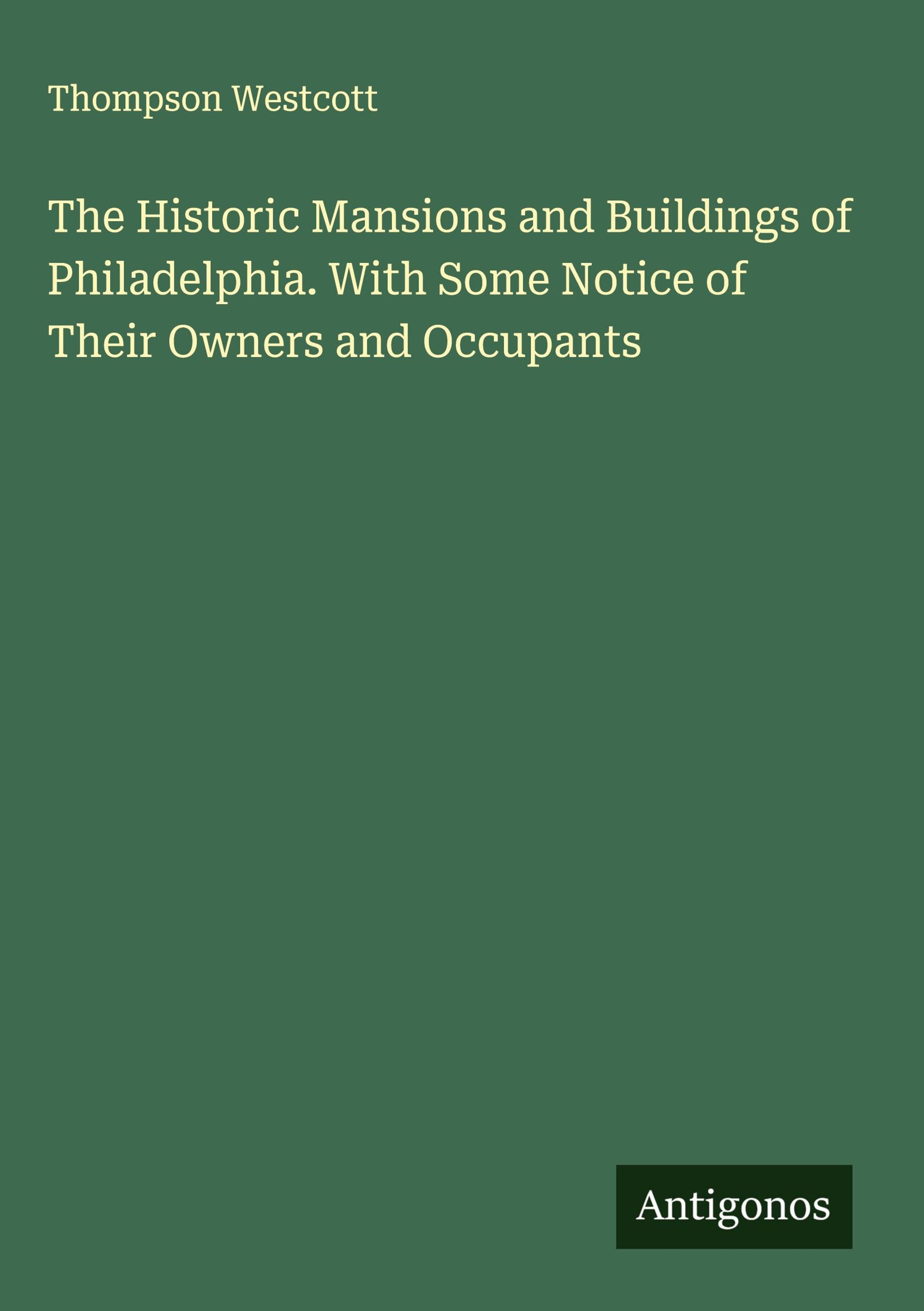 Thompson Westcott: The Historic Mansions and Buildings of Philadelphia. With Some Notice of Their Owners and..., Gebunden