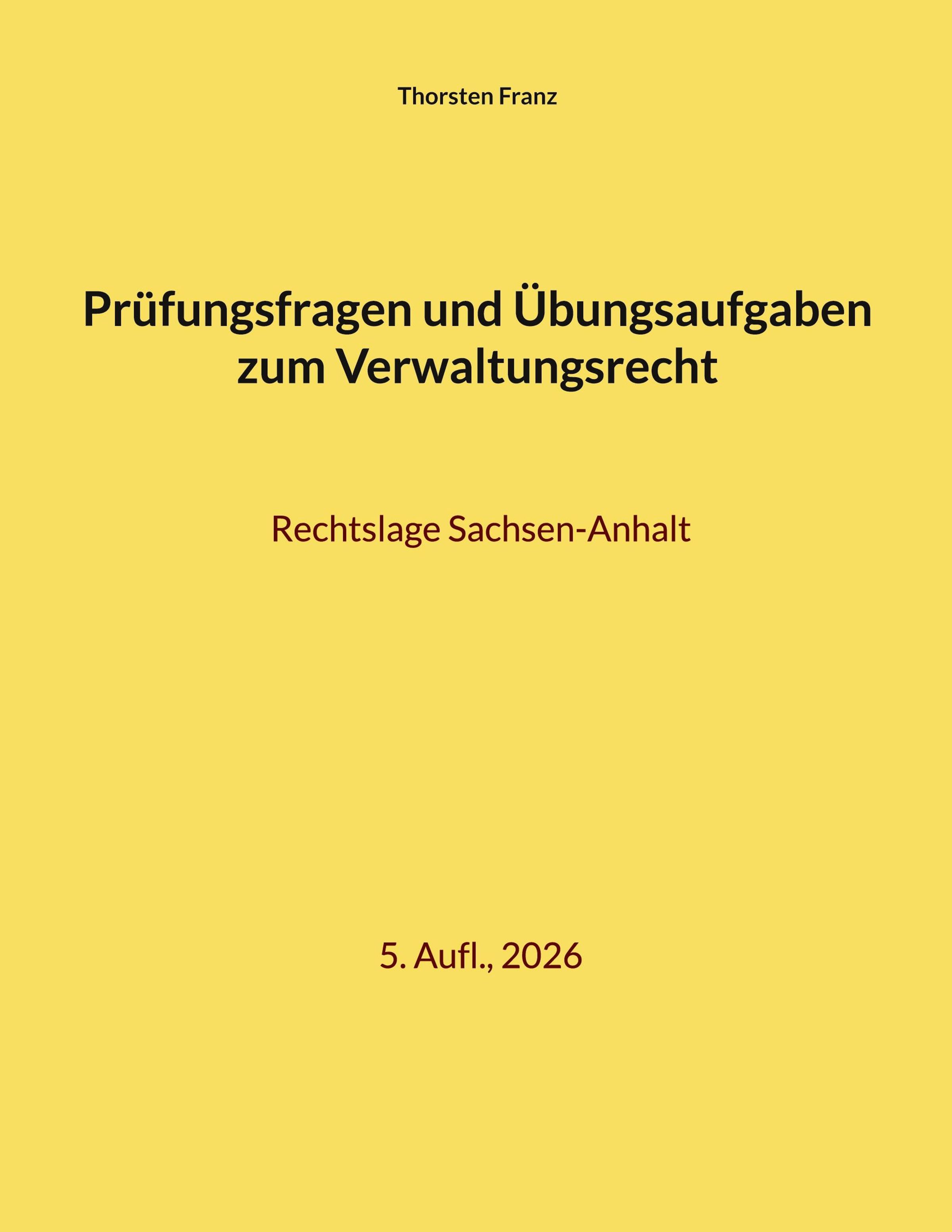 Vor allem die mündliche Prüfung verlangt vom Prüfling sicheres und schnell abrufbares Wissen zu den wichtigsten Vorschriften des Rechtsgebiets. Das Werk soll beim Erwerb dieses Wissens helfen. Da die Landes- und Kommunalverwaltung neben den bundesrechtlichen auch einige landesrechtliche Bestimmungen des allgemeinen Verwaltungsrechts und Verwaltungsprozessrechts zu beachten hat, sollte man sich dieses Wissen unter Berücksichtigung der im jeweligen Bundesland geltenden Vorgaben aneignen. Diesem Werk liegt die Rechtslage im Land Sachsen-Anhalt zugrunde.