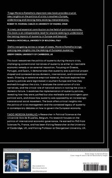 This book reexamines the politics of austerity during the euro crisis, challenging conventional narratives of austerity as either an inevitable economic remedy or an external imposition. Focusing on Greece, Portugal, and Spain, it demonstrates that austerity was a political project shaped and contested across domestic, international, and transnational levels. Drawing on extensive empirical material, the book explores how austerity policies were legitimated in southern Europe and how they evolved throughout the crisis. It analyses the construction of crisis narratives, and the critical role of national actors in rooting the crisis in domestic failure. It examines the implementation of austerity policies, revealing how they were justified but also malleable and contingent upon political work. And it shows how austerity was opposed by an increasingly transnational social movement. The book offers critical insights into the politics of crisis management and the contested legacy of austerity in contemporary debates on how to govern the European economy.