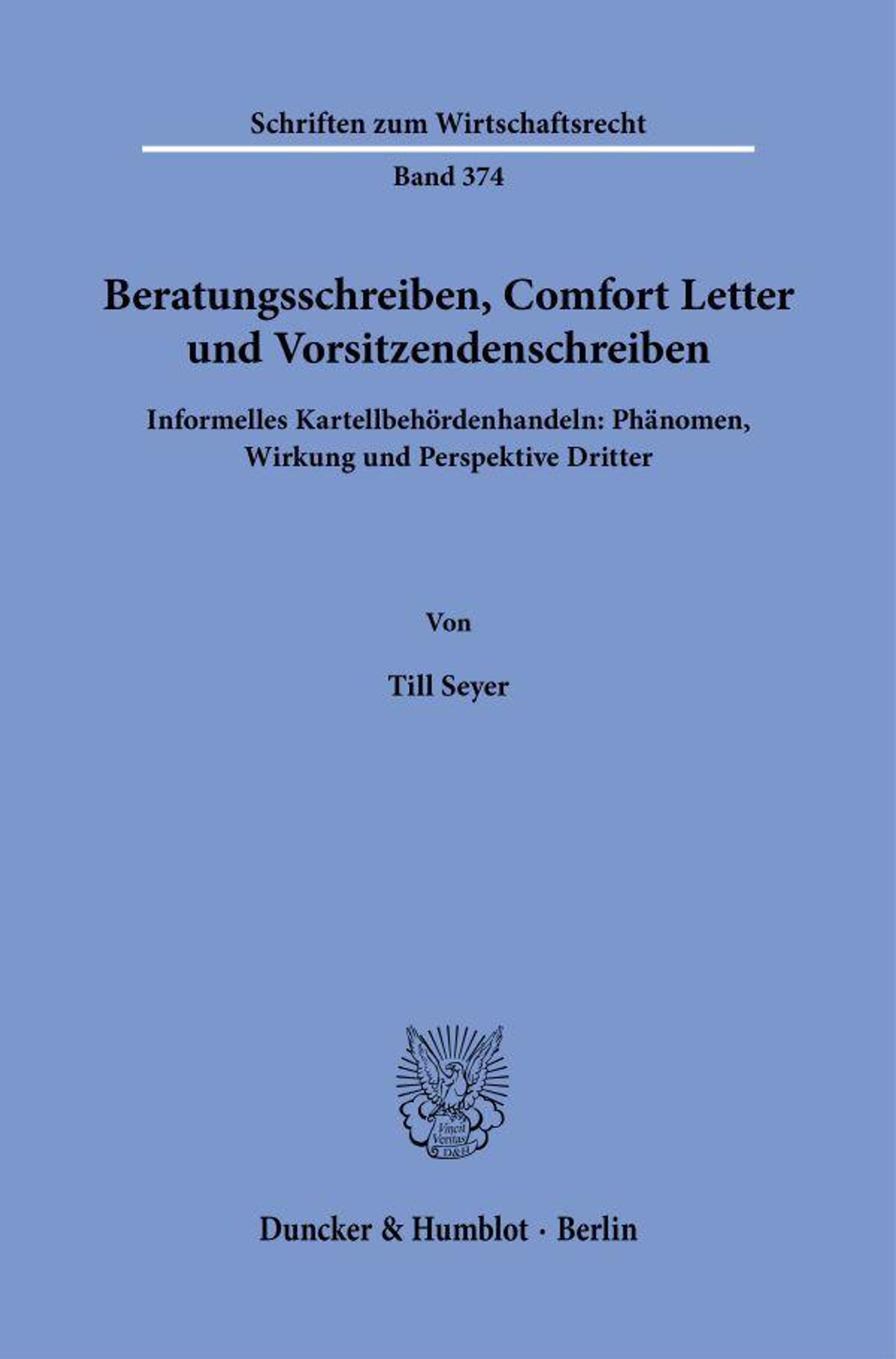 'Guidance Letter, Comfort Letter, ¿Vorsitzendenschreiben¿. Informal Competition Authority Action: Phenomenon, Effect, and Third-Party Perspective': Guidance Letters, Comfort Letters, and ¿Vorsitzendenschreiben¿ offer informal guidance on antitrust law, provided by the European Commission and the German Federal Cartel Office. The thesis examines the growing practice on the basis of recent cases. In particular, it specifies the scope of resulting legitimate expectations of the addressees and identifies participation and transparency rights of third parties.