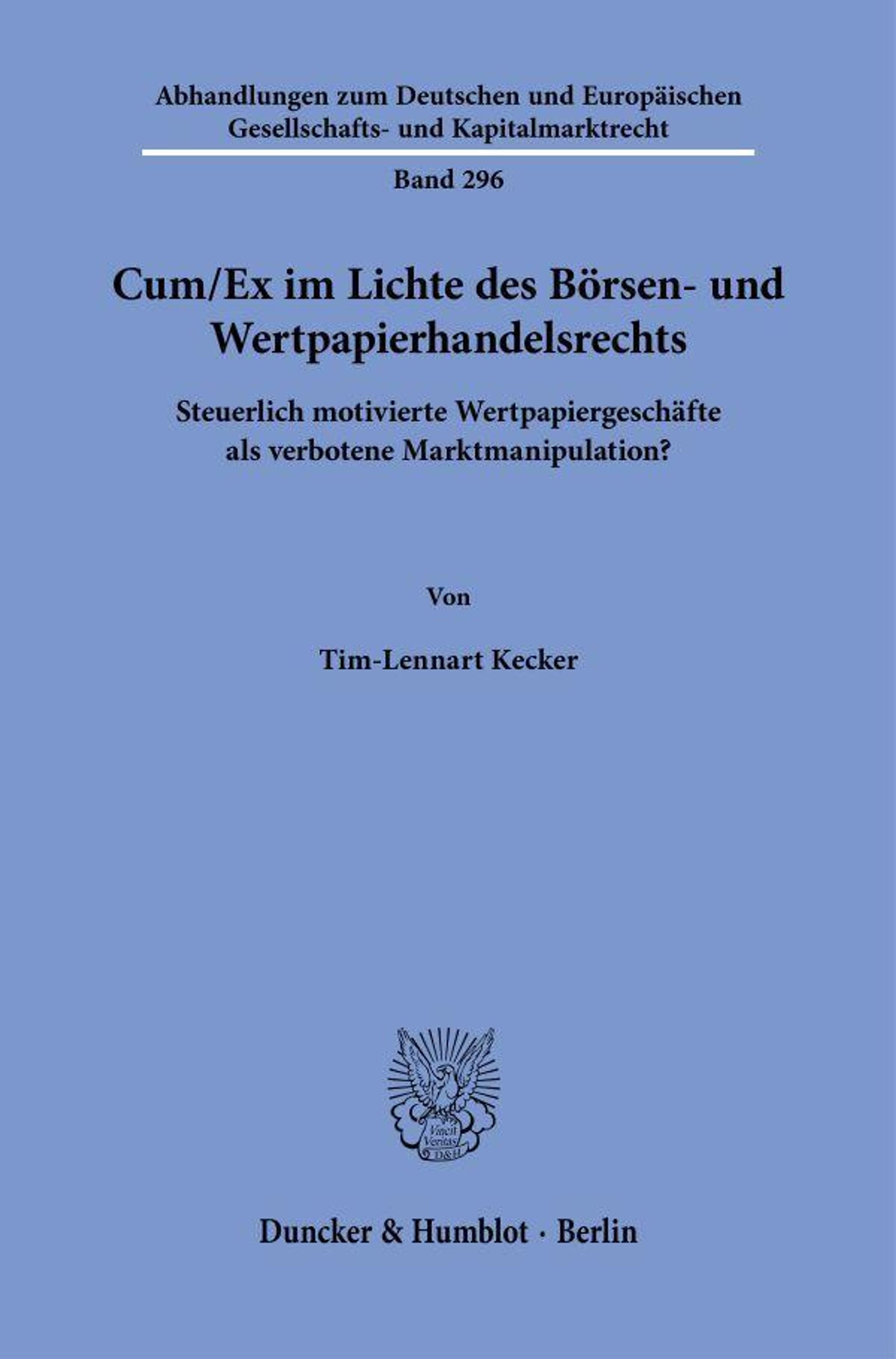 Der Artikel Tim-Lennart Kecker: Cum-Ex im Lichte des Börsen- und Wertpapierhandelsrechts wurde in den Warenkorb gelegt.