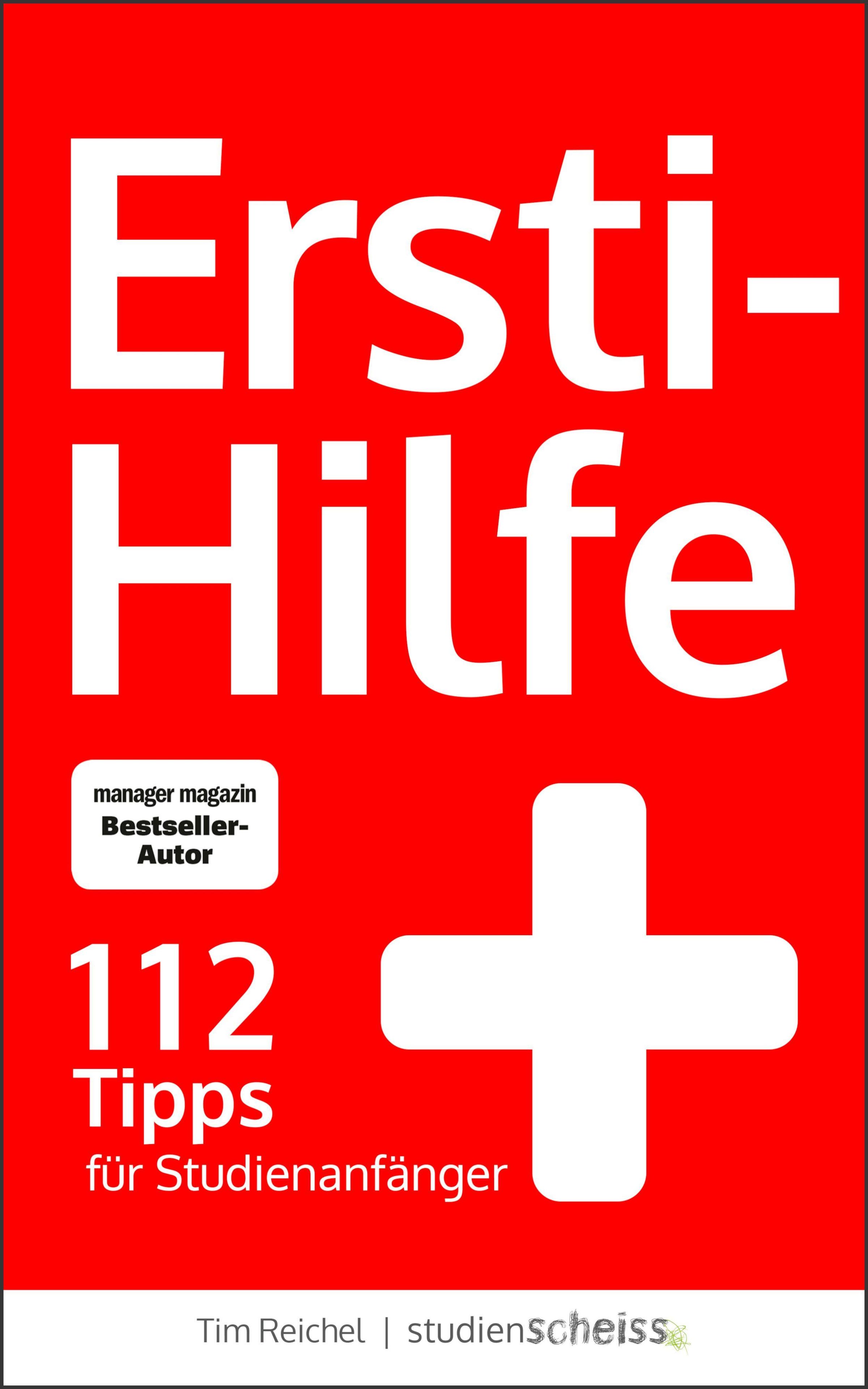 Die Ersti-Hilfe umfasst 112 Tipps, die dir das Studieren erleichtern und den Weg in ein glückliches und zufriedenes Studentenleben zeigen. Es ist die Essenz meiner täglichen Arbeit - ein Best-of meiner Blogartikel auf studienscheiss. de und die Crème de la Crème meiner Coaching-Inhalte. Es gibt keine theoretische Einführung oder großes wissenschaftliches Tamtam. Ich zeige dir 112 konkrete Maßnahmen, die du sofort umsetzen kannst - ohne Vorwissen oder Eingewöhnungszeit.