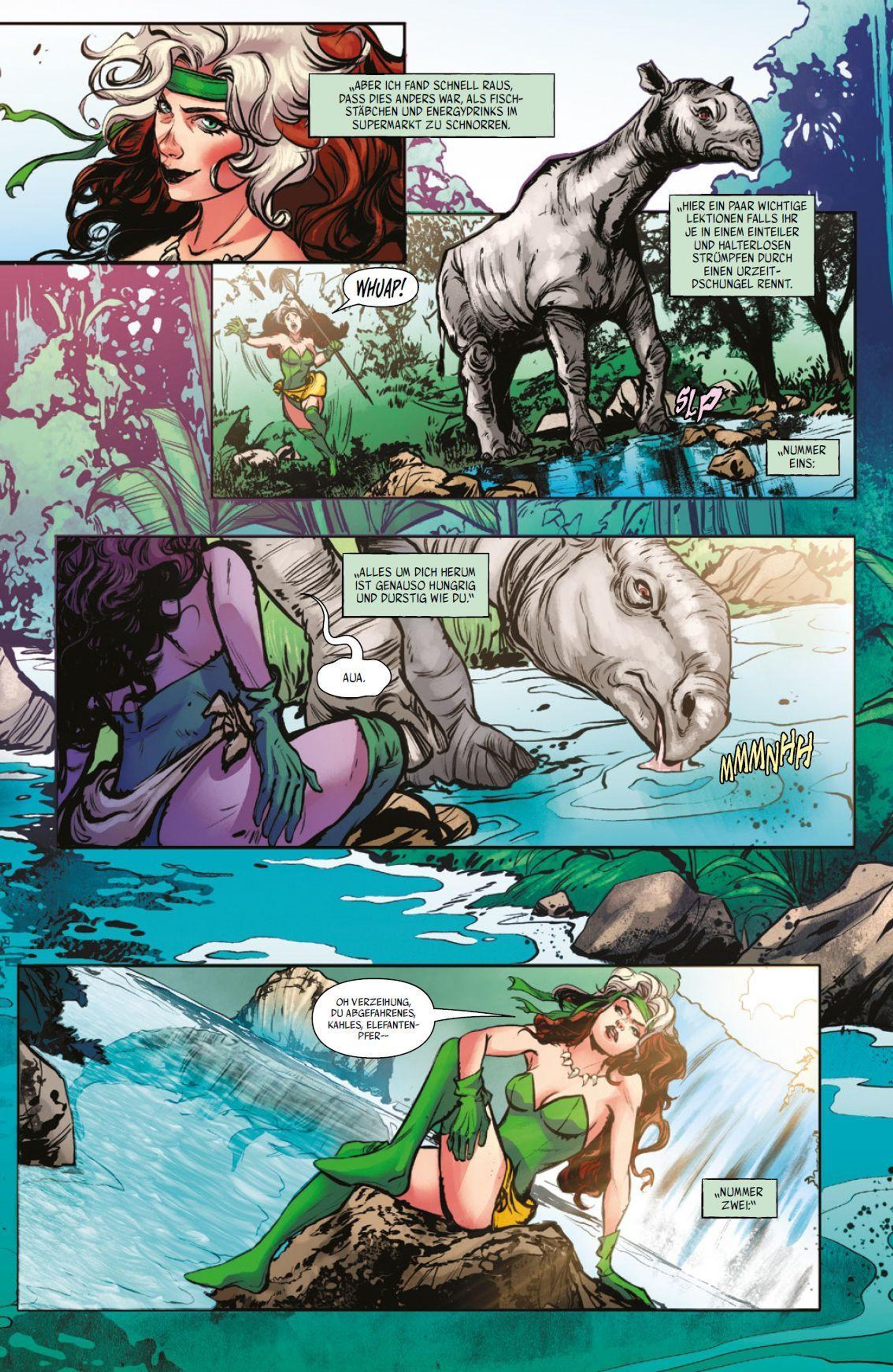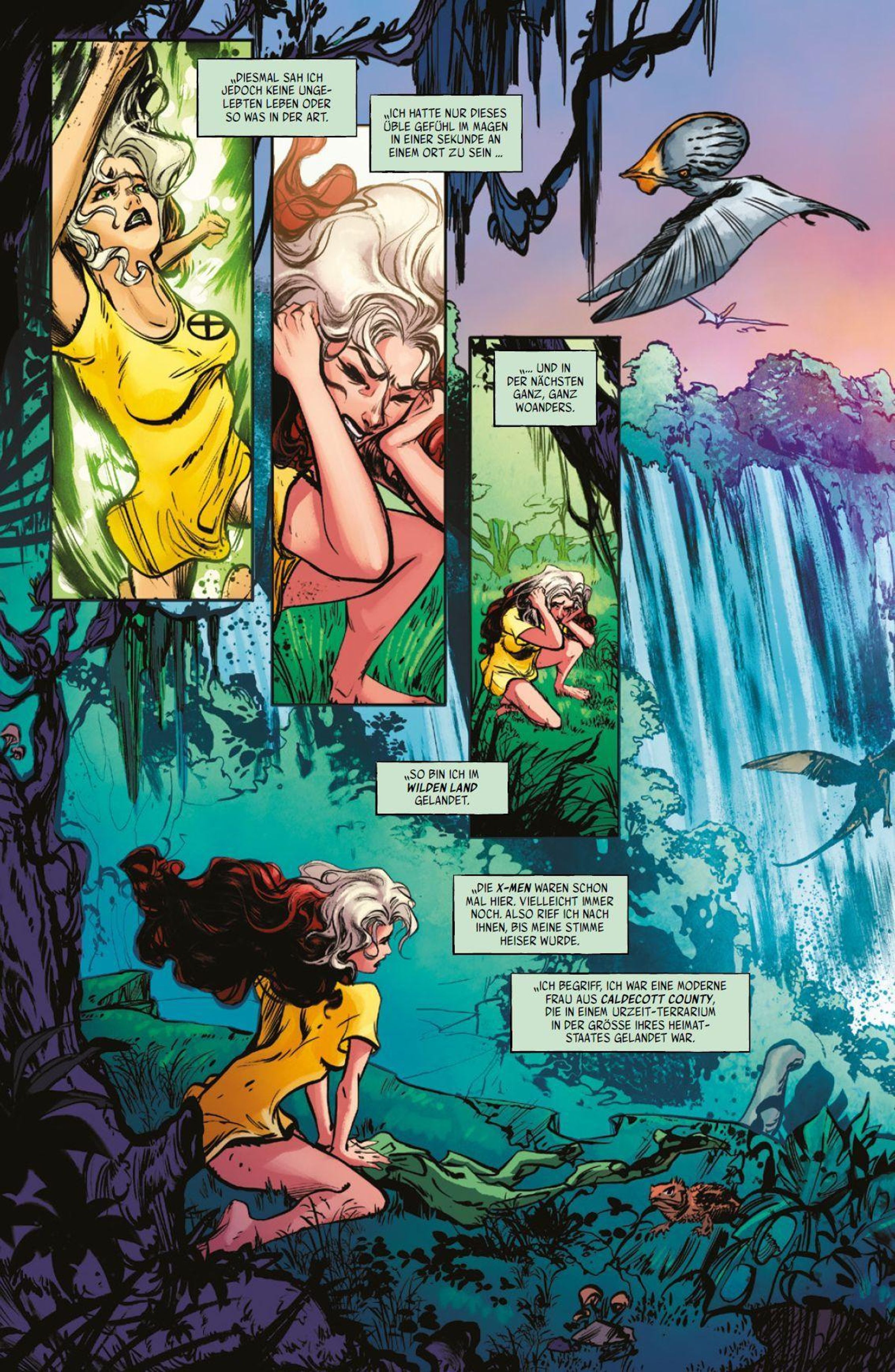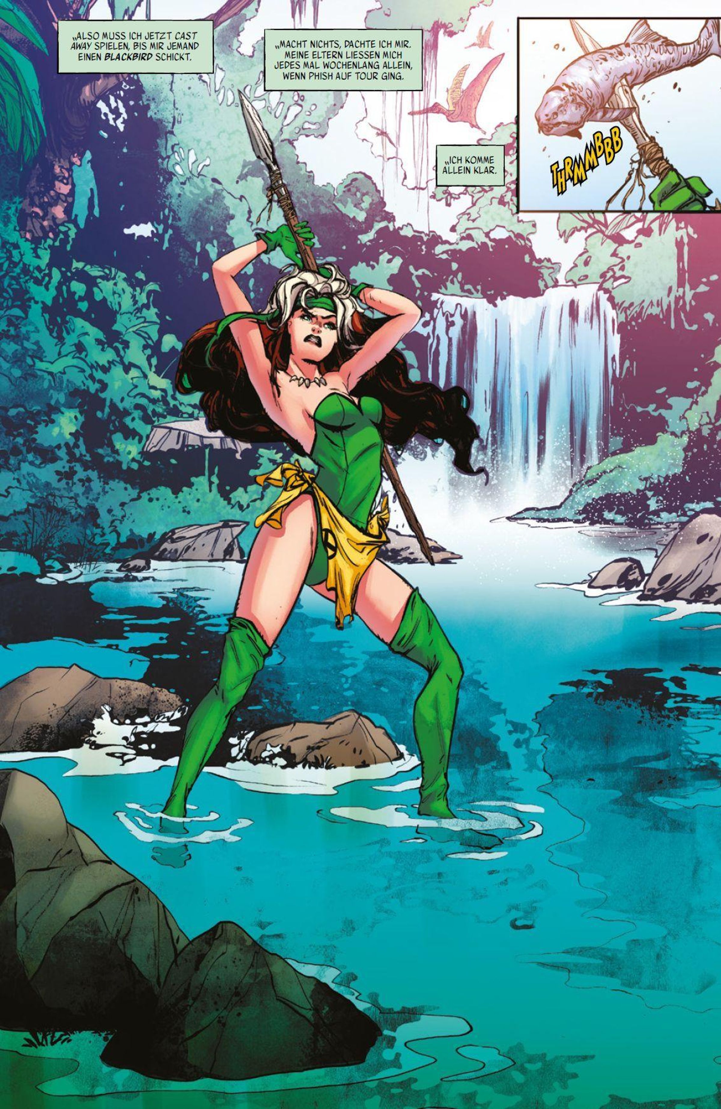 DAMALS BEI DEN DINOS ... Vor vielen Jahren landete Rogue ohne ihre Mutantenkräfte im ebenso tropischen wie prähistorischen Wilden Land! Hier muss sie unter Dinosauriern und anderen Bestien überleben, findet aber auch unerwartete Verbündete - allen voran den mächtigen Superschurken Magneto und Dschungelkönig Ka-Zar. Allerdings wirken finstere Kräfte im Wilden Land, die für Chaos sorgen.