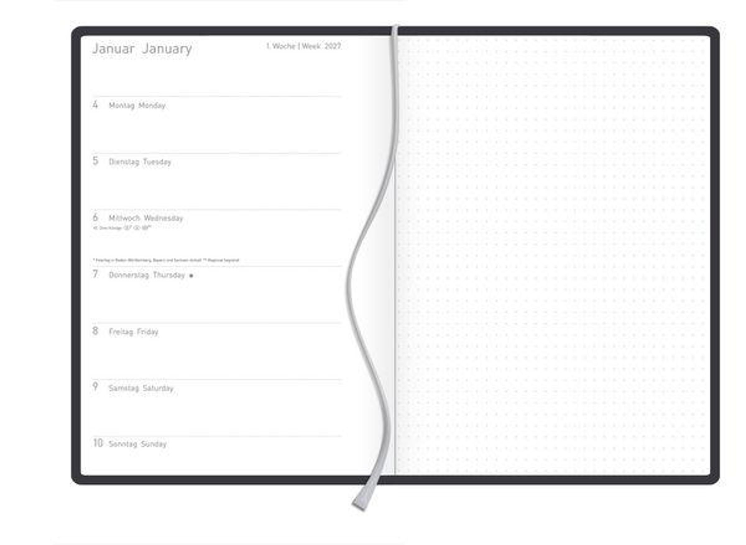 - Praktische Wochenübersicht; Jede Kalenderwoche übersichtlich auf einer Doppelseite