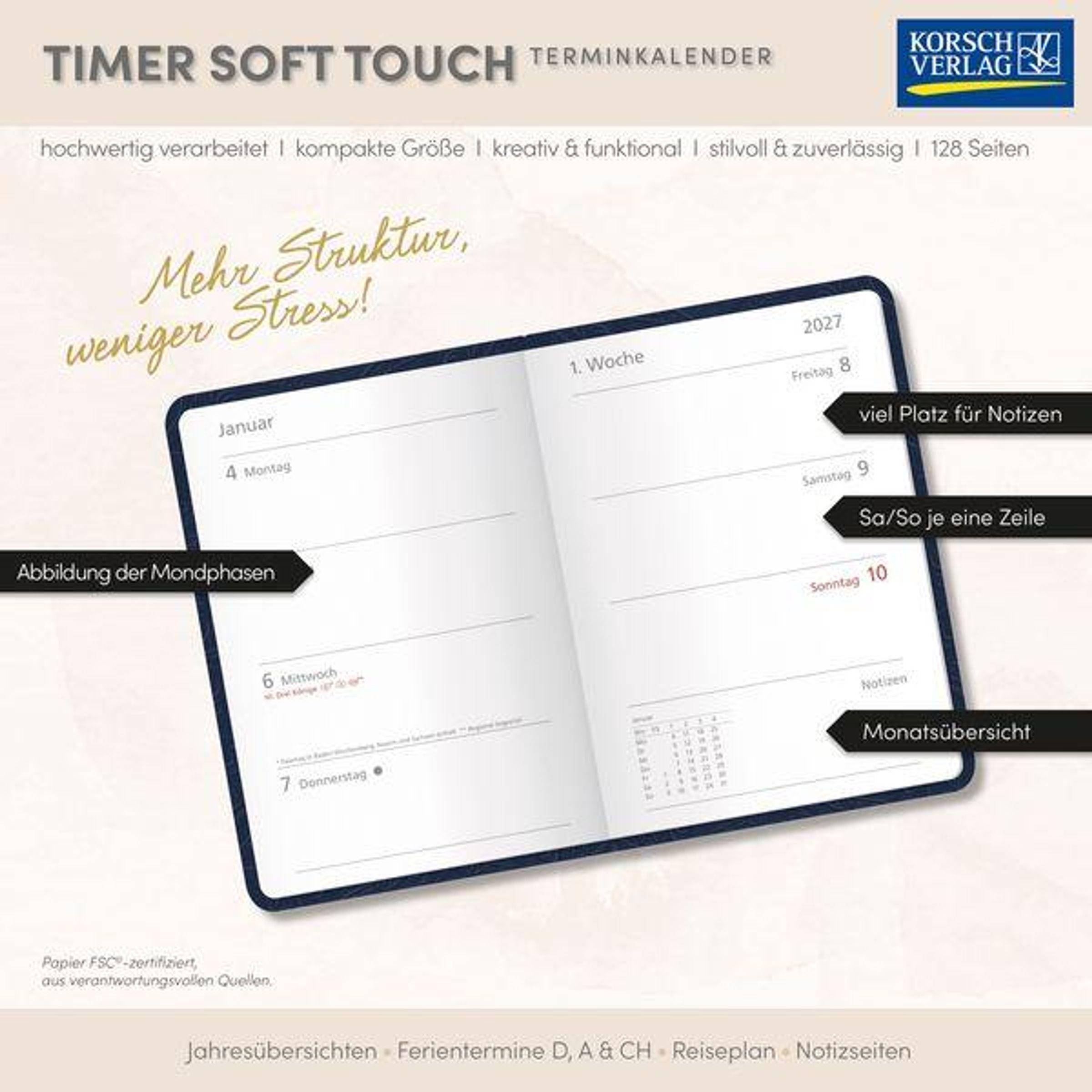 - Buchkalender im Format: 11 x 15, 5 cm, 128 Seiten, umweltfreundliches FSC Papier