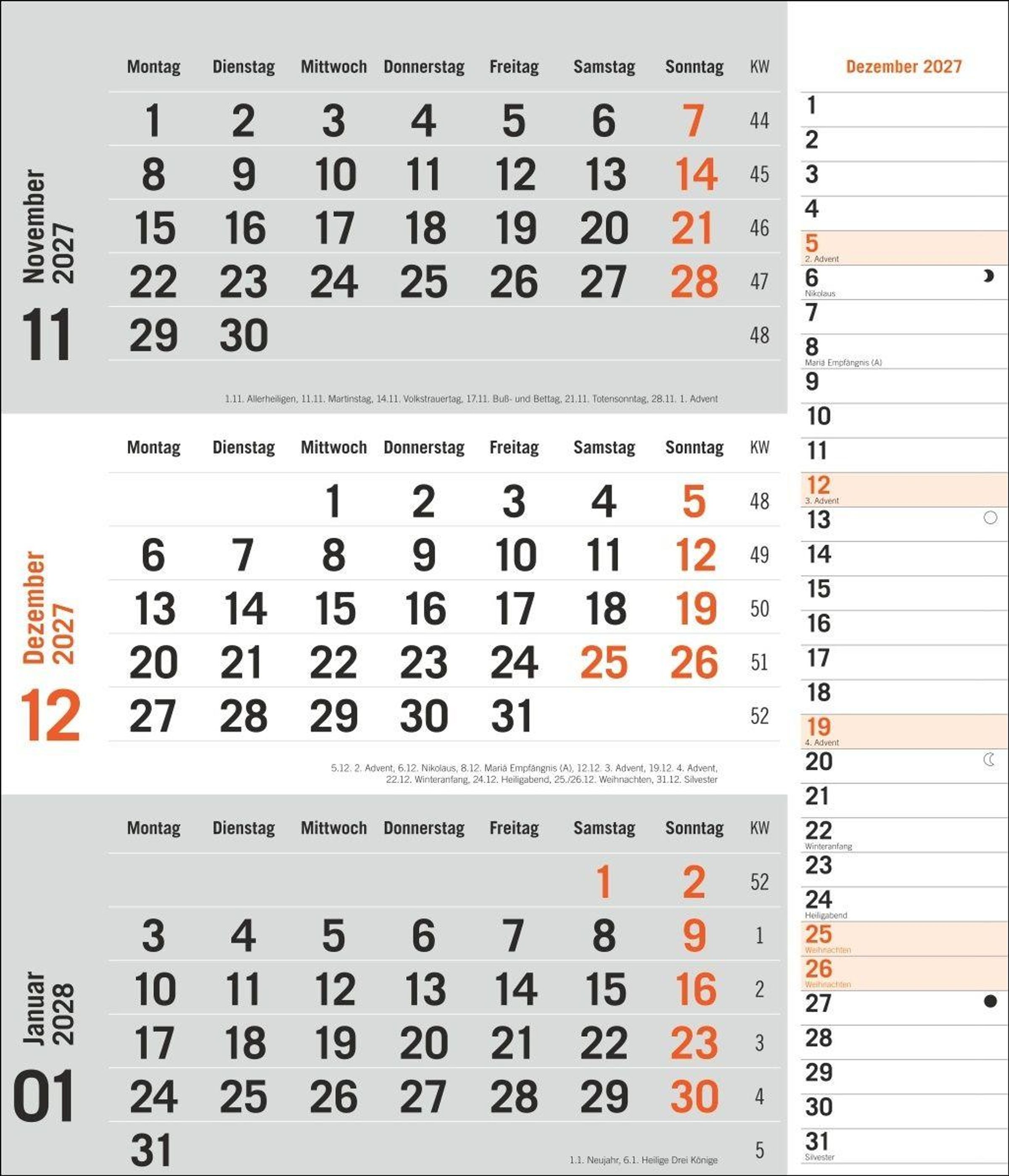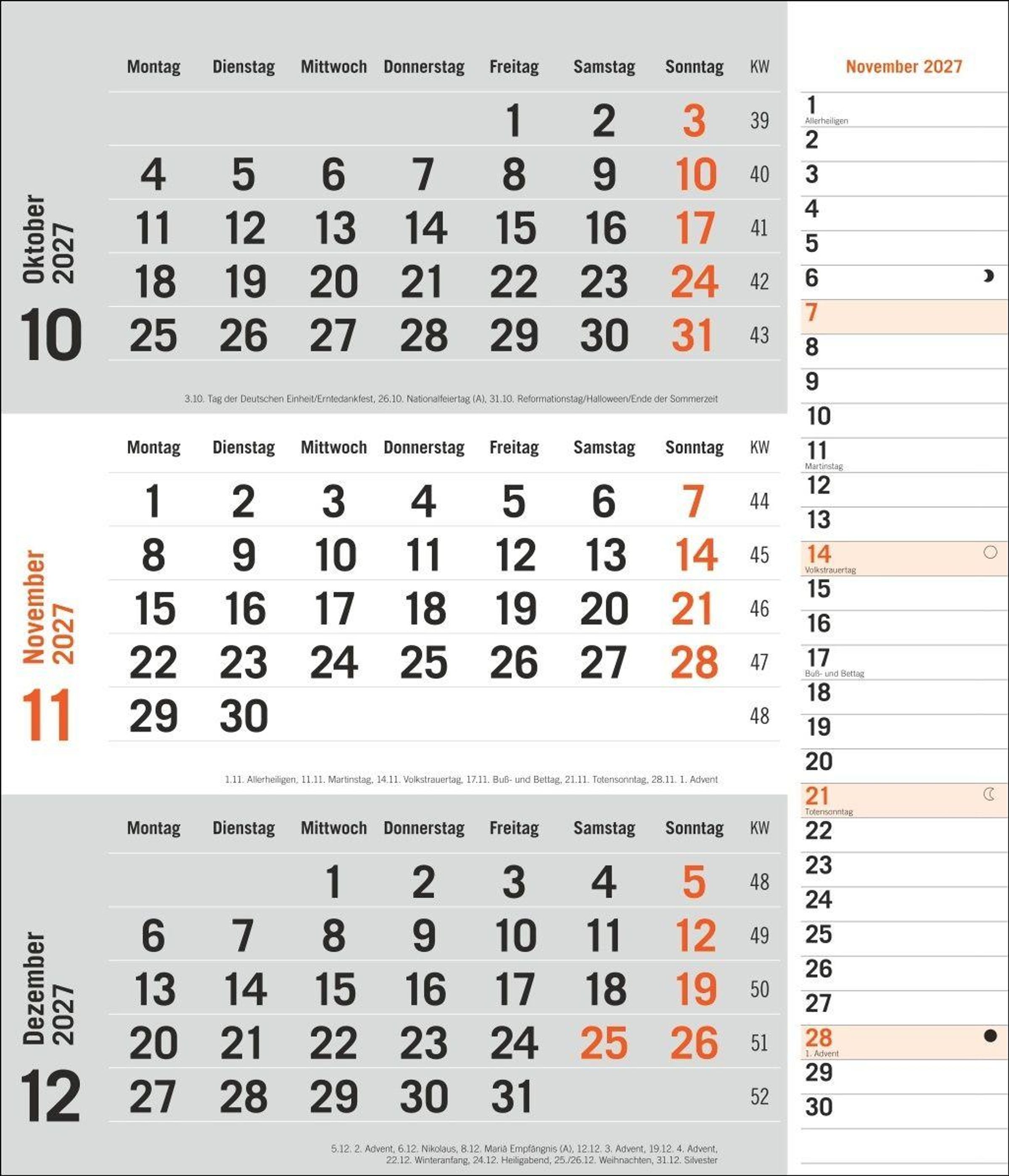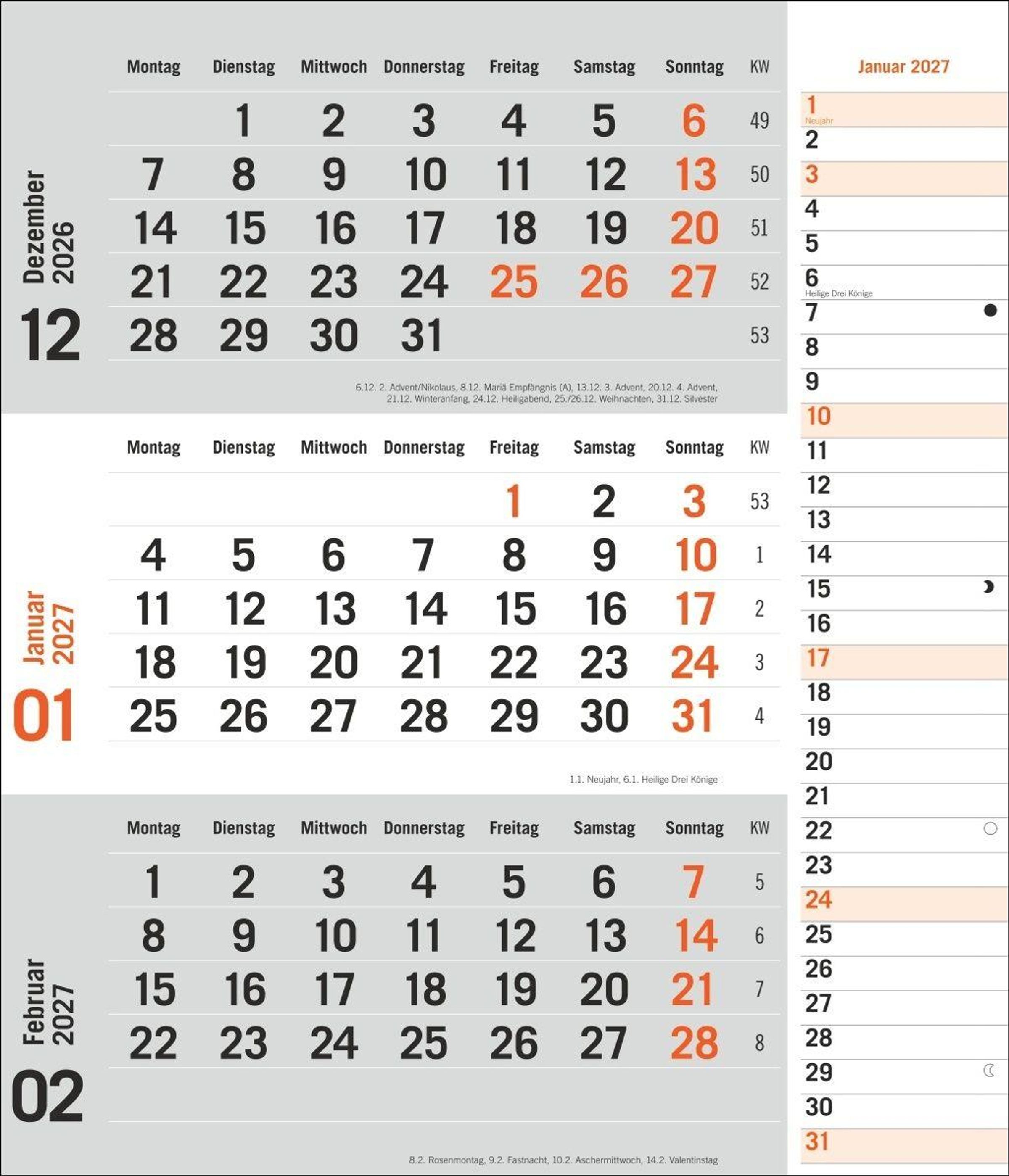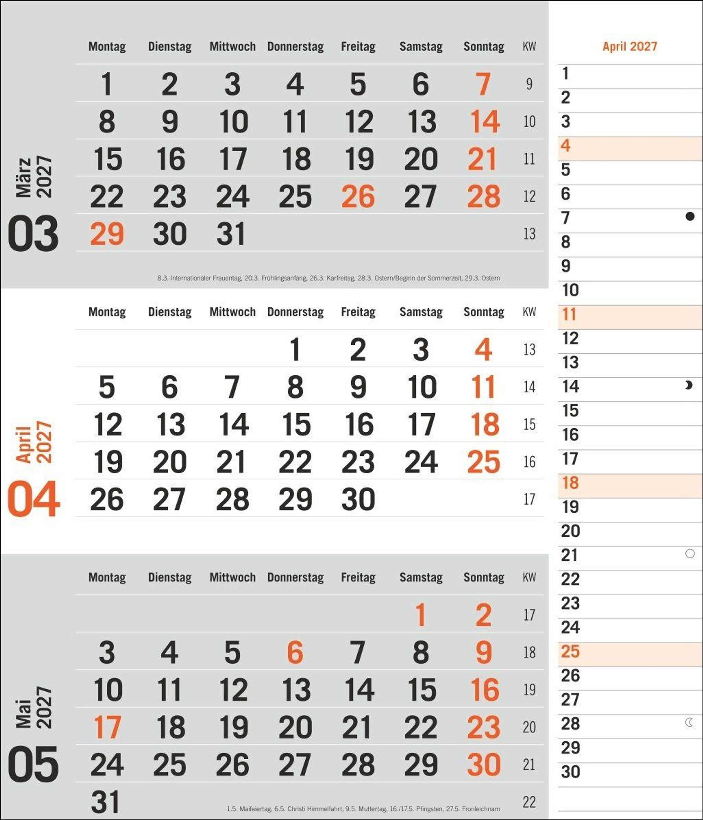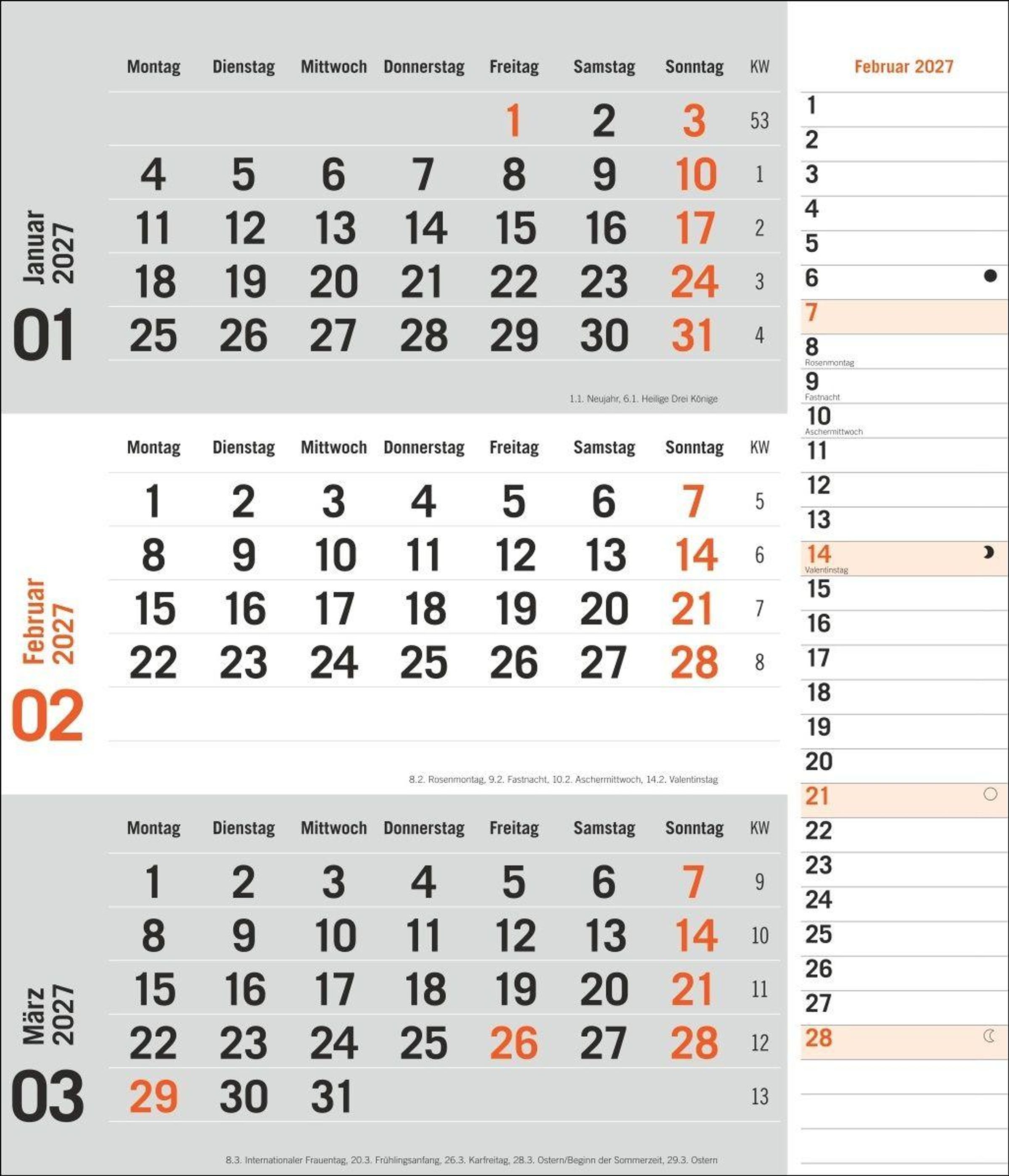 times&more 3-Monatsplaner, orange 2027 (Kalender)