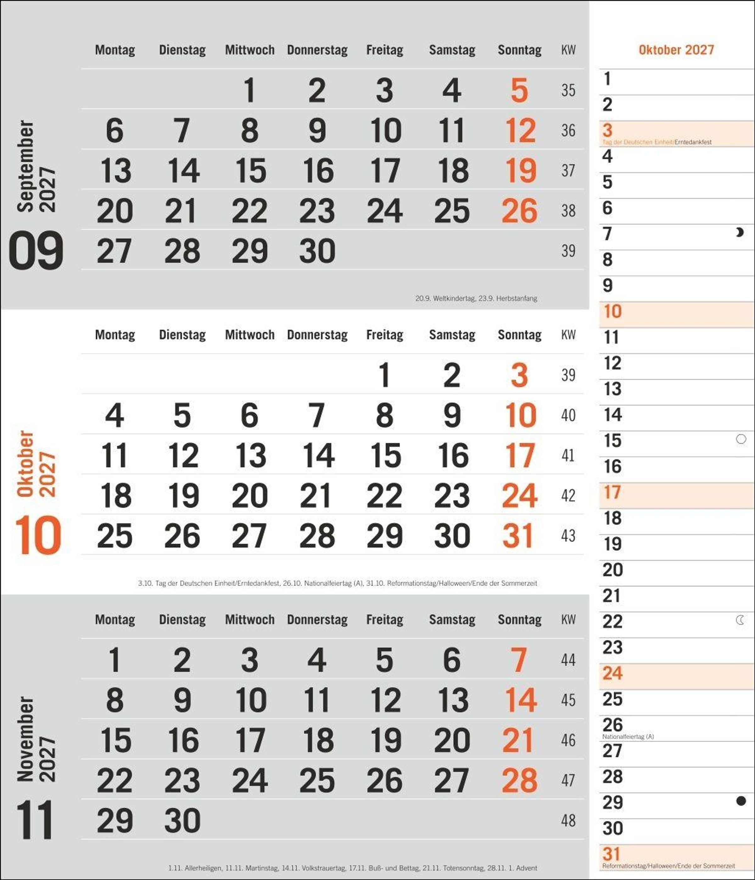 Organisationshilfe mit Frische-Kick: Timer für Büro und Homeoffice mit farblich abgesetzten Wochenenden und Feiertagen in Orange