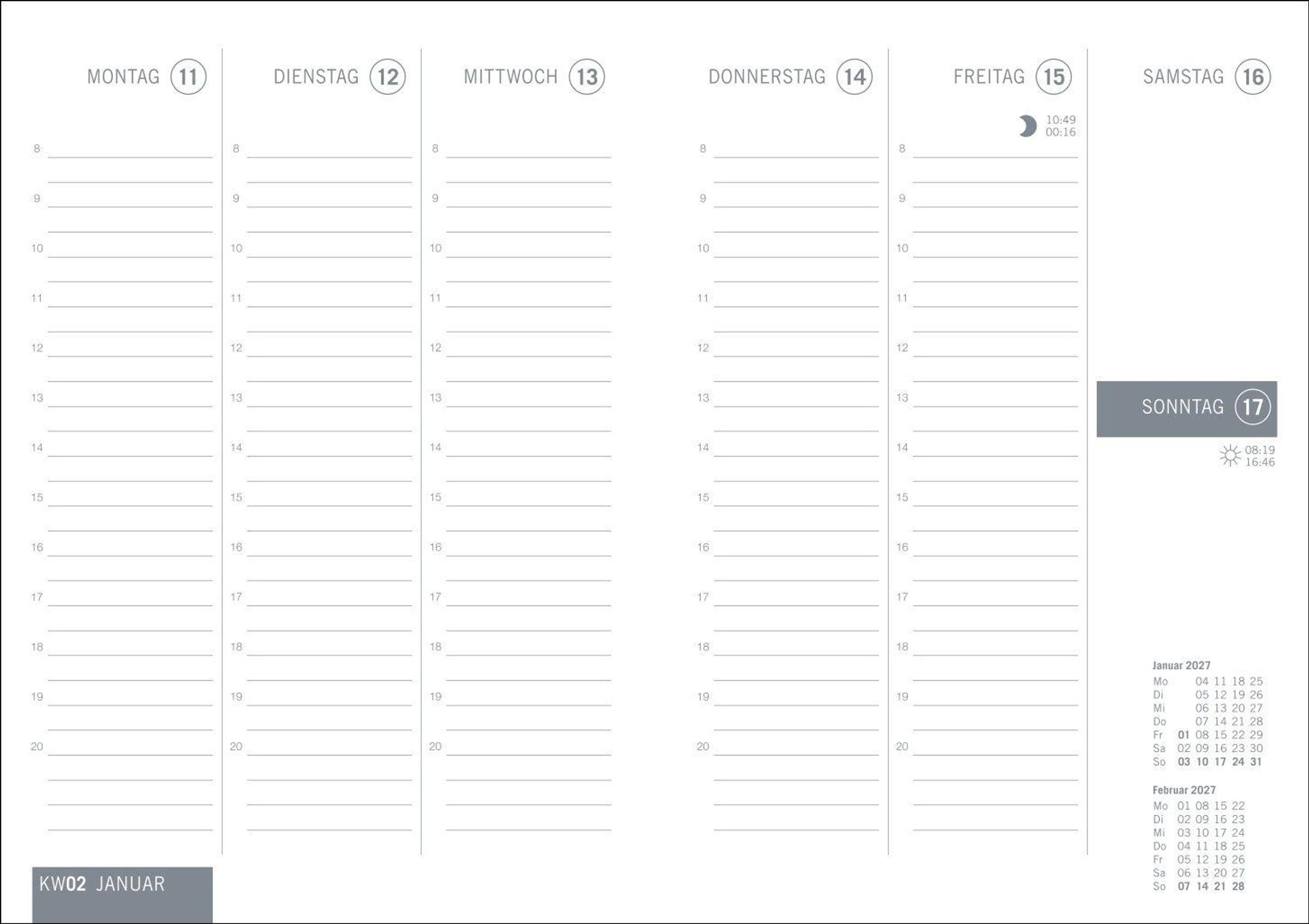 Der Artikel times&more Kalenderbuch schwarz 2027 wurde in den Warenkorb gelegt.