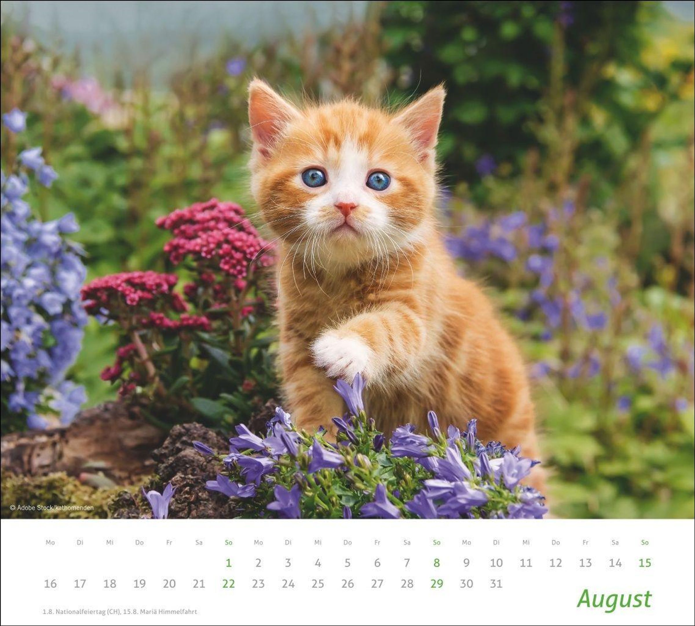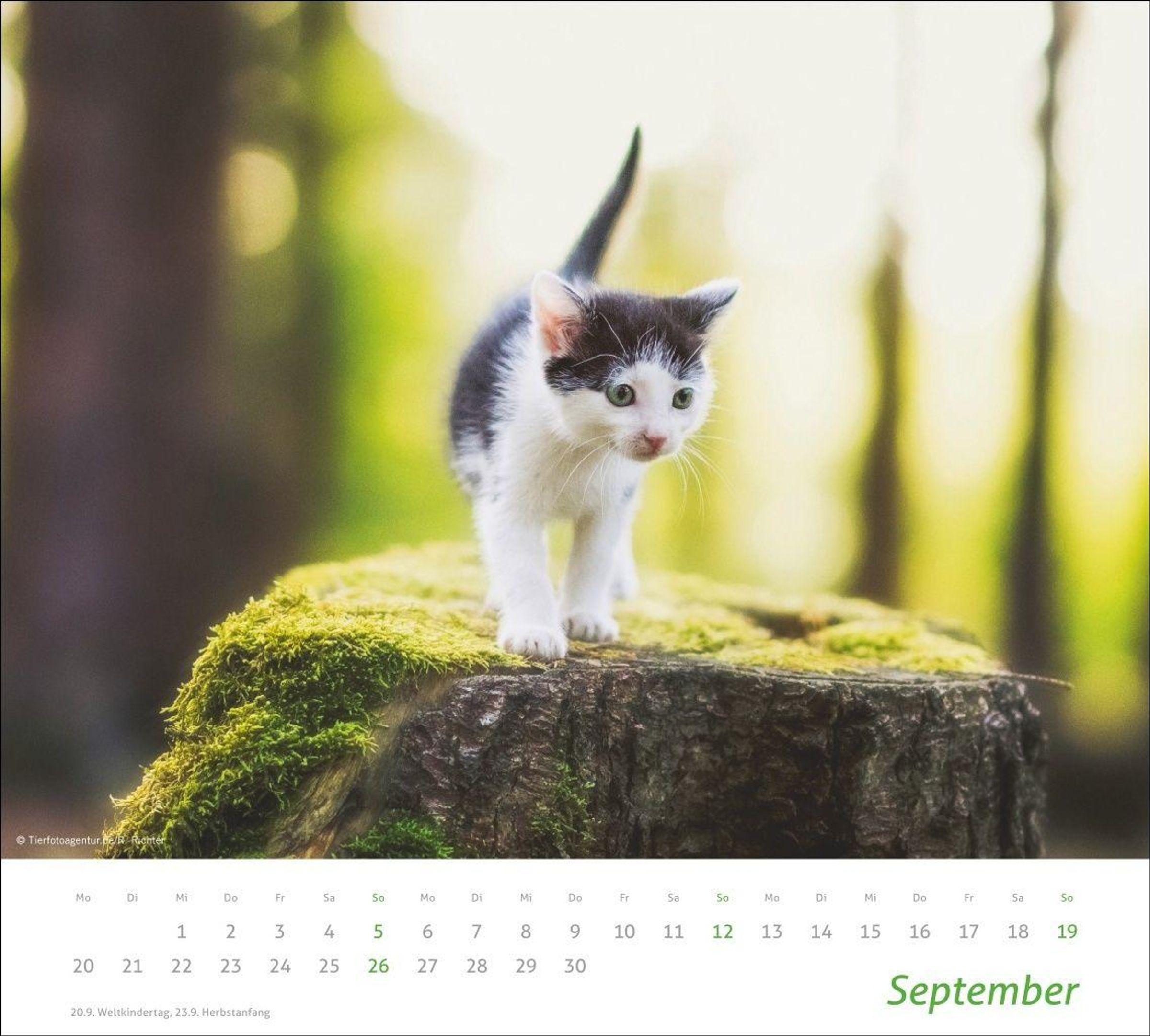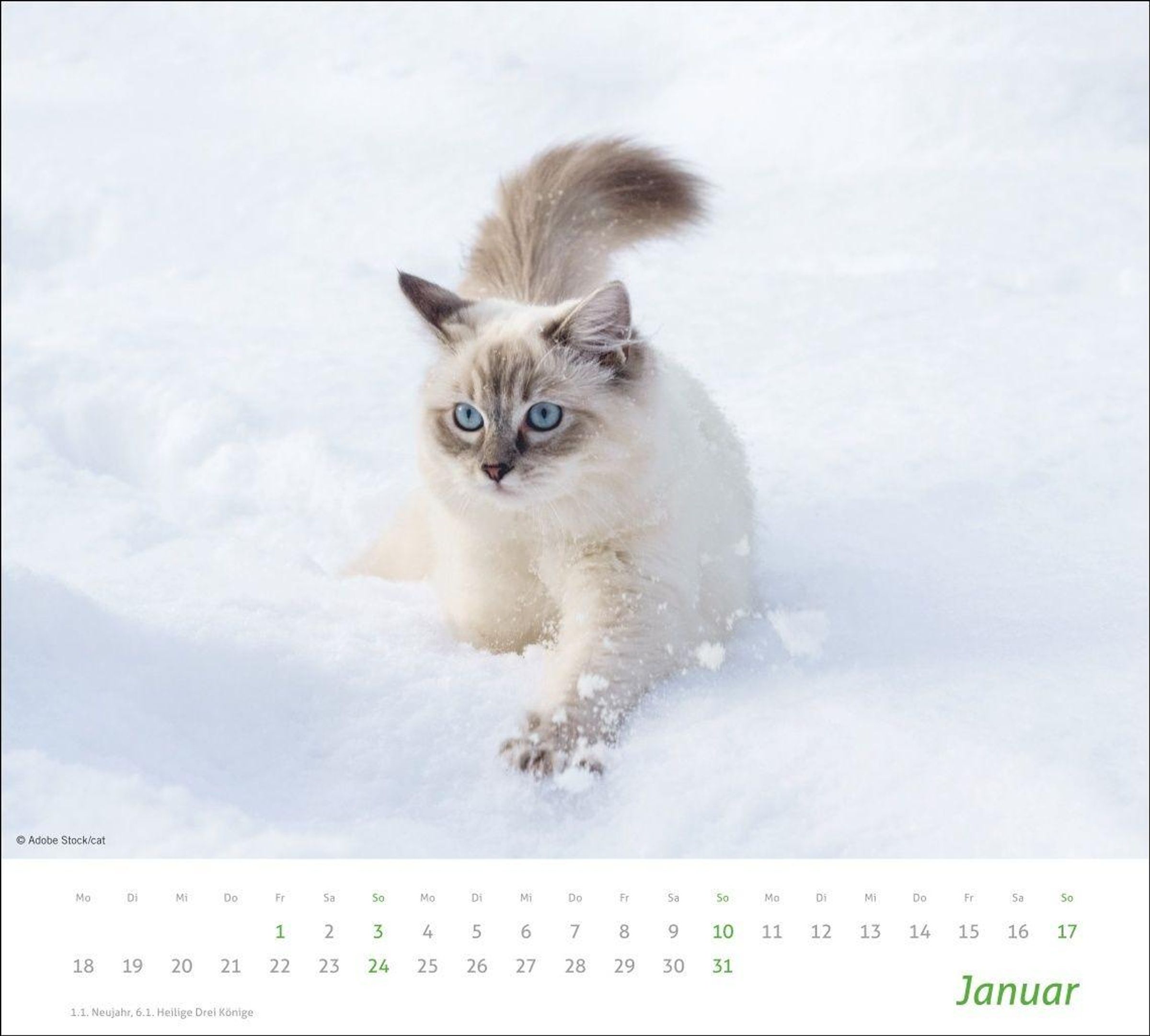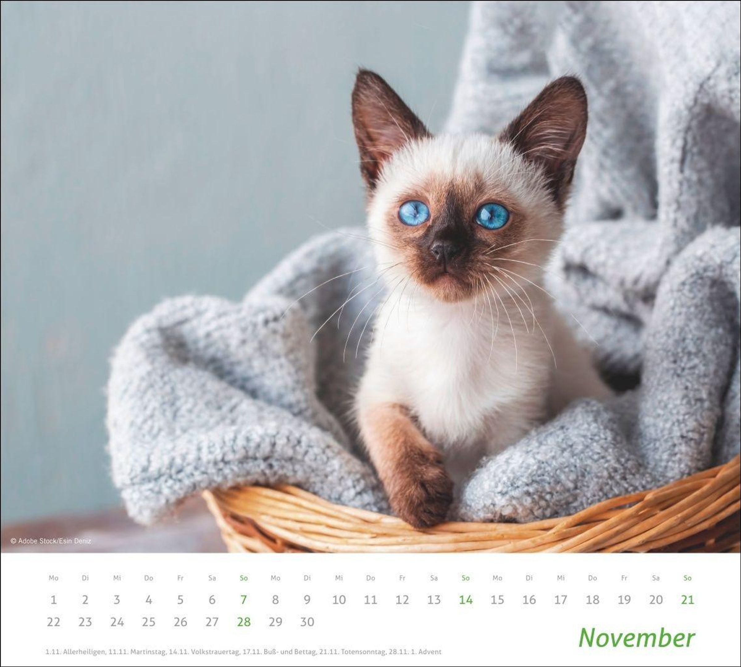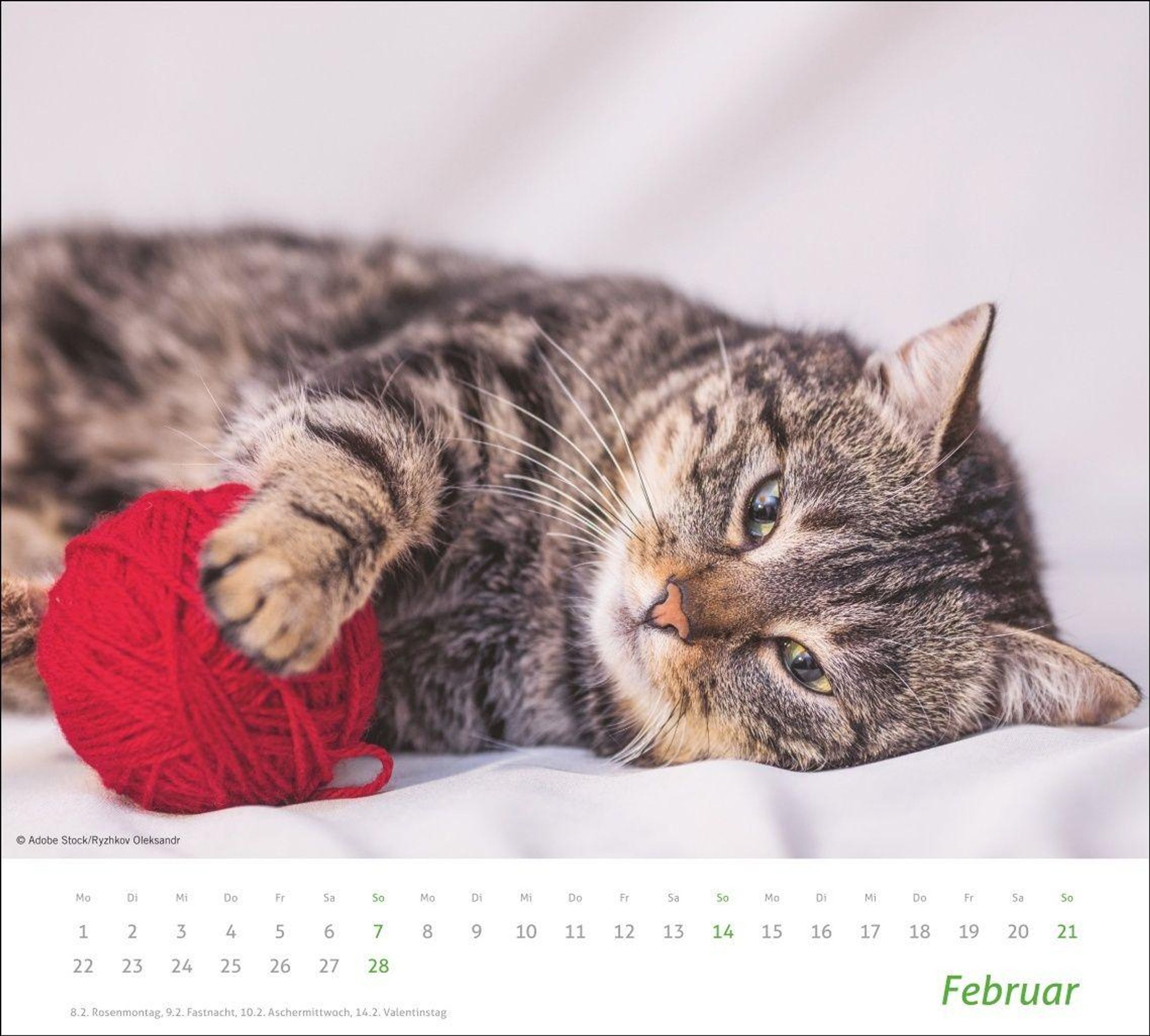 Sorgt für wohliges Schnurren: Monatskalender mit 12 hochwertigen Aufnahmen von niedlichen Stubentigern - mit schlichtem Kalendarium