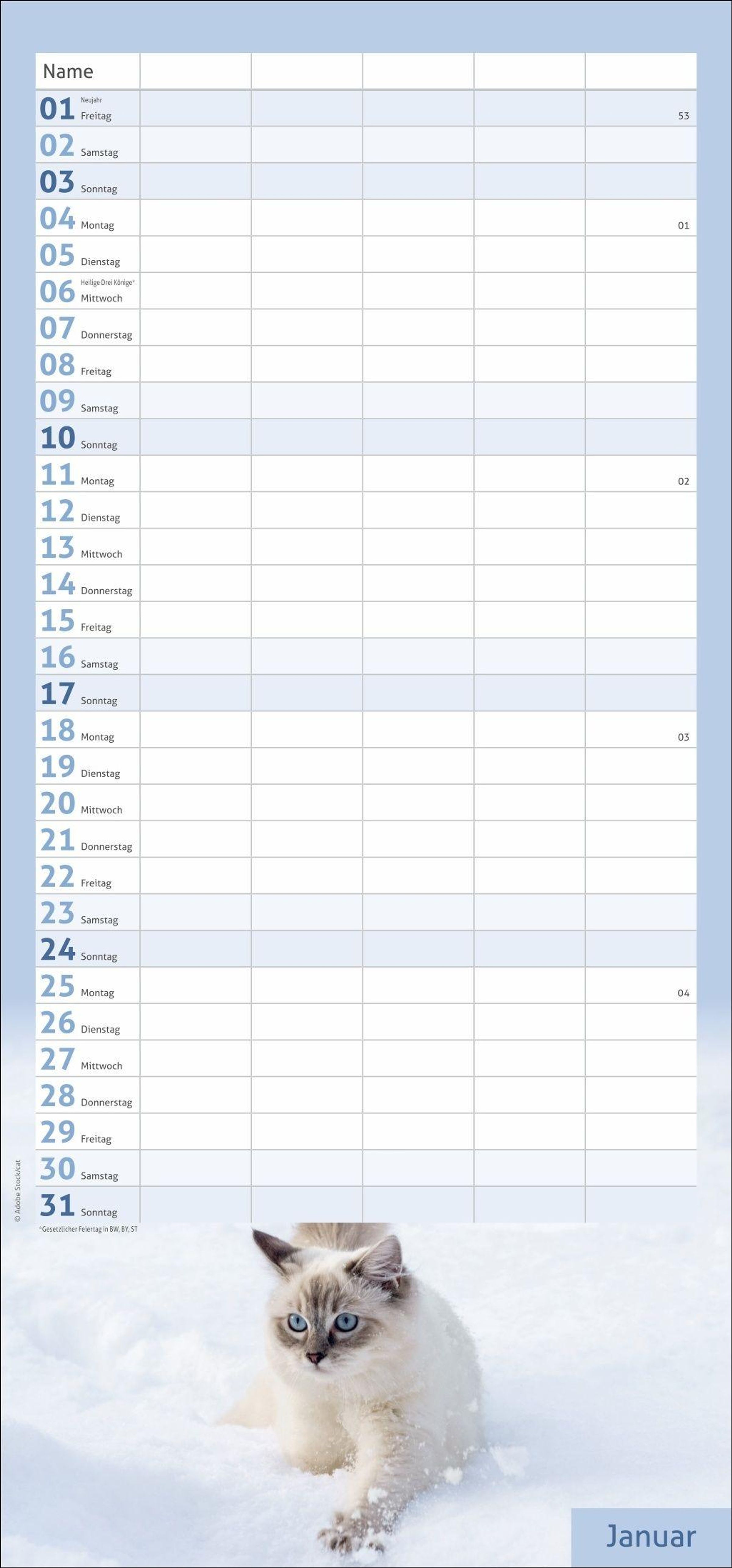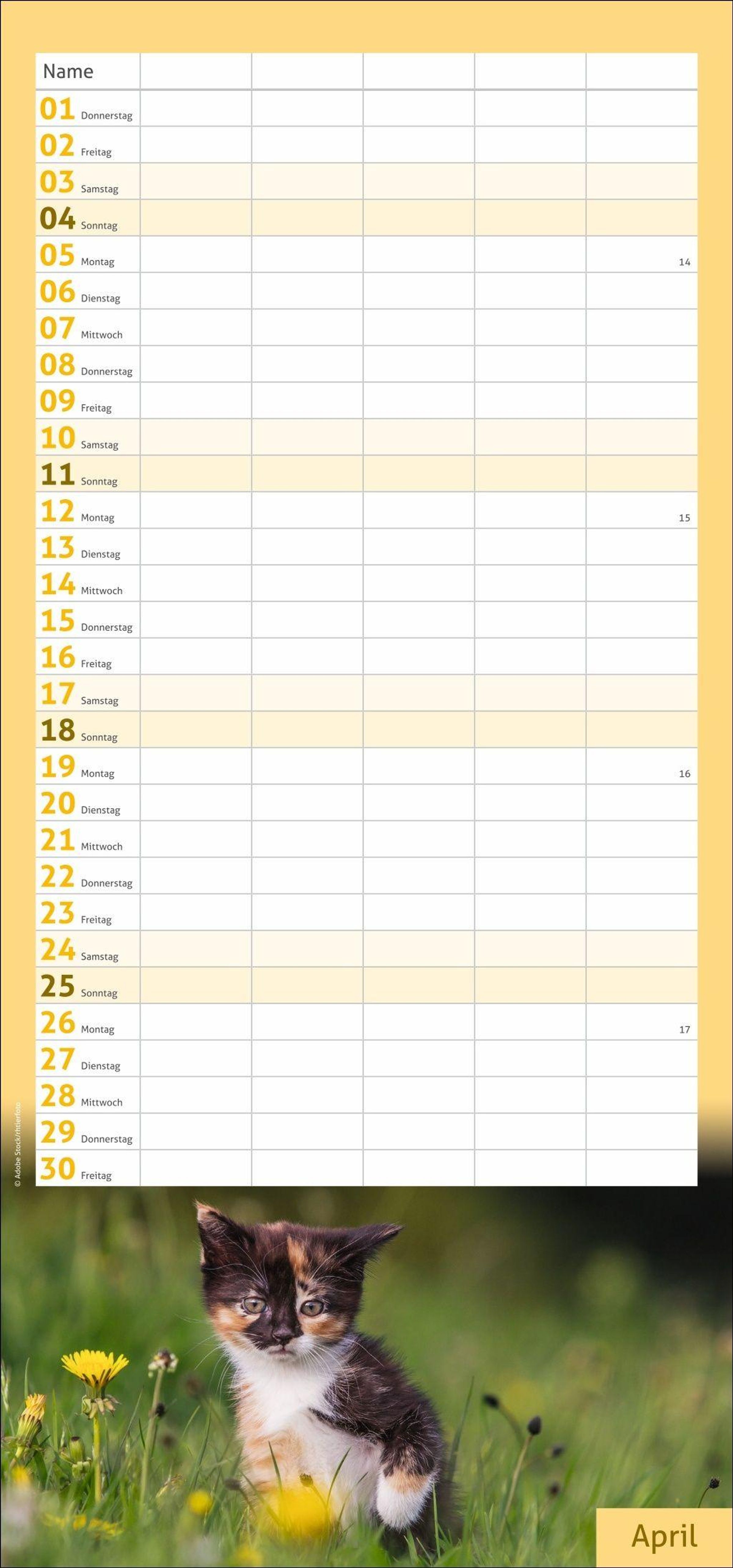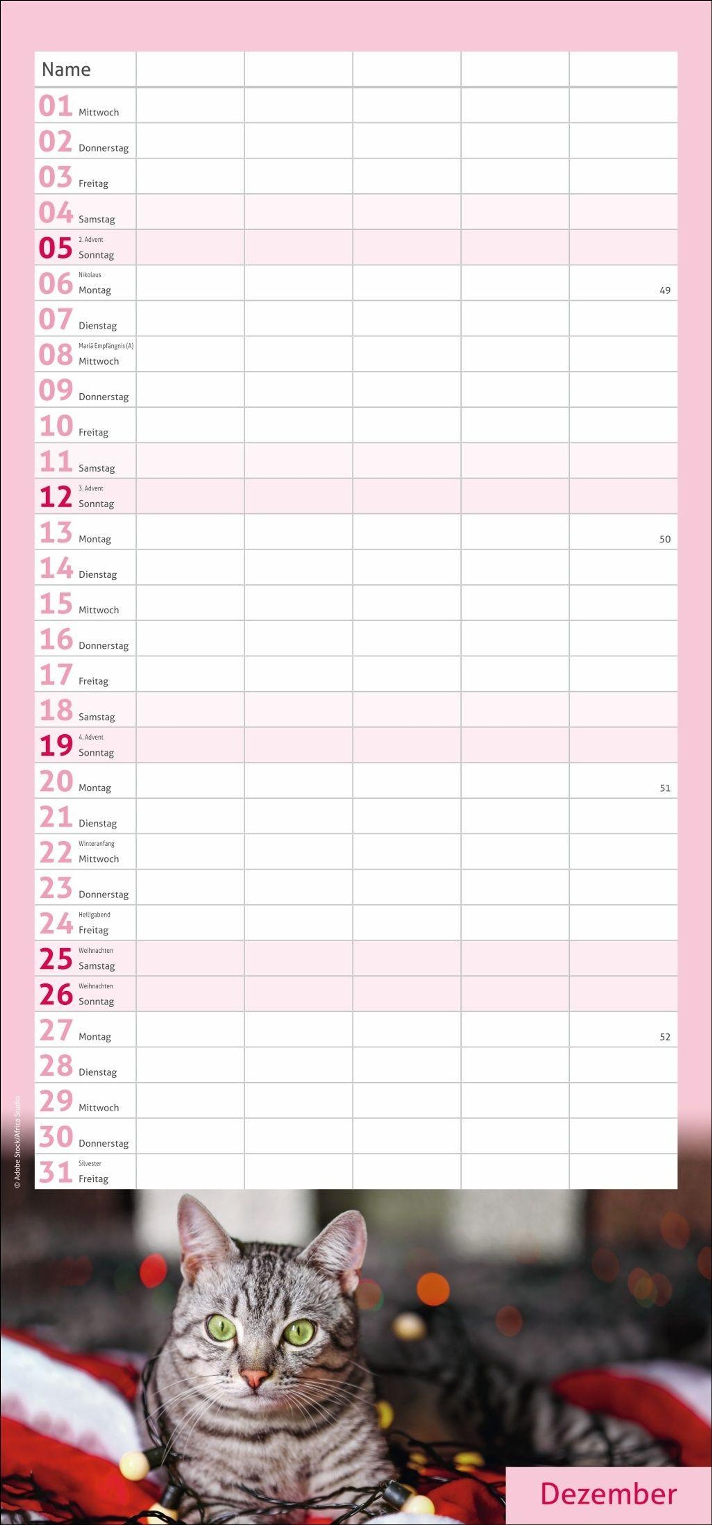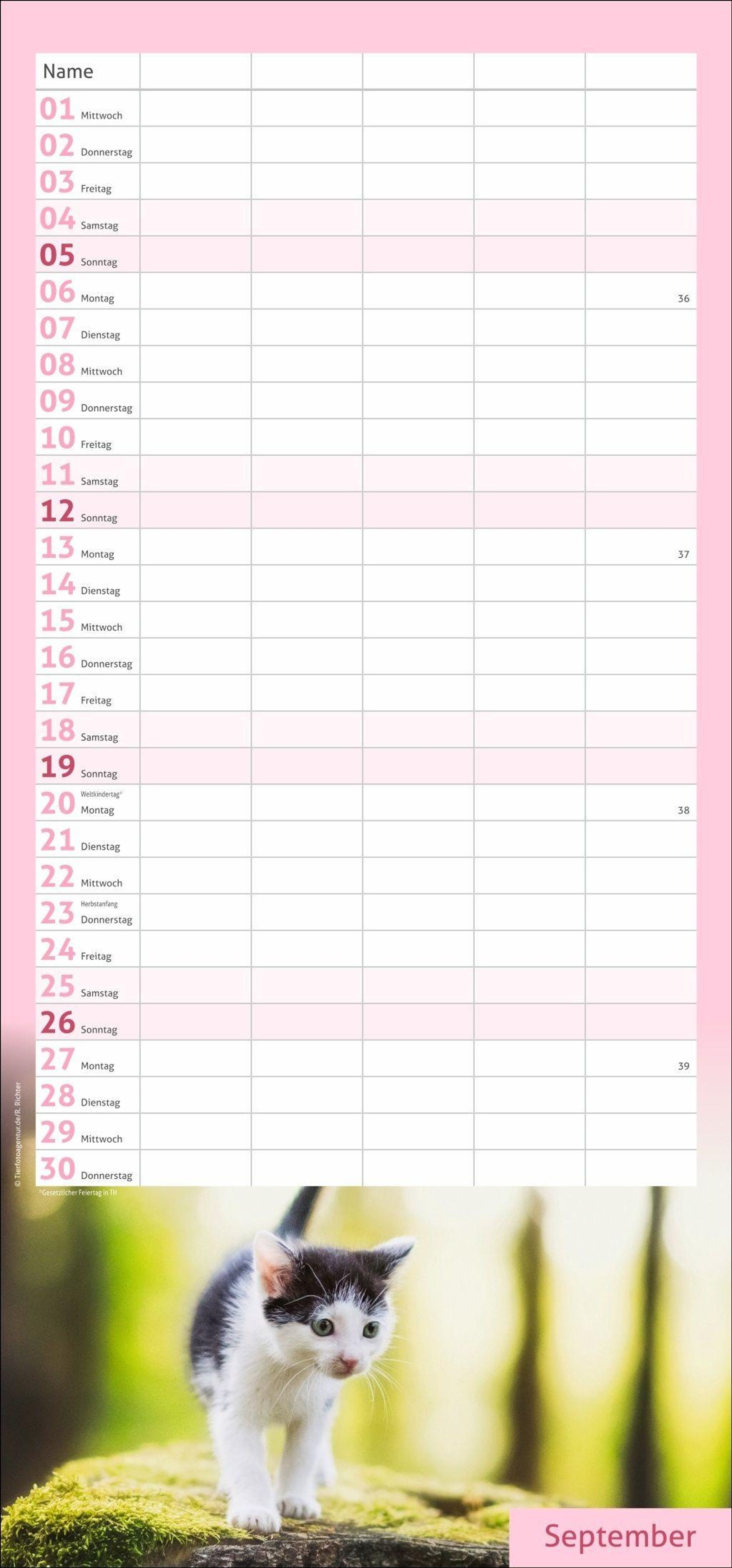 - Ein praktischer Kalender mit 5 Spalten für Pläne, Termine und Notizen der ganzen Familie. Niedliche Katzenfotos in einem nützlichen Familienkalender. times&more