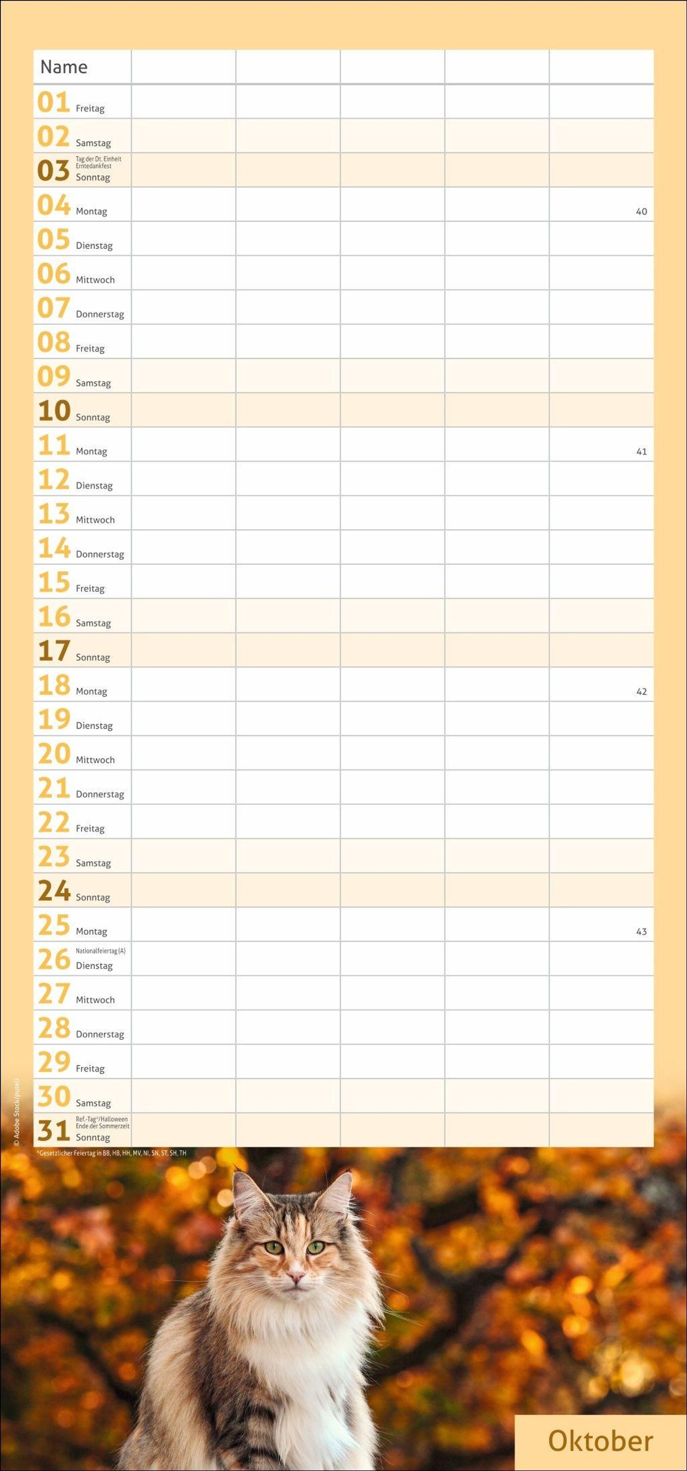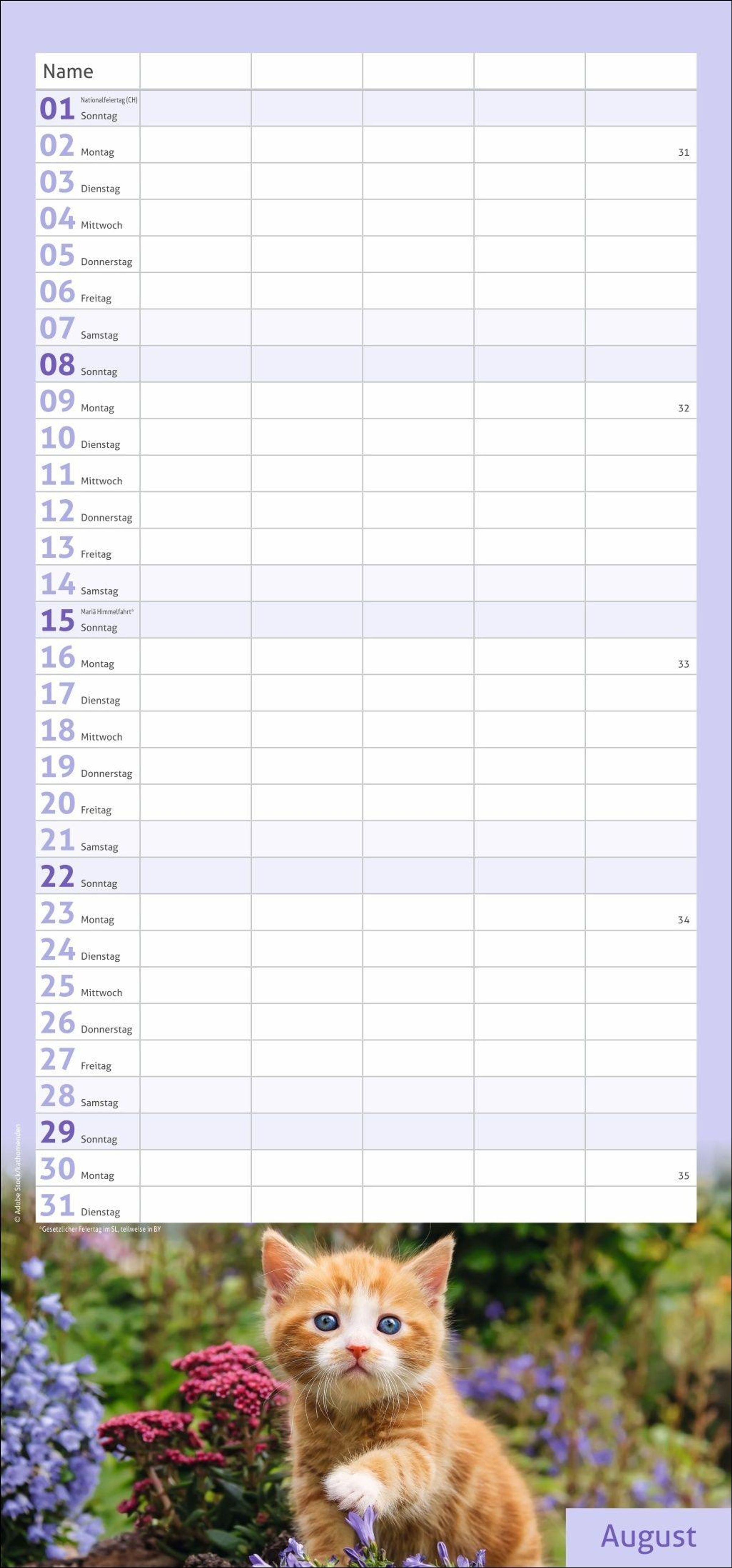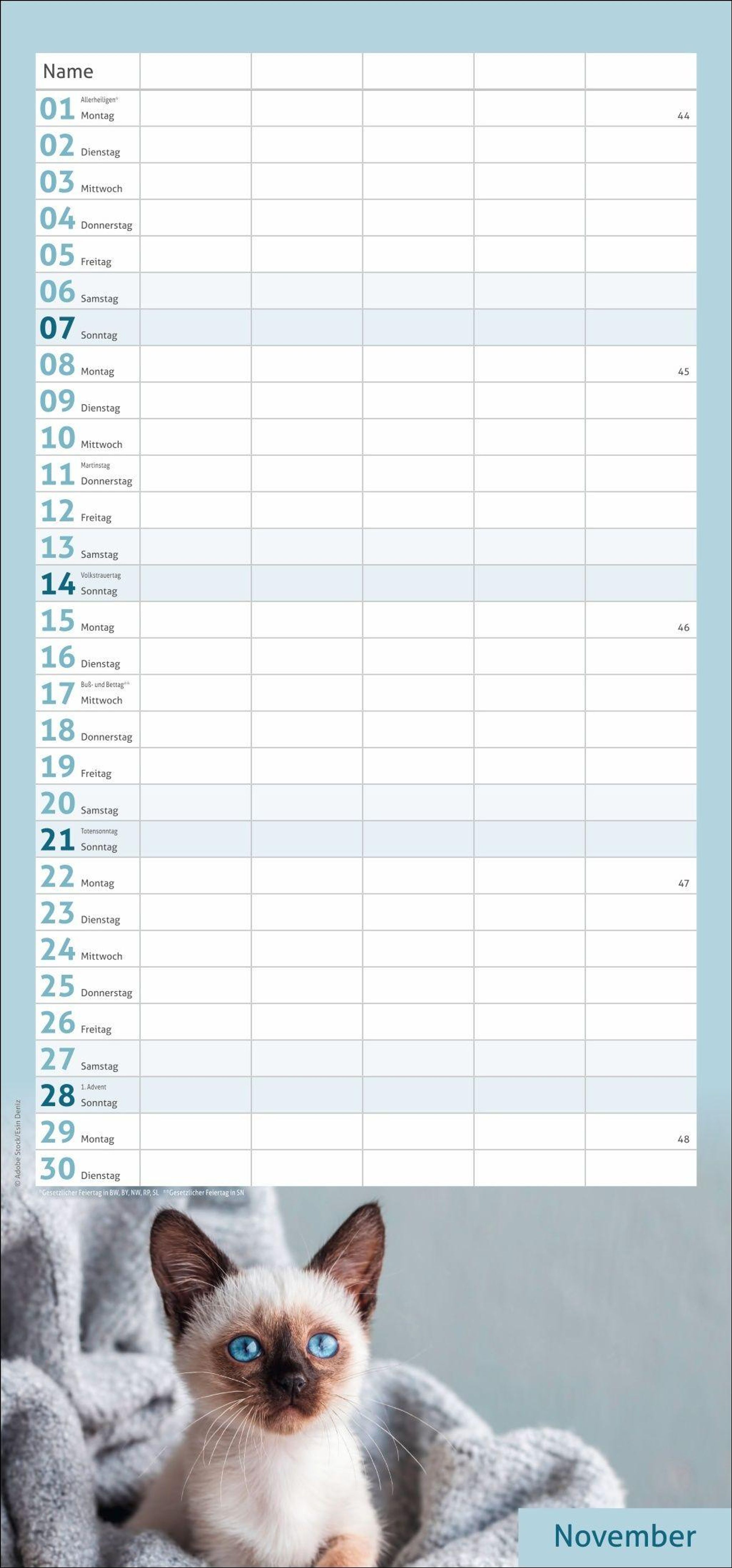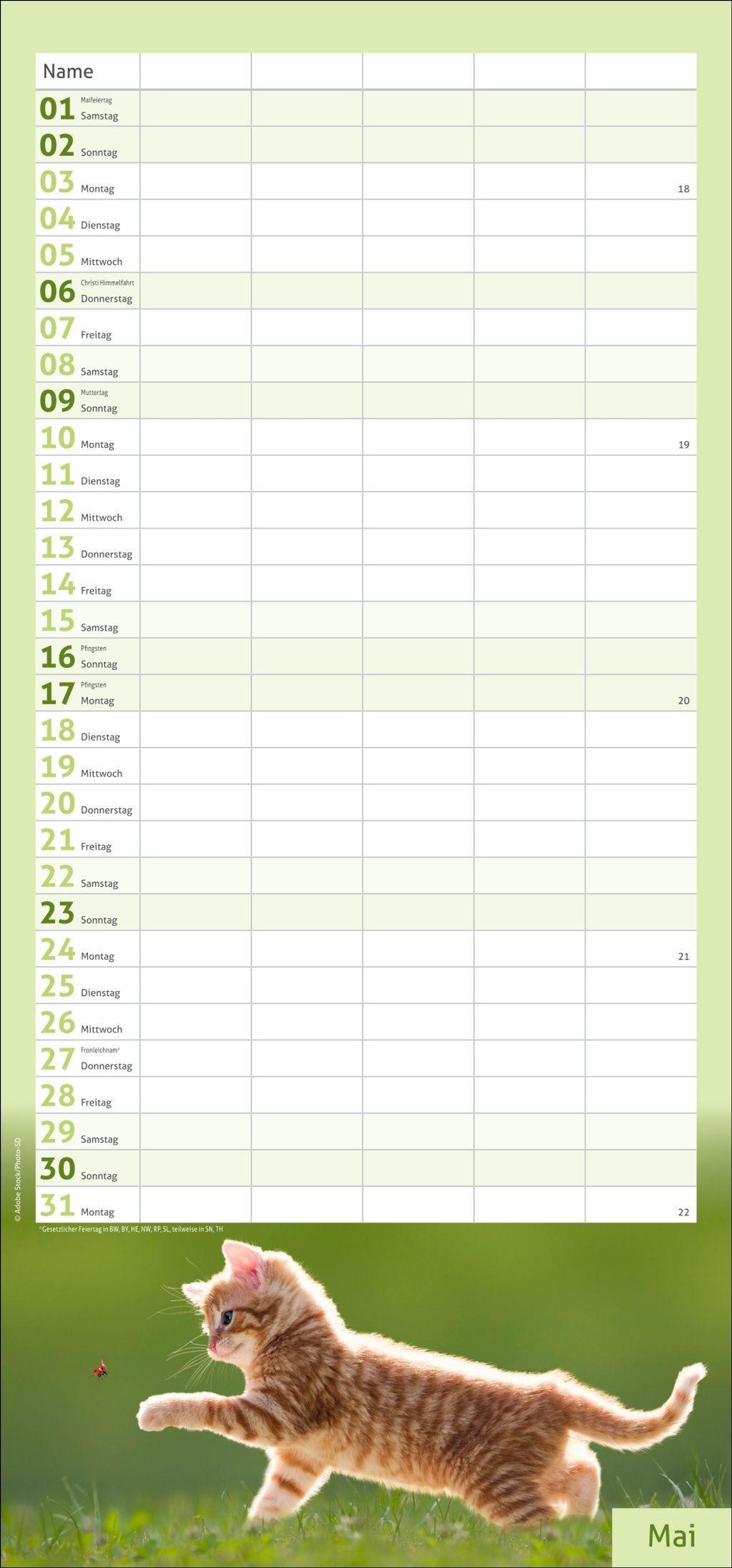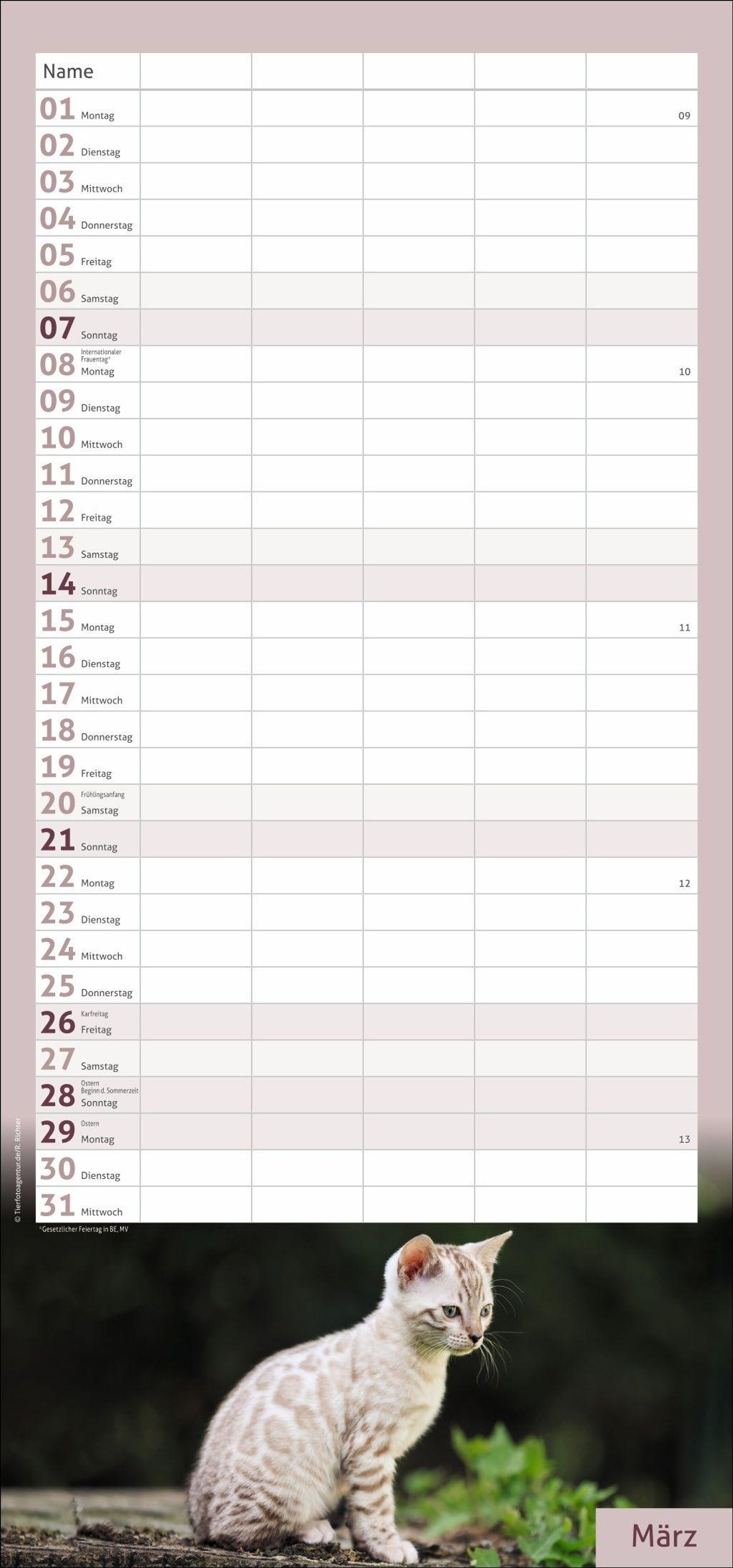 - Ein praktischer Kalender mit 5 Spalten für Pläne, Termine und Notizen der ganzen Familie. Niedliche Katzenfotos in einem nützlichen Familienkalender. times&more