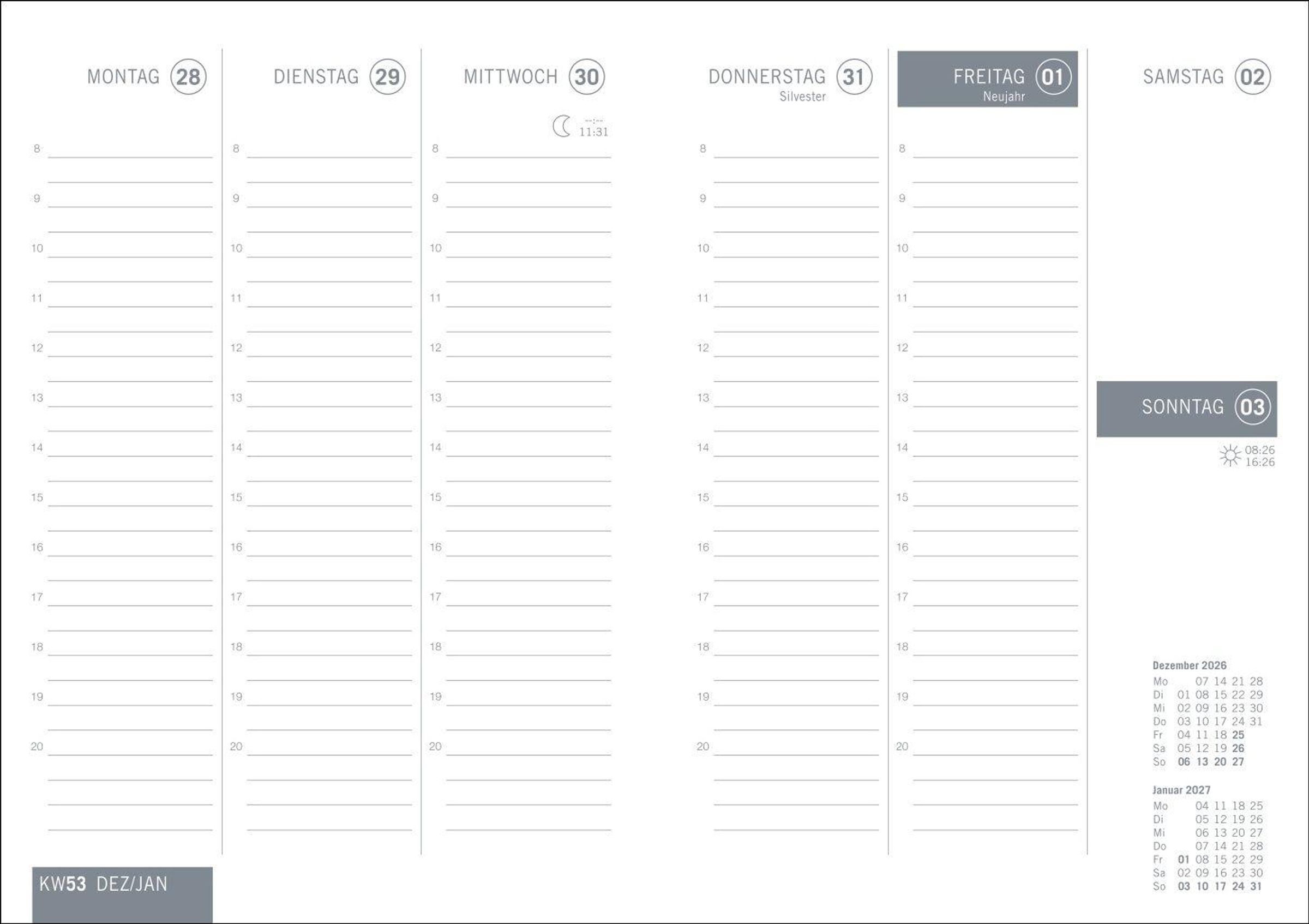 Neutraler Organizer, der's in sich hat: Terminplaner mit viel Platz für Notizen und Reiseplanung sowie mit Adressteil und To Do-Listen