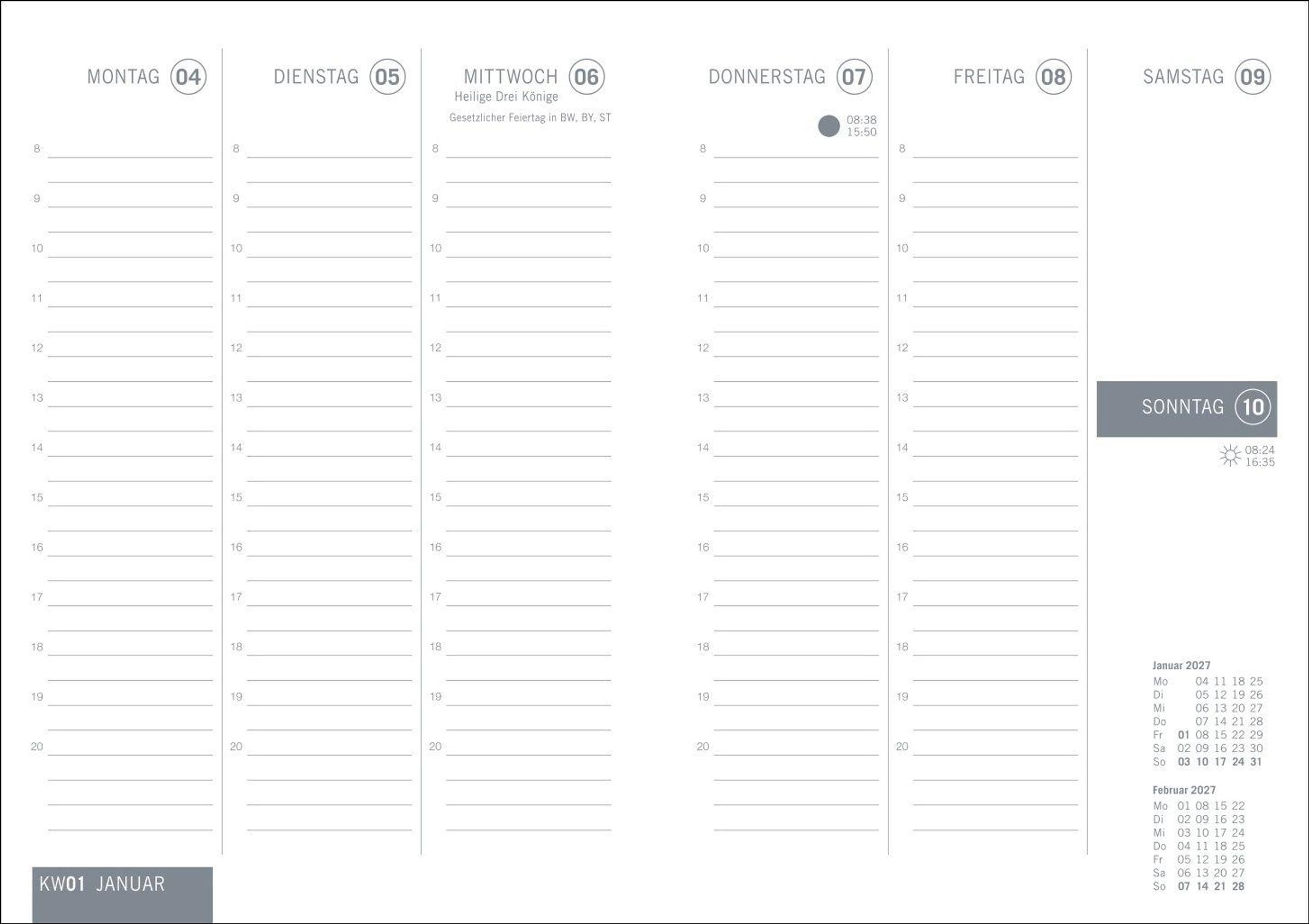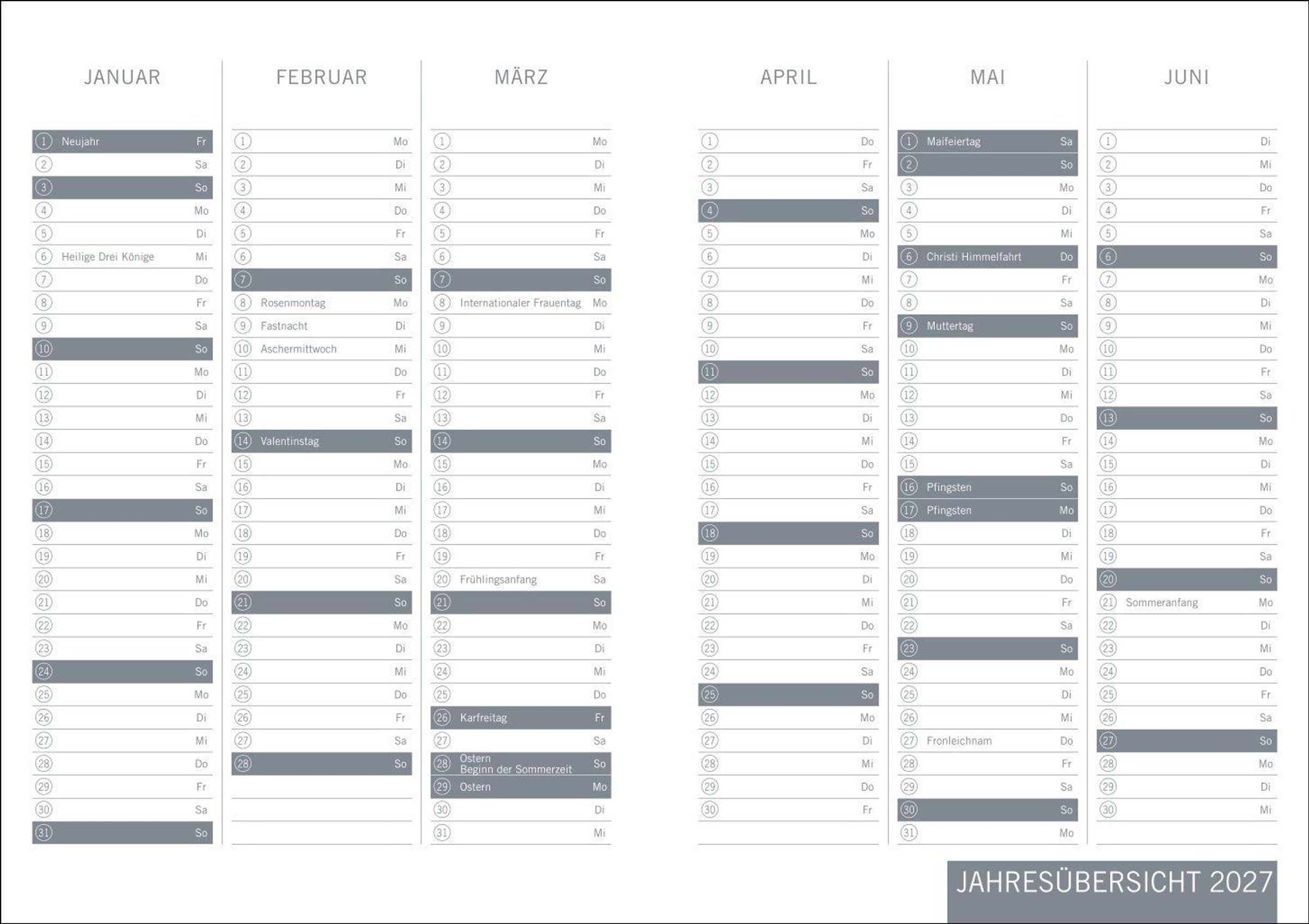 Edle Timer im frischen Design: Taschenplaner 2027 im Format 11 x 15 cm mit einer Doppelseite Platz pro Woche und Monatsübersichten