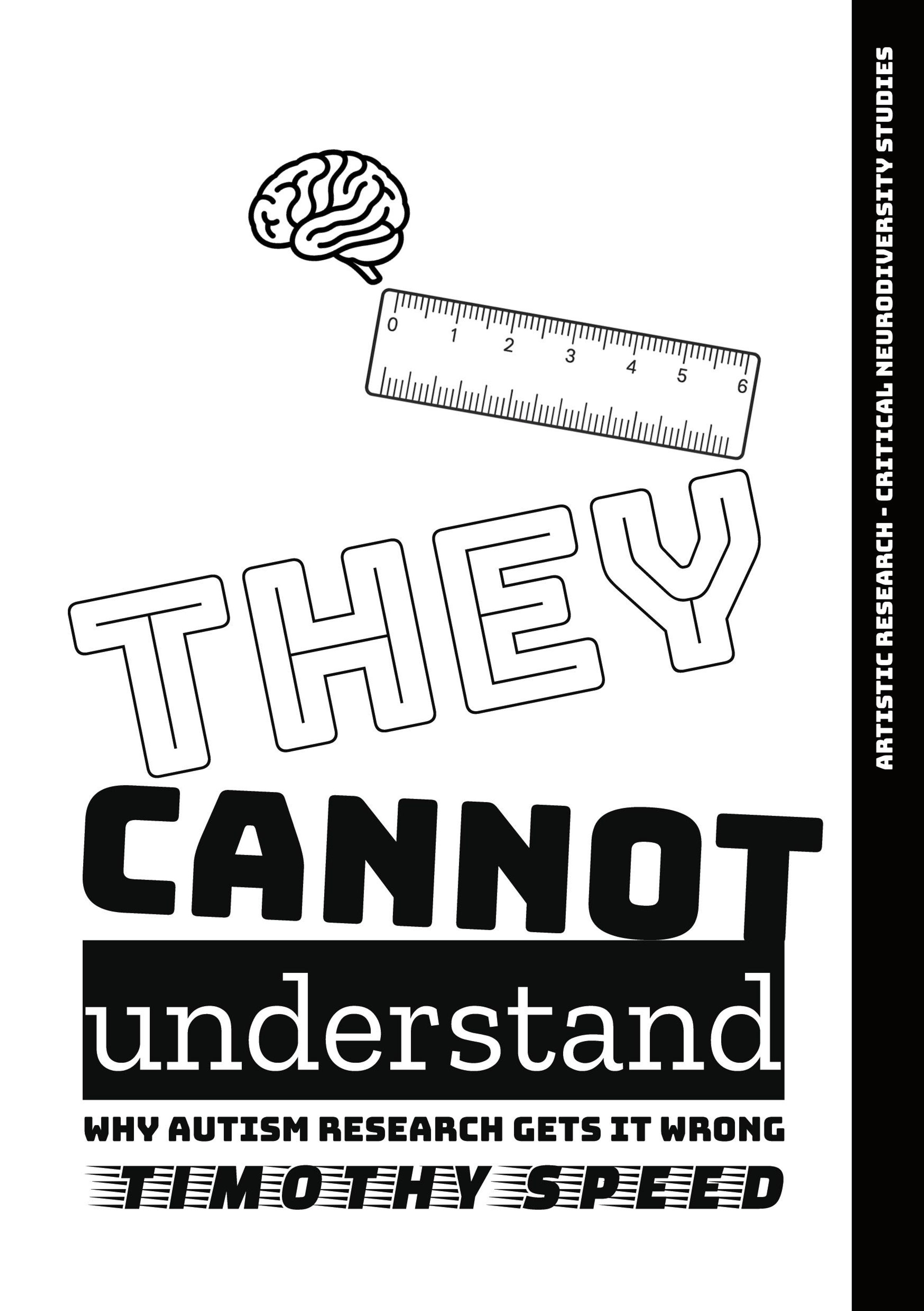 "They Cannot Understand" und "Why Autism Research Gets It Wrong" steht in großer Schrift. Illustration: Gehirn und Lineal., Buch