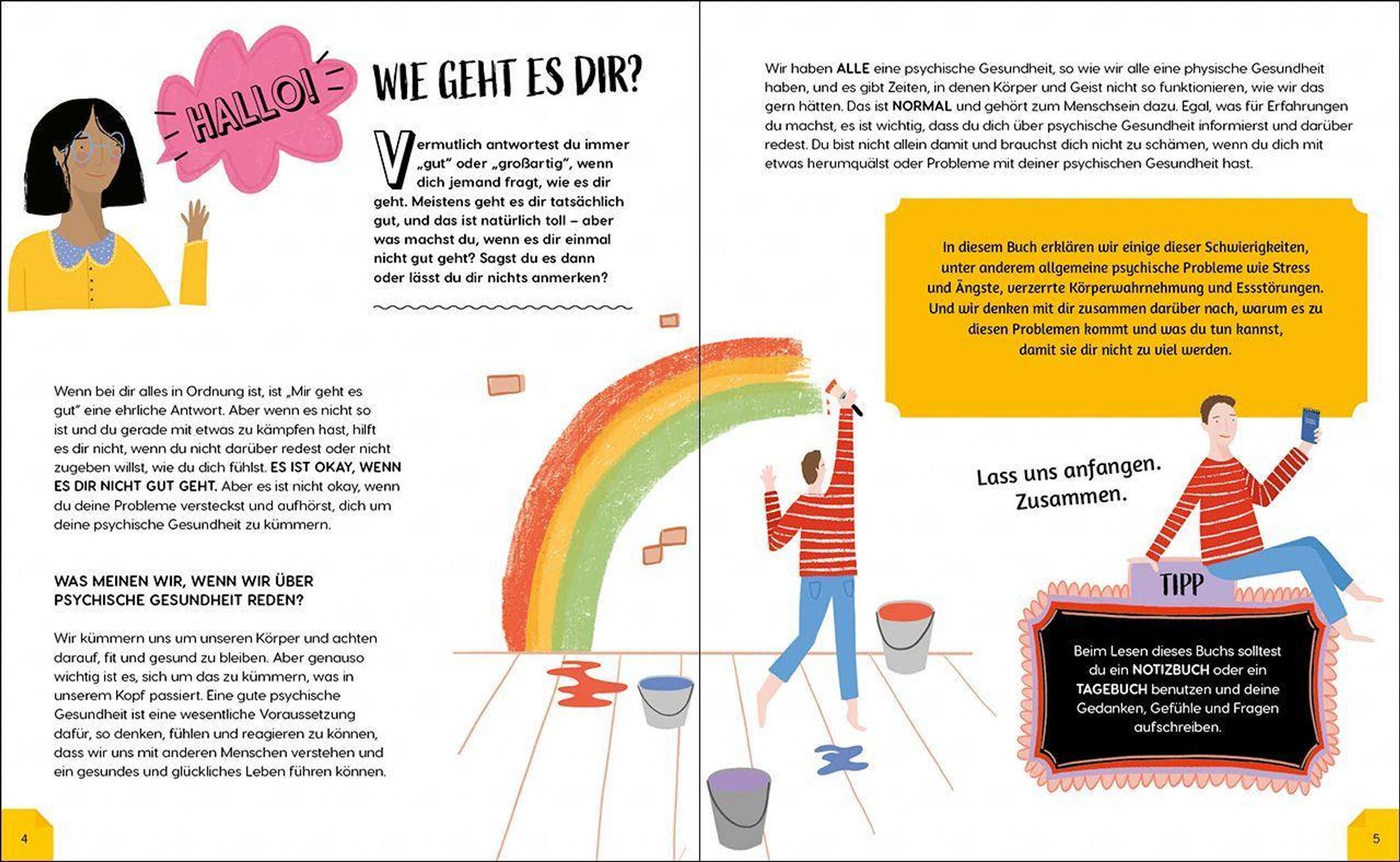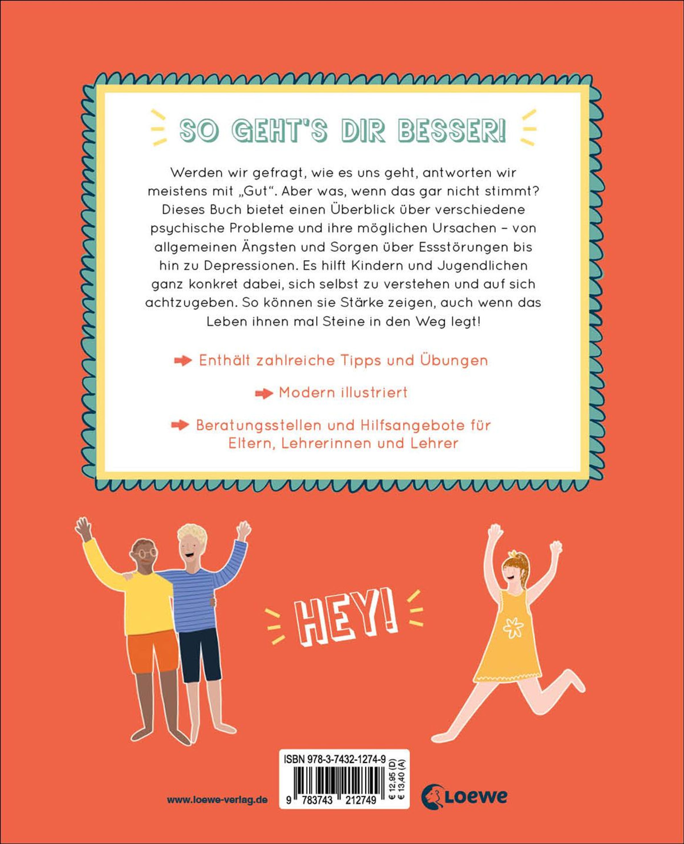 Werden wir gefragt, wie es uns geht, antworten wir meistens mit "Gut". Aber was, wenn das gar nicht stimmt und es uns in Wahrheit überhaupt nicht gut geht? Das passiert jedem mal! Immer mehr Kinder haben mit psychischen Problemen zu kämpfen - die Bandbreite reicht von allgemeinen Ängsten und Sorgen bis hin zu schweren Depressionen. Vor allem in Pandemiezeiten, die von Homeschooling und Social Distancing geprägt sind, wird das jeden Tag deutlicher. Dieses Sachbuch will Kinder dabei unterstützen, sich mit ihrer mentalen Gesundheit zu beschäftigen. Es bietet einen Überblick über verschiedene Probleme und ihre möglichen Ursachen und erklärt sie altersgerecht. Zahlreiche praktische Tipps sowie eine Übersicht über Hilfsangebote und Hinweise für Eltern und Lehrer helfen Kindern und ihren erwachsenen Bezugspersonen dabei, einen Ausweg aus schwierigen Situationen zu finden.