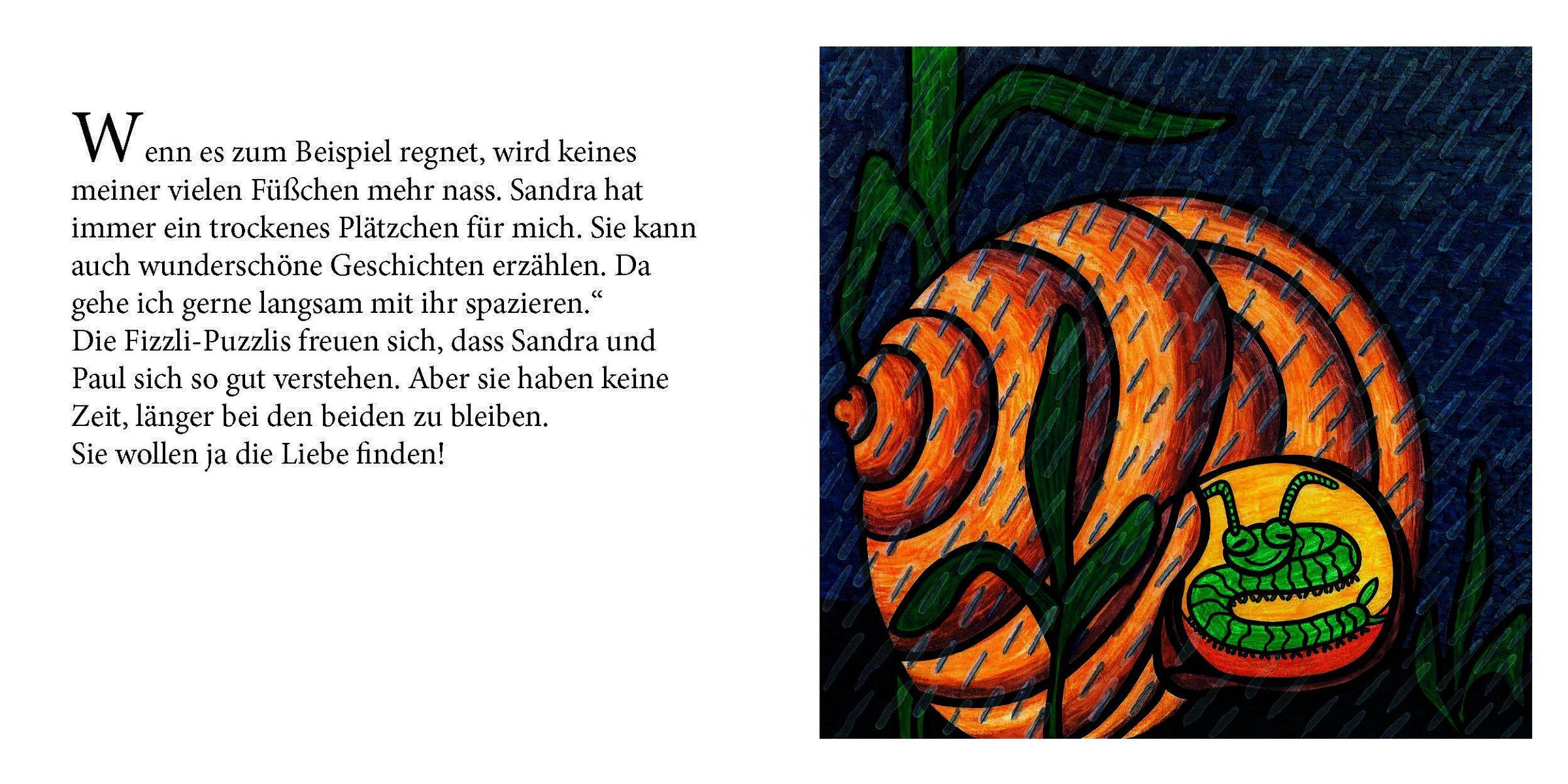 Die Liebe. Was ist das eigentlich genau? Kann man sie sehen, anfassen, riechen oder womöglich sogar schmecken? Wo die Liebe wohl wohnt? Genau das möchten in diesem Buch zwei Fizzli-Puzzlis wissen und machen sich gemeinsam auf den Weg, um im Reich der Tiere Antworten zu finden. Auf ihrer Reise begegnen sie vielen Tieren, die ihnen aber zunächst auch nicht weiterhelfen können. Als sie es schon fast aufgeben und wieder nach Hause gehen wollen, treffen sie auf die alte Schildkröte, die Rat weiß.