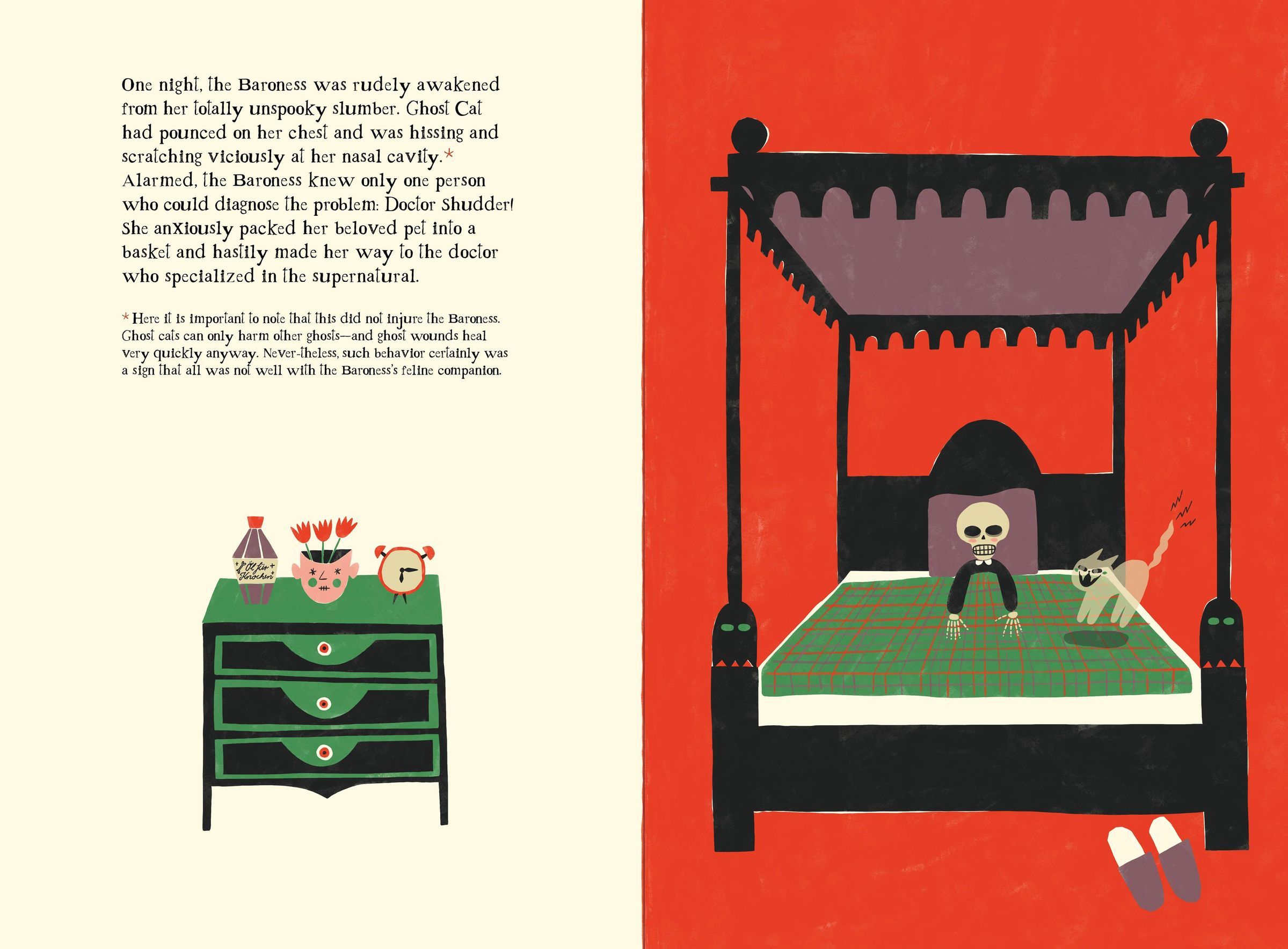 Es gab eine Zeit, da jagte der Name Baronesse Gruselia allen einen Schauer über den Rücken. Sie war die Meisterin des Wahnsinns und die Königin des Gruselns. Doch diese Zeiten sind längst vorbei. Heute ist die Baronesse, nun ja, überhaupt nicht mehr furchterregend. Alles scheint in Ordnung, bis sie eines Nachts aus unruhigen, völlig ungruseligen Träumen erwacht und feststellt, dass ihre geliebte Geisterkatze schwer krank ist. Die Diagnose: ein seelisches Leiden. Gespensterkatzen brauchen Grusel, um gesund zu bleiben. Gruselia weiß, was zu tun ist - sie muss ihren schaurigen Ruf zurückerobern.