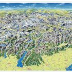 Auf der Rückseite befindet sich eine gezeichnete Panoramakarte die einen wunderschönen Überblick über die Region bietet.