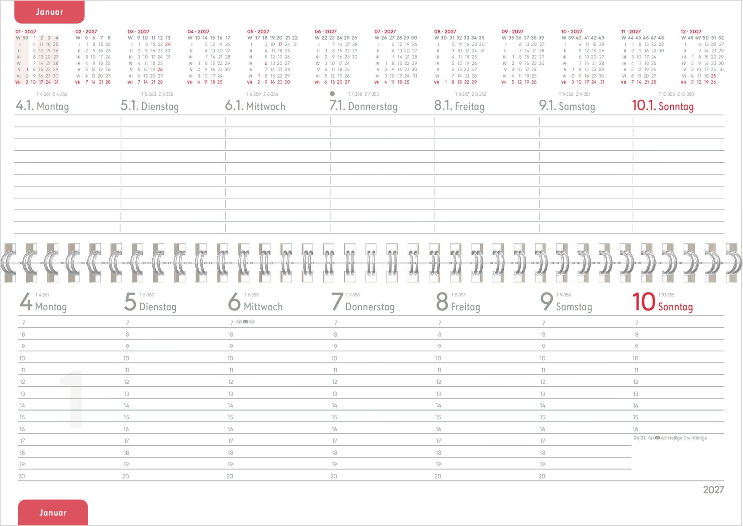 Der Zettler Tisch-Querkalender Profi blau 2027 überzeugt durch sein handliches Querformat, viel Platz für Notizen und ein übersichtliches Wochensystem -- ideal für die tägliche Organisation.