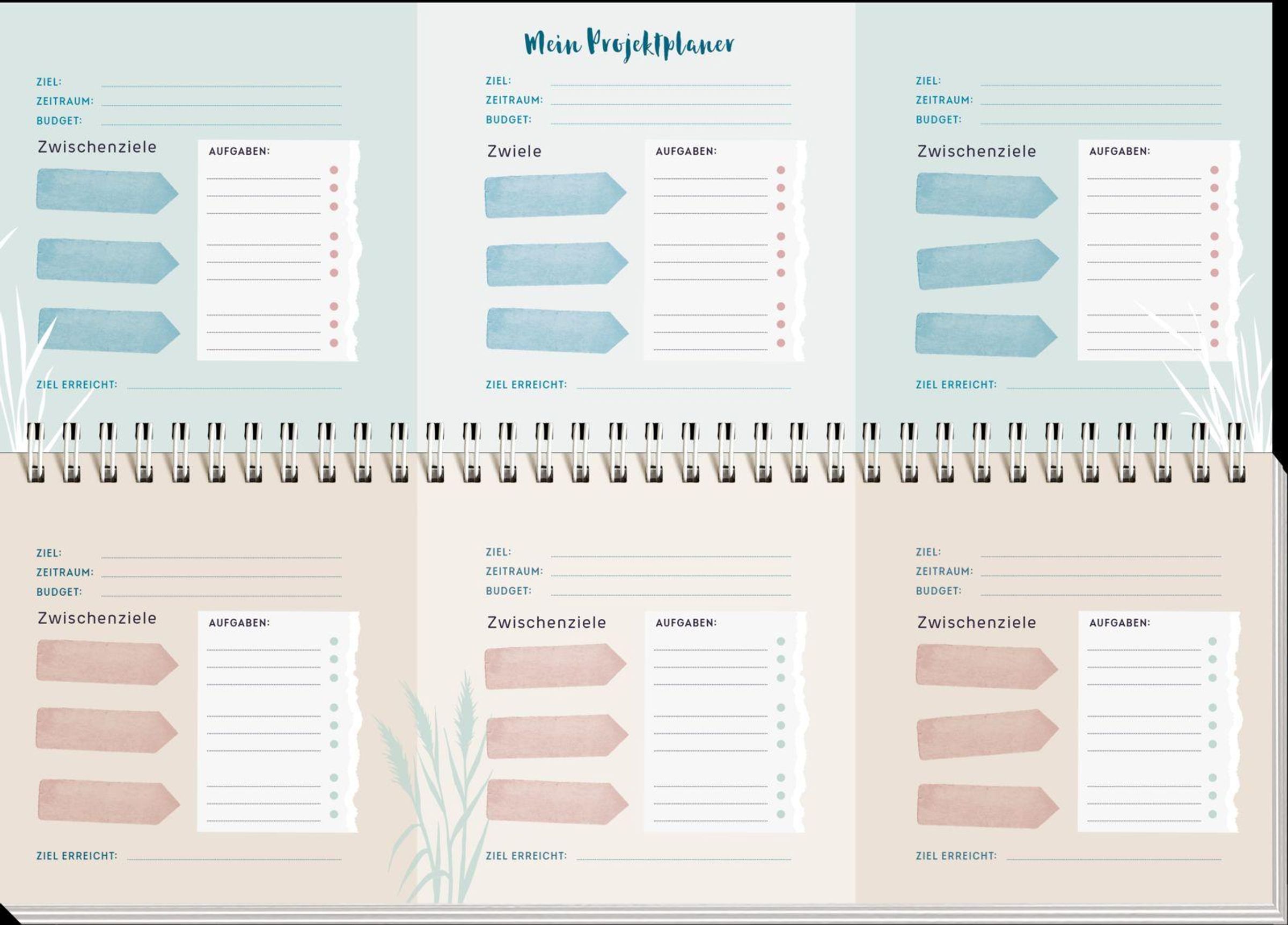 Neben Sprüchen und Zitaten für ein bisschen Entspannung im Alltag, bietet der Planer viele praktische Elemente: Jahres- und Monatsübersichten, 2-seitige Wochenübersichten mit viel Platz für Notizen und Termine, nützliche Tools wie To-do-Listen, Habit-Tracker oder Geburtstagserinnerung. Dank Extra-Seiten für Projekte- und Urlaubsplanung fürs Jahr 2027 kannst du Ziele Schritt für Schritt erreichen und dabei eine gesunde Work-Life-Balance bewahren.