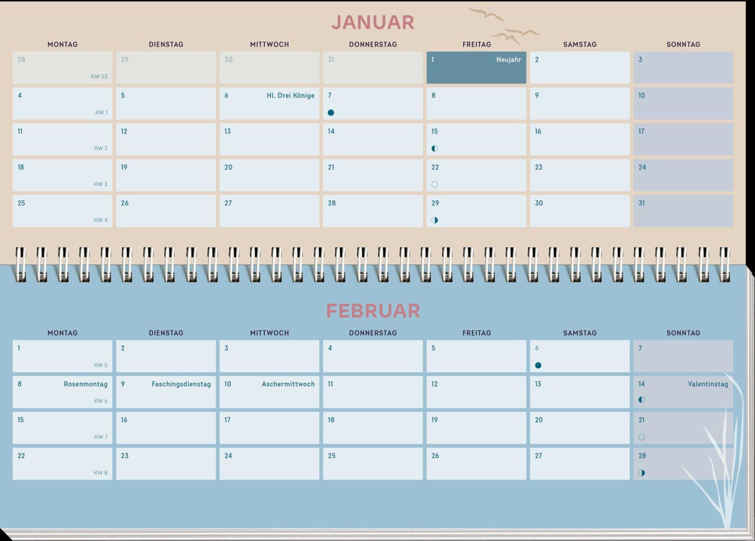 - Terminkalender/-planer 2027 Meer mit 64 Seiten (Maße: 29, 7 x 11, 5 cm) und Spiralbindung für einfaches Umblättern und flaches Auflegen auf dem Schreibtisch