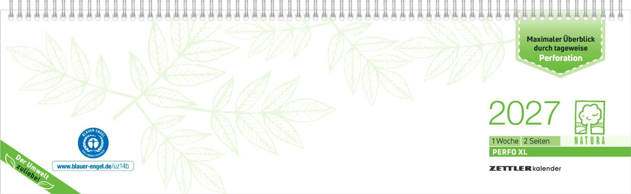 Tischquerkalender 1W/2S PERFO XL Blauer Engel 2027 (Kalender)